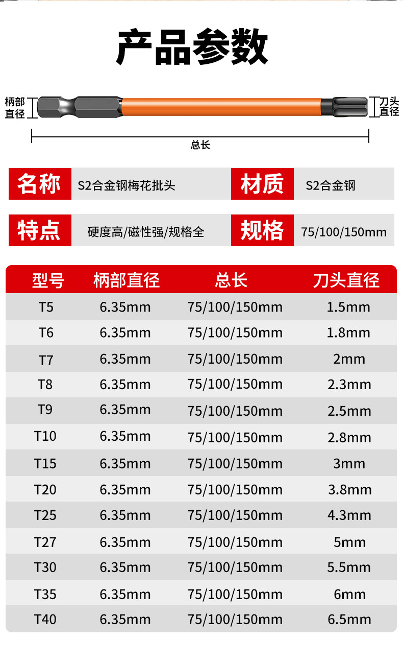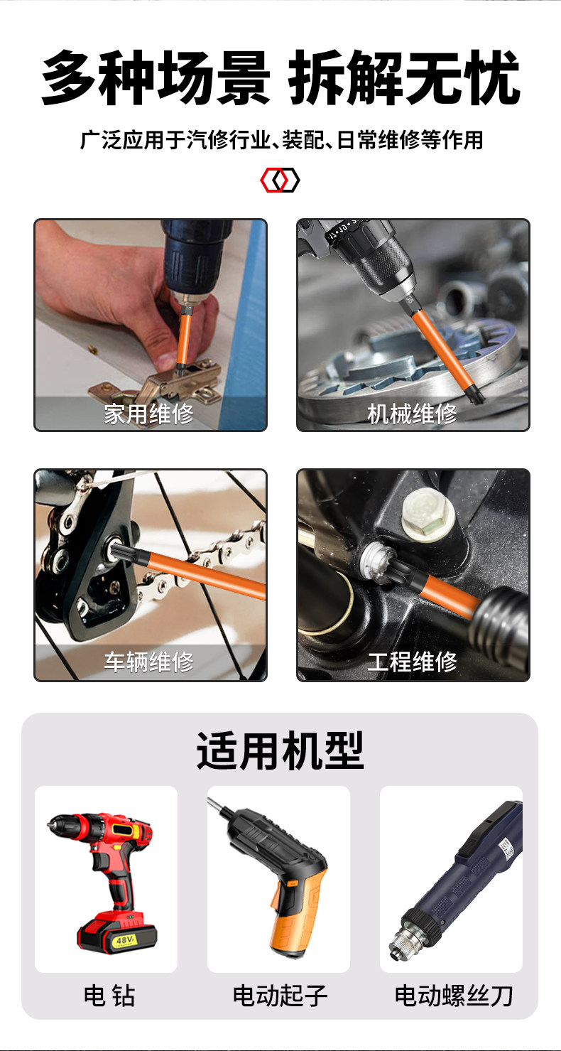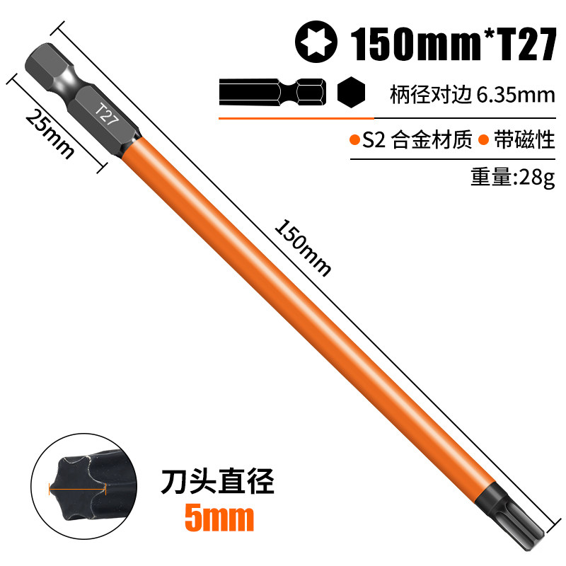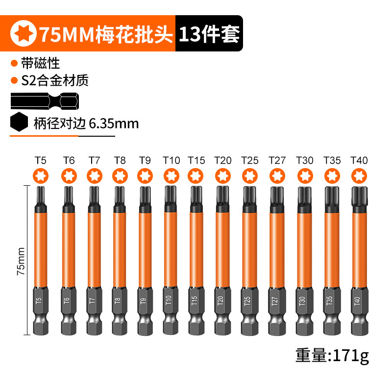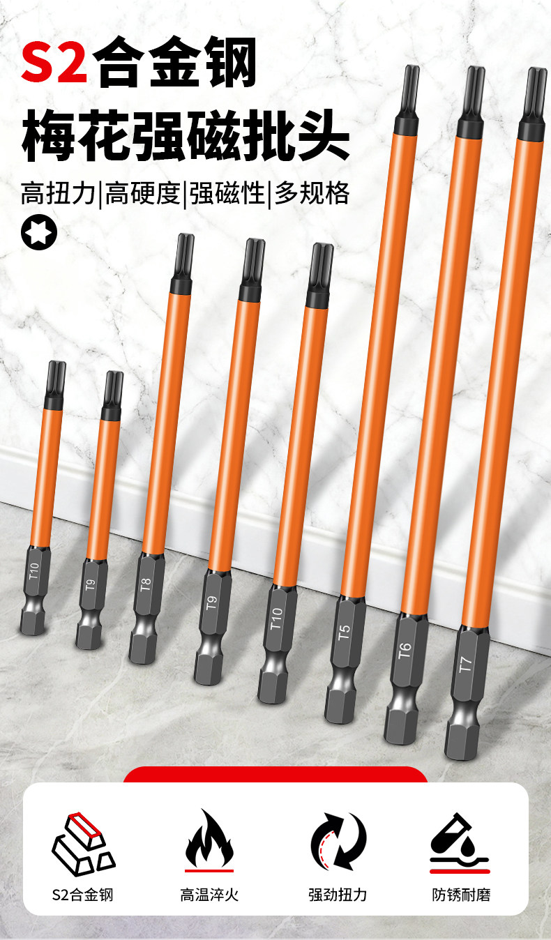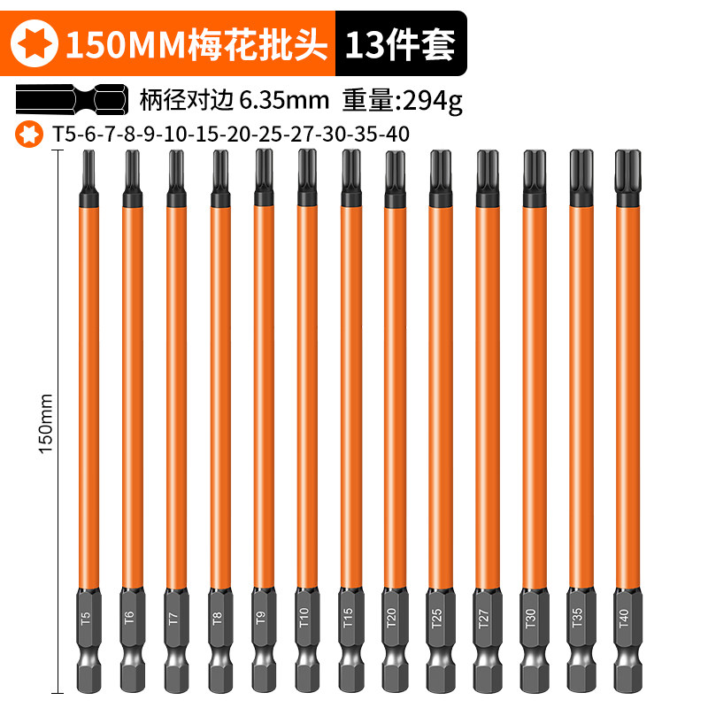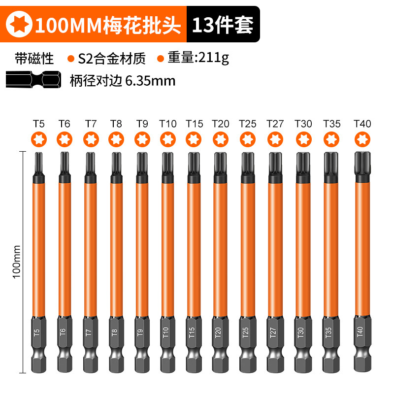 梅花批头电动套装六角手电钻强磁螺丝刀超硬工业加长风披高硬度