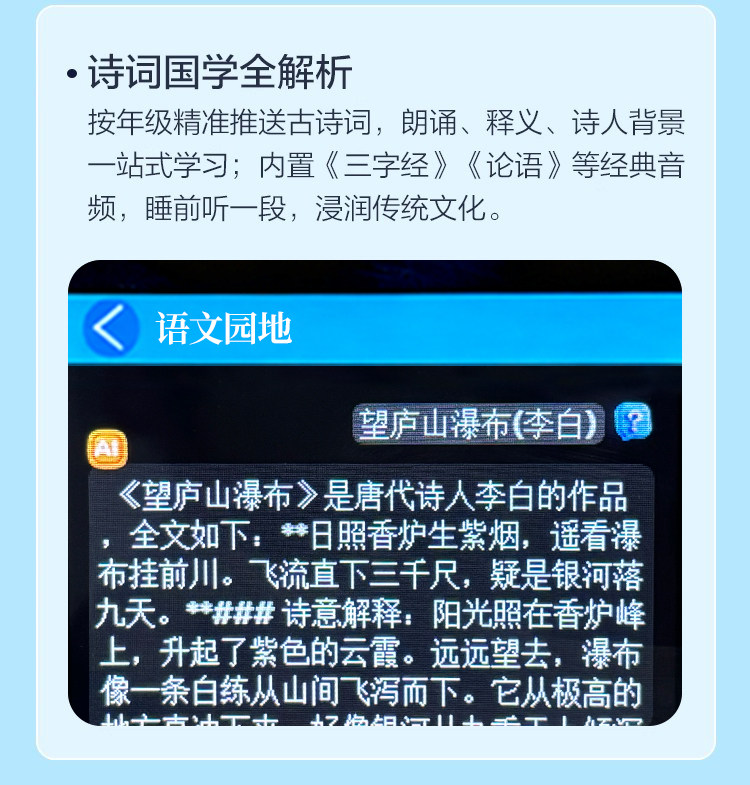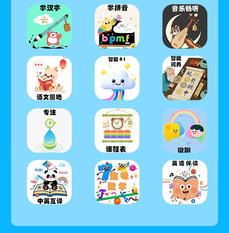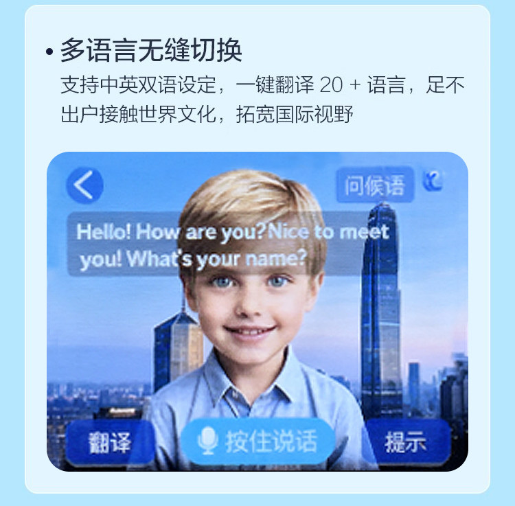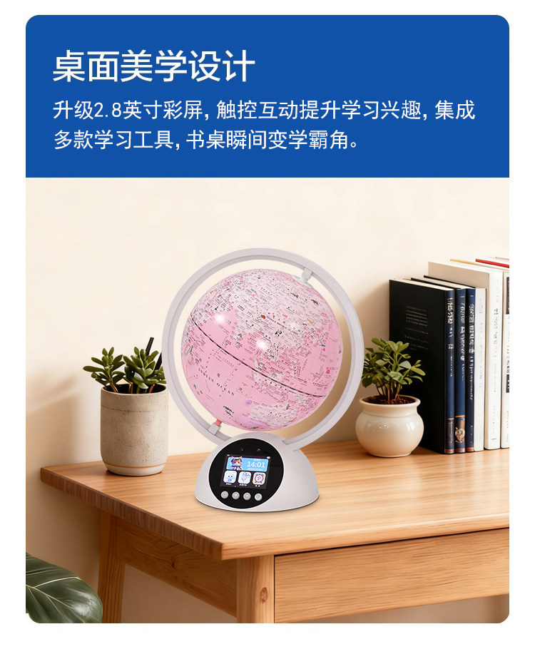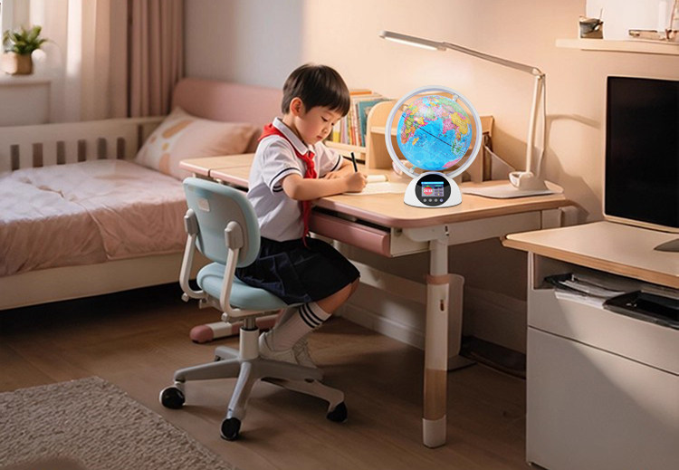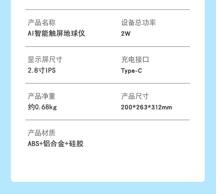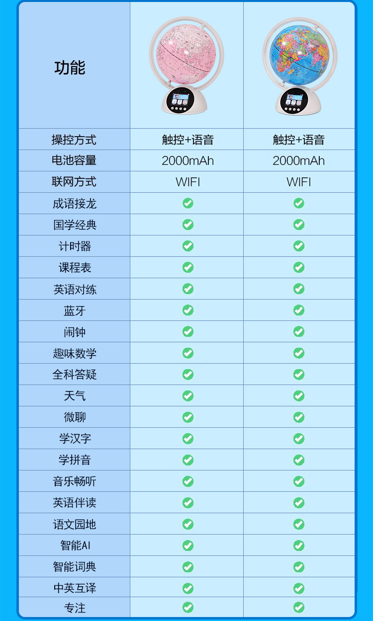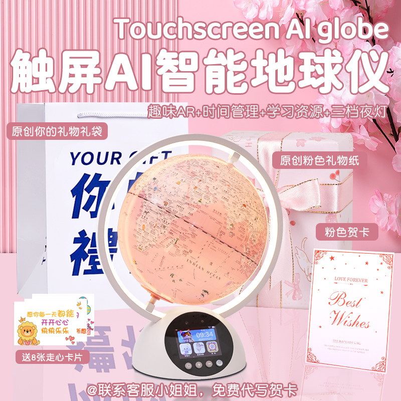 功能介绍:AI智能触屏地球仪(AI全科学习资源+语数英+闹钟天气+微聊+小夜灯)