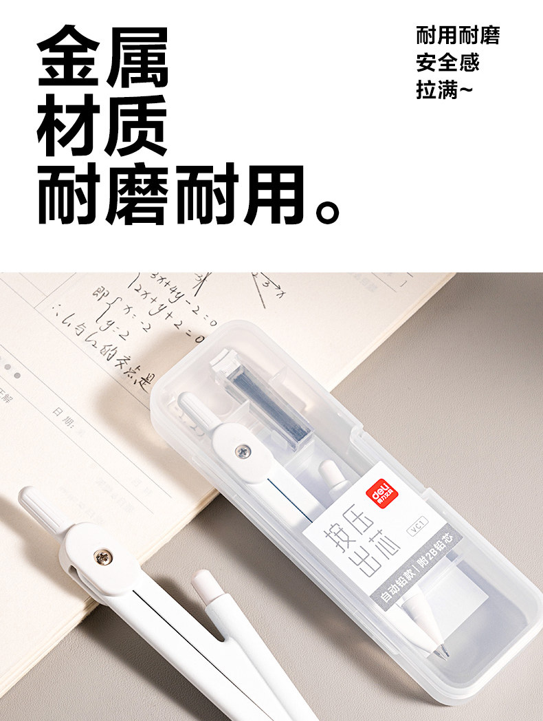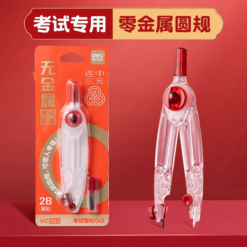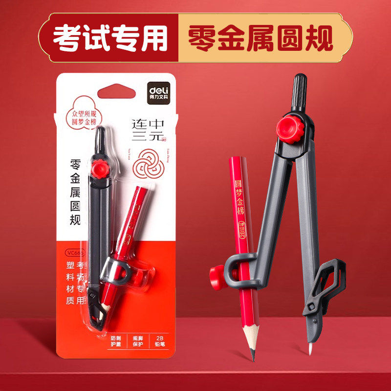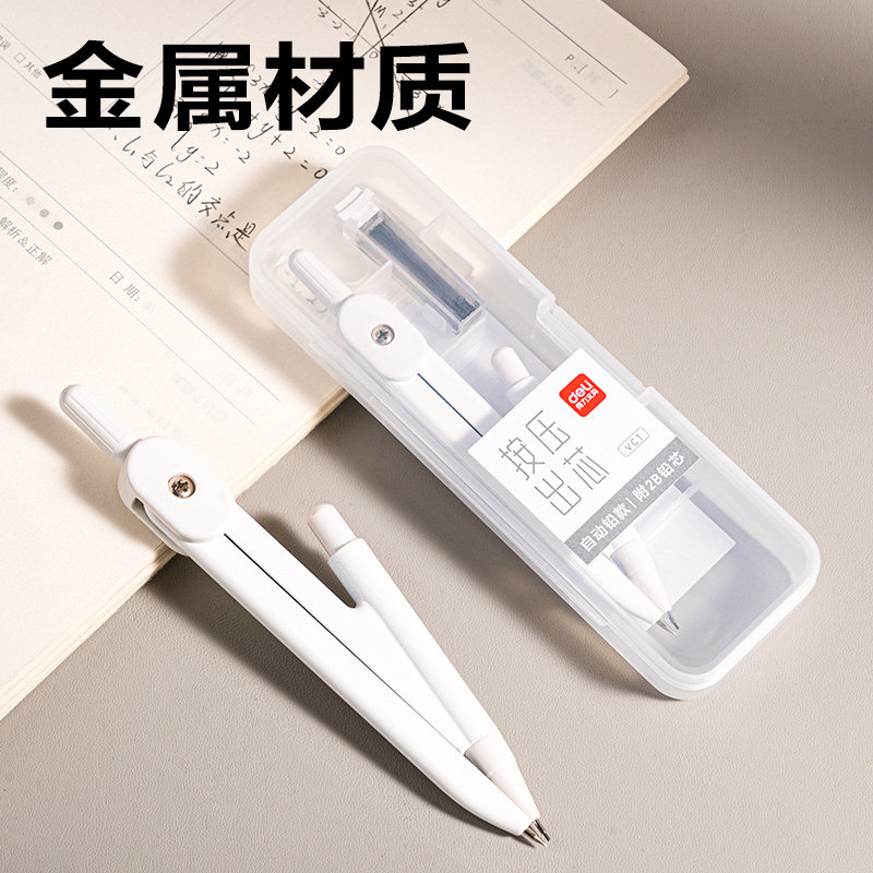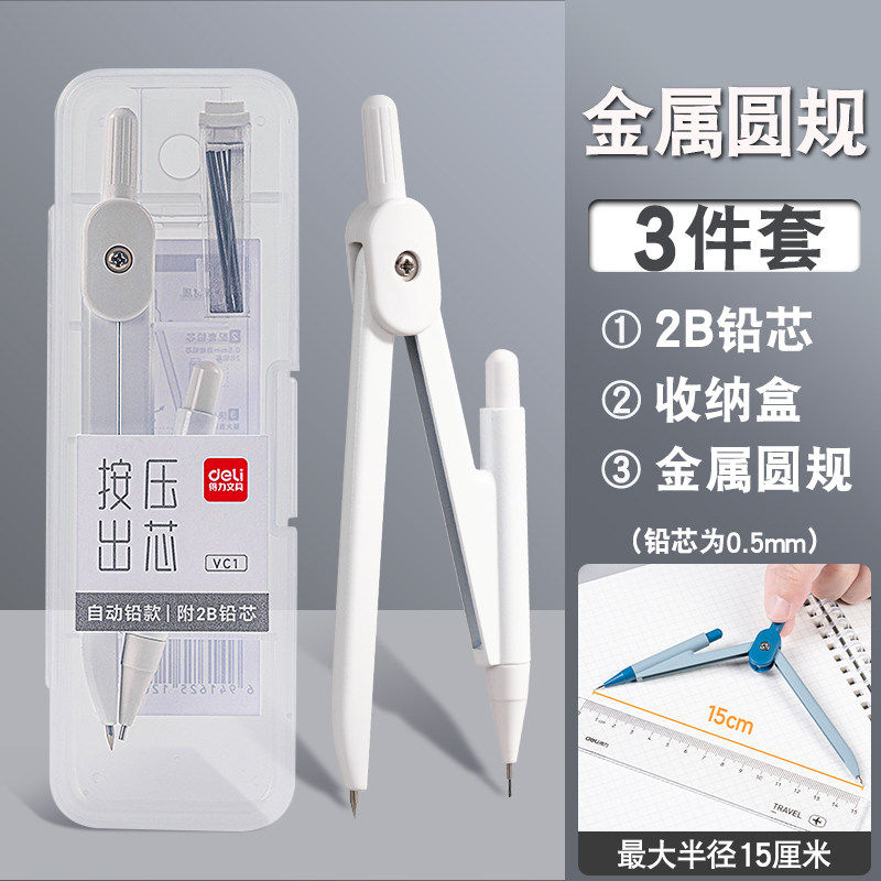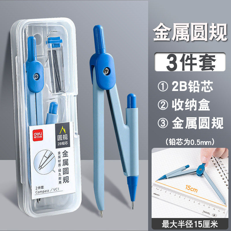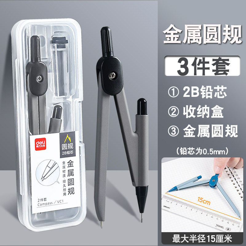 得力圆规初中生用中考2b金属圆规套装小学生考试绘图工具自动铅芯
