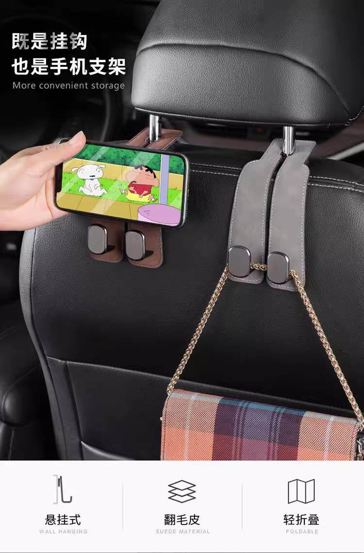 汽车挂钩车载座椅背升级隐藏双挂钩翻毛皮后排车内用包包储物挂钩