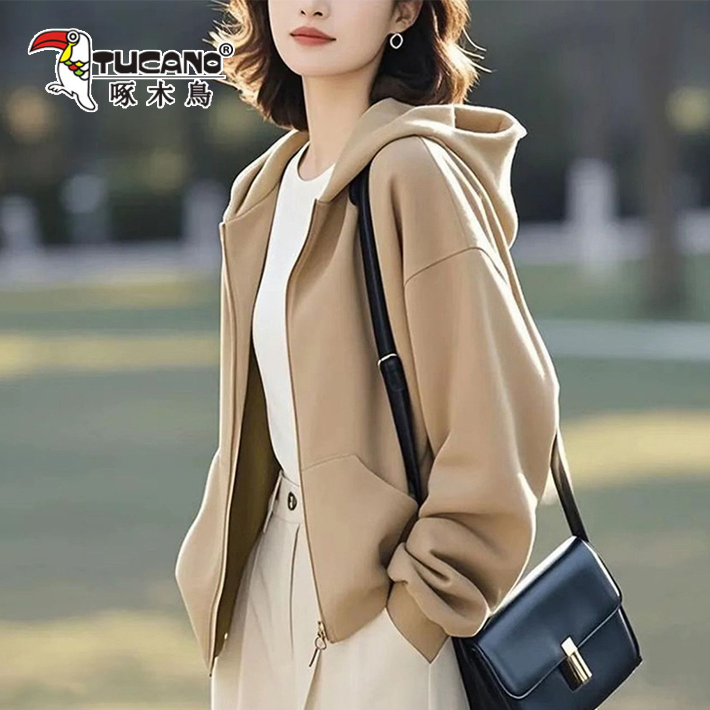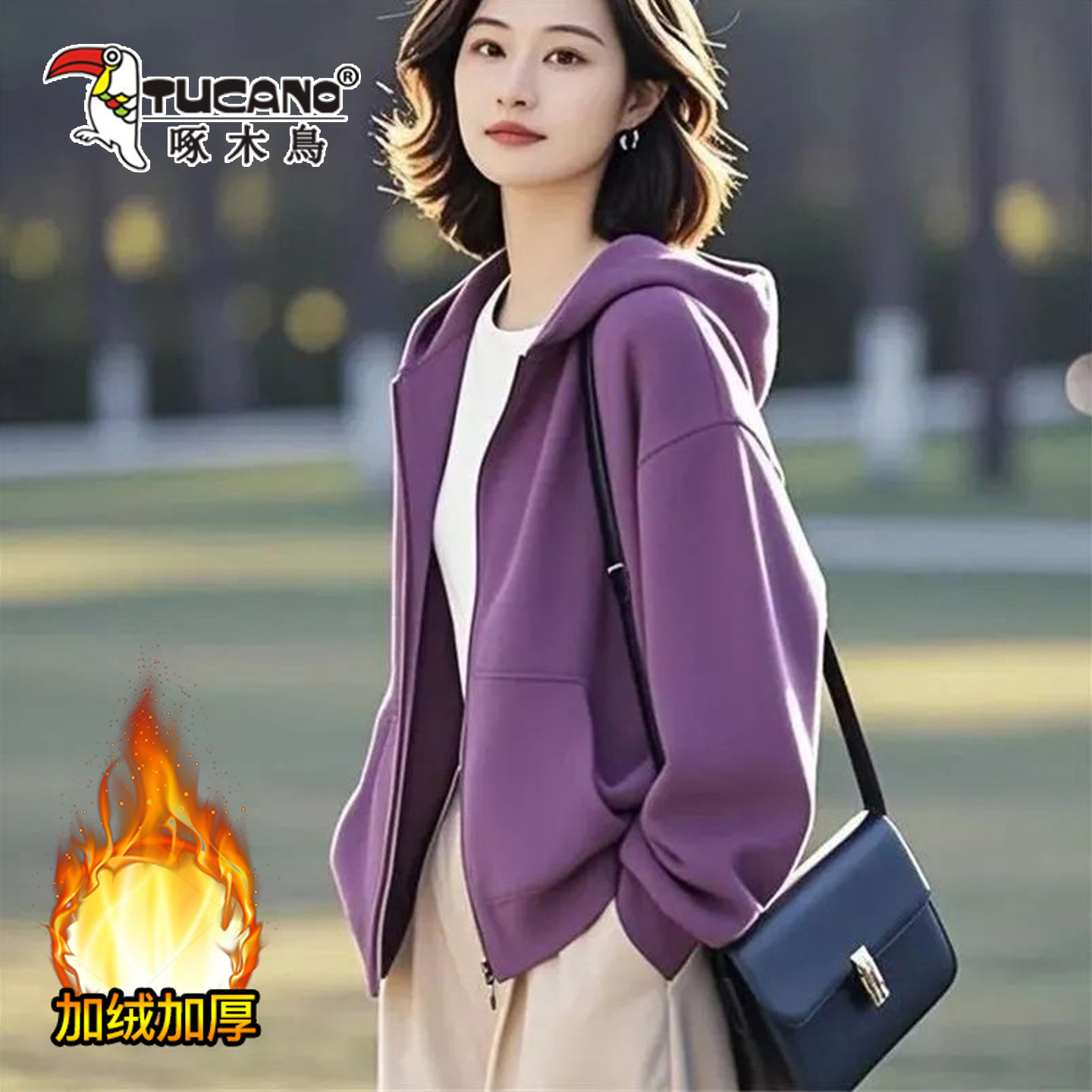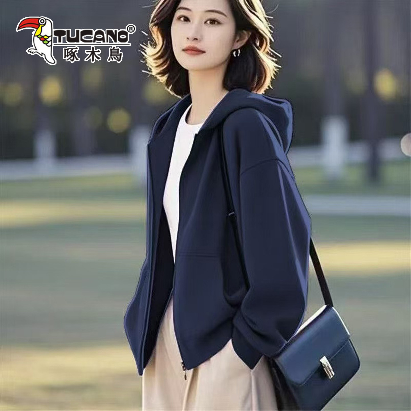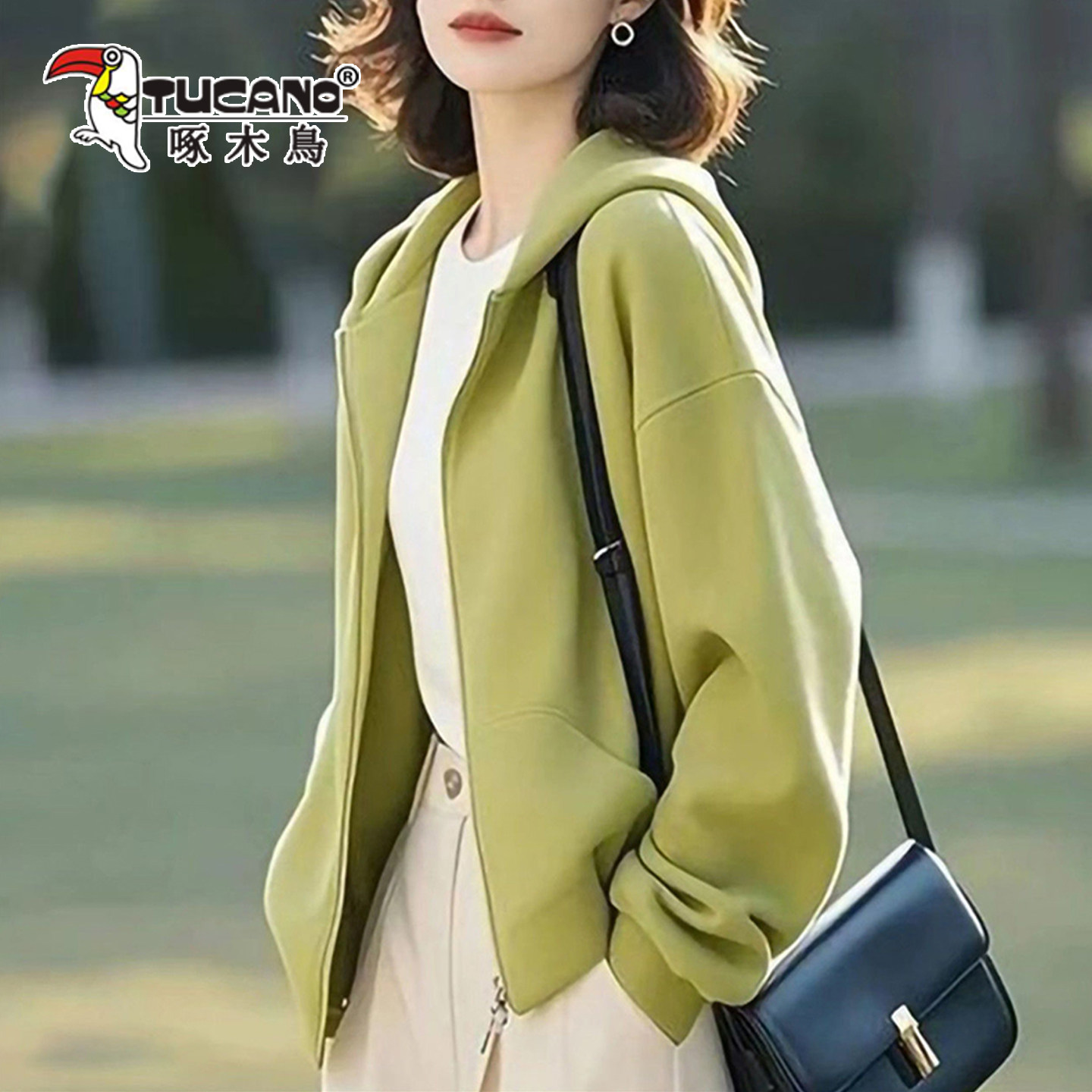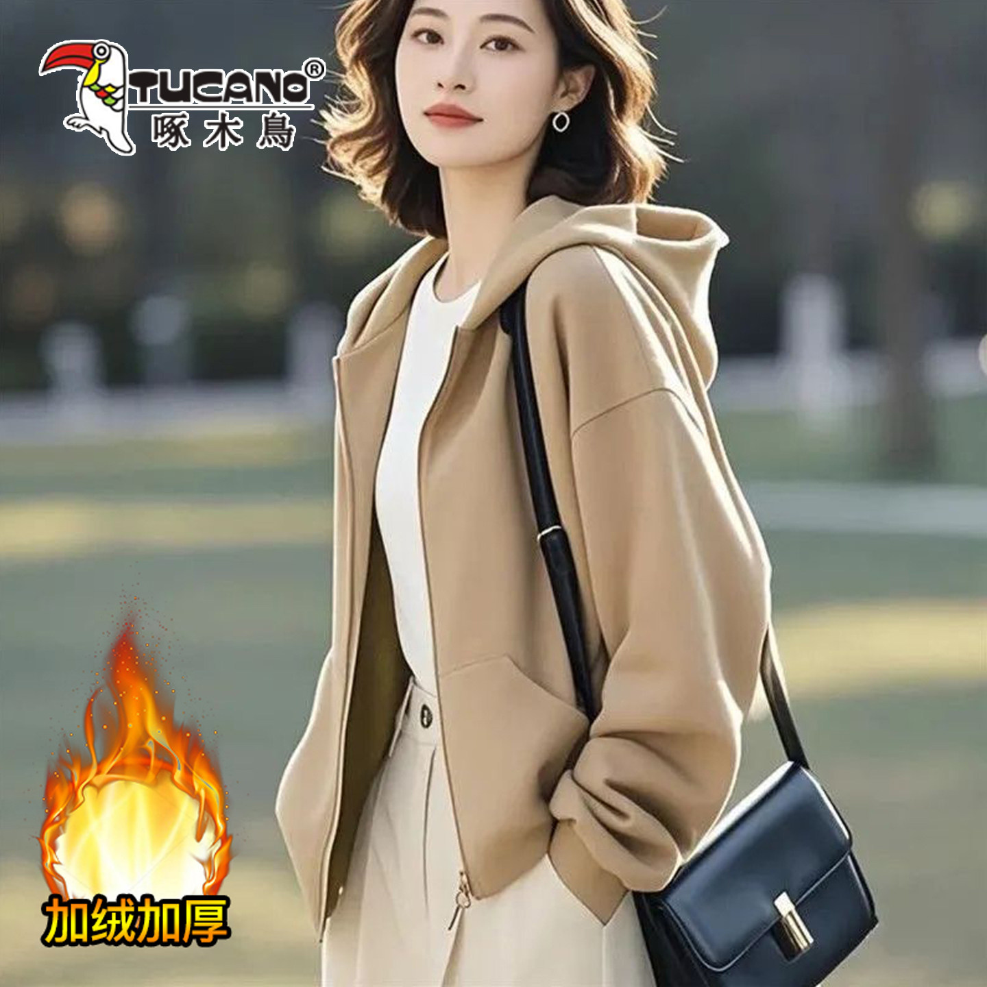 啄木鸟连帽卫衣女休闲洋气高档女装外套时尚秋冬新款宽松开衫上衣