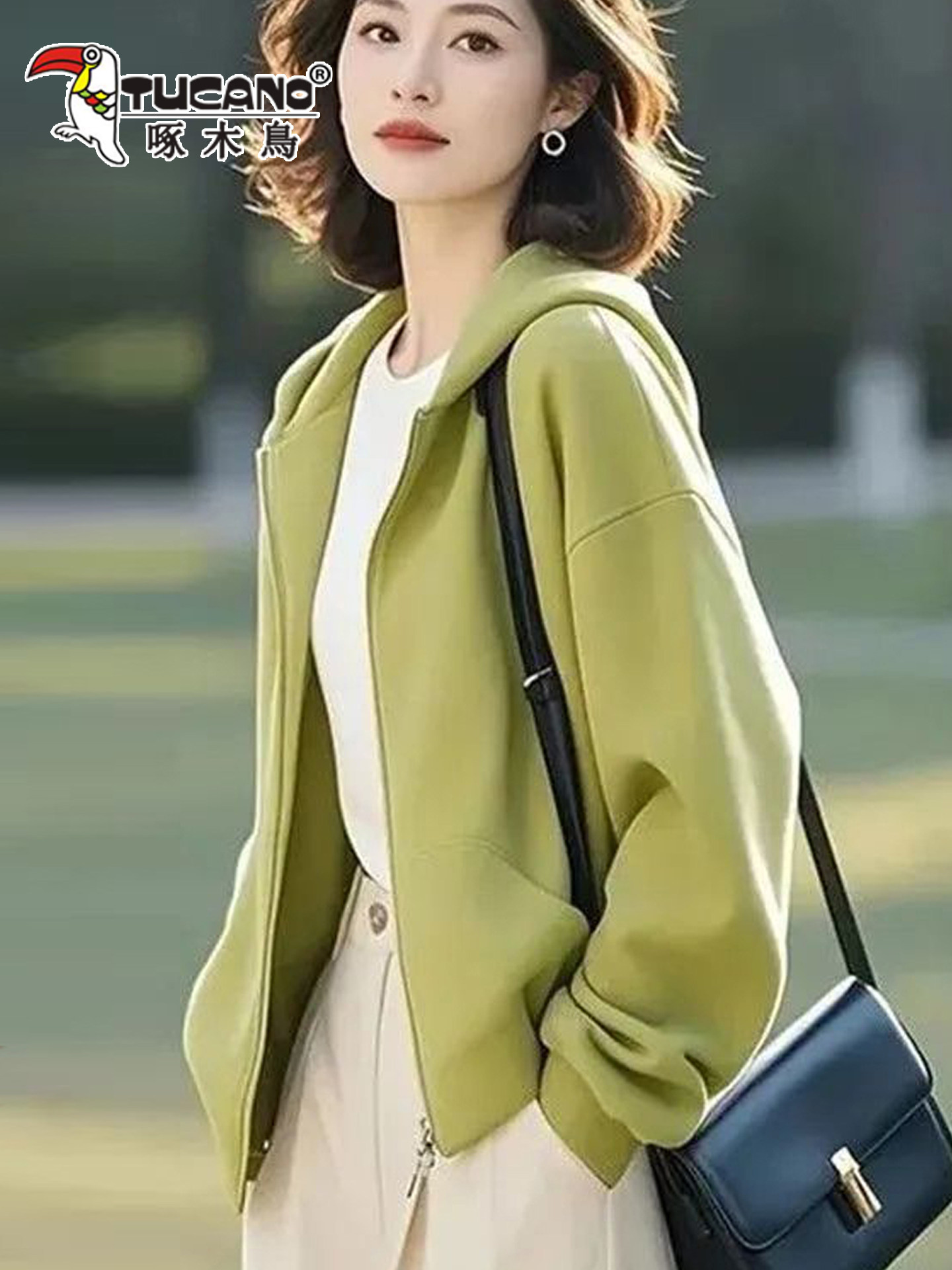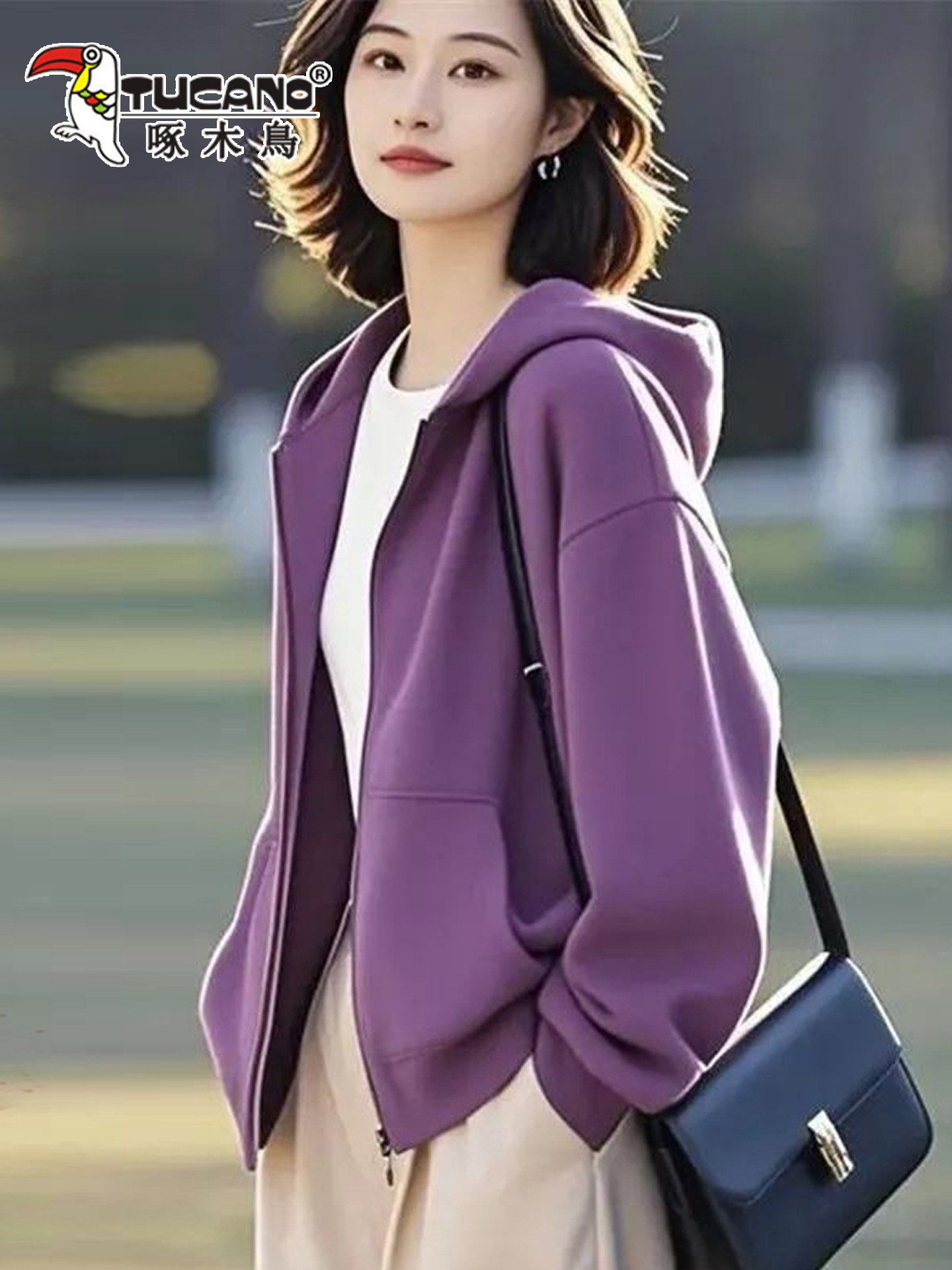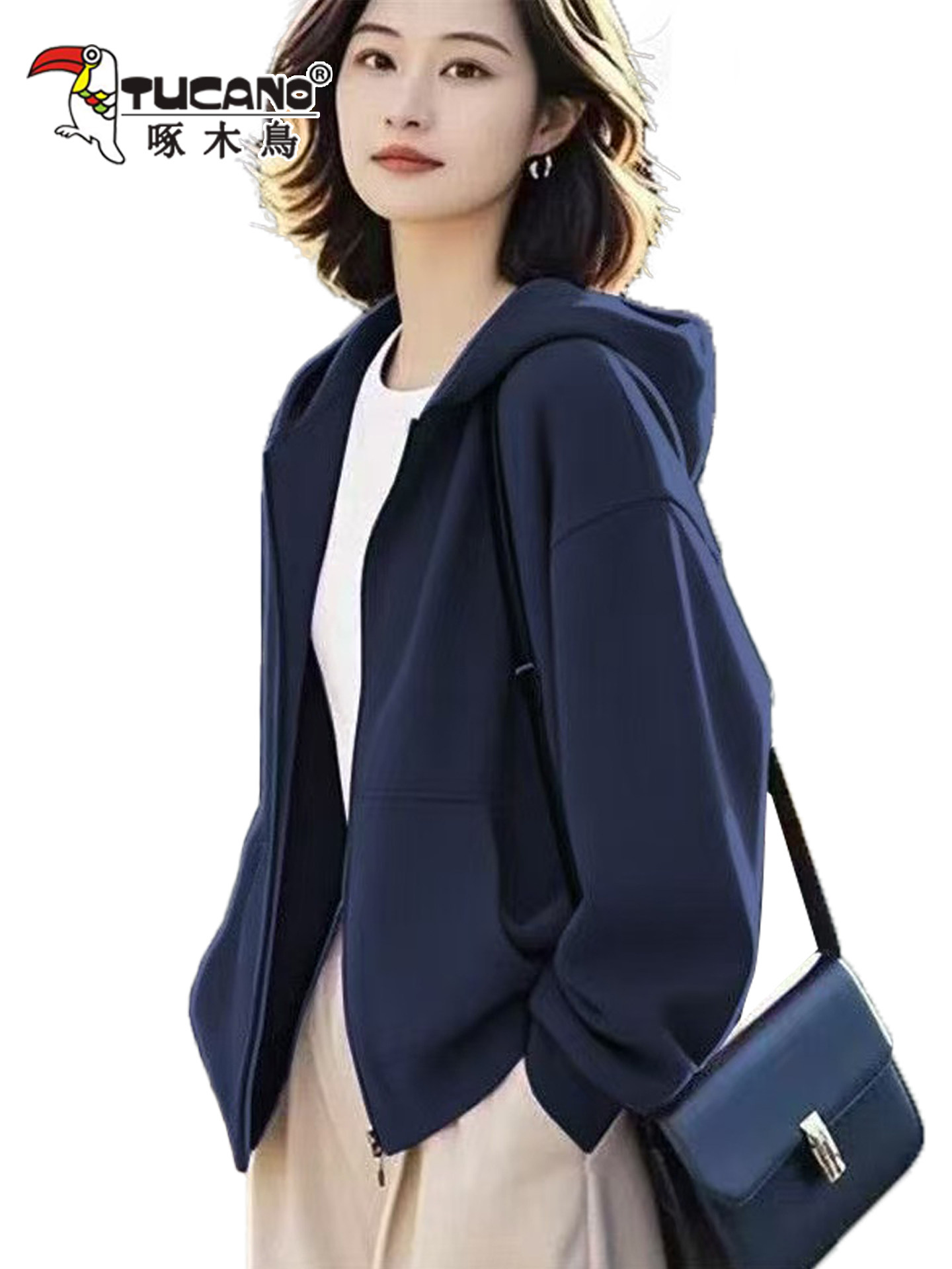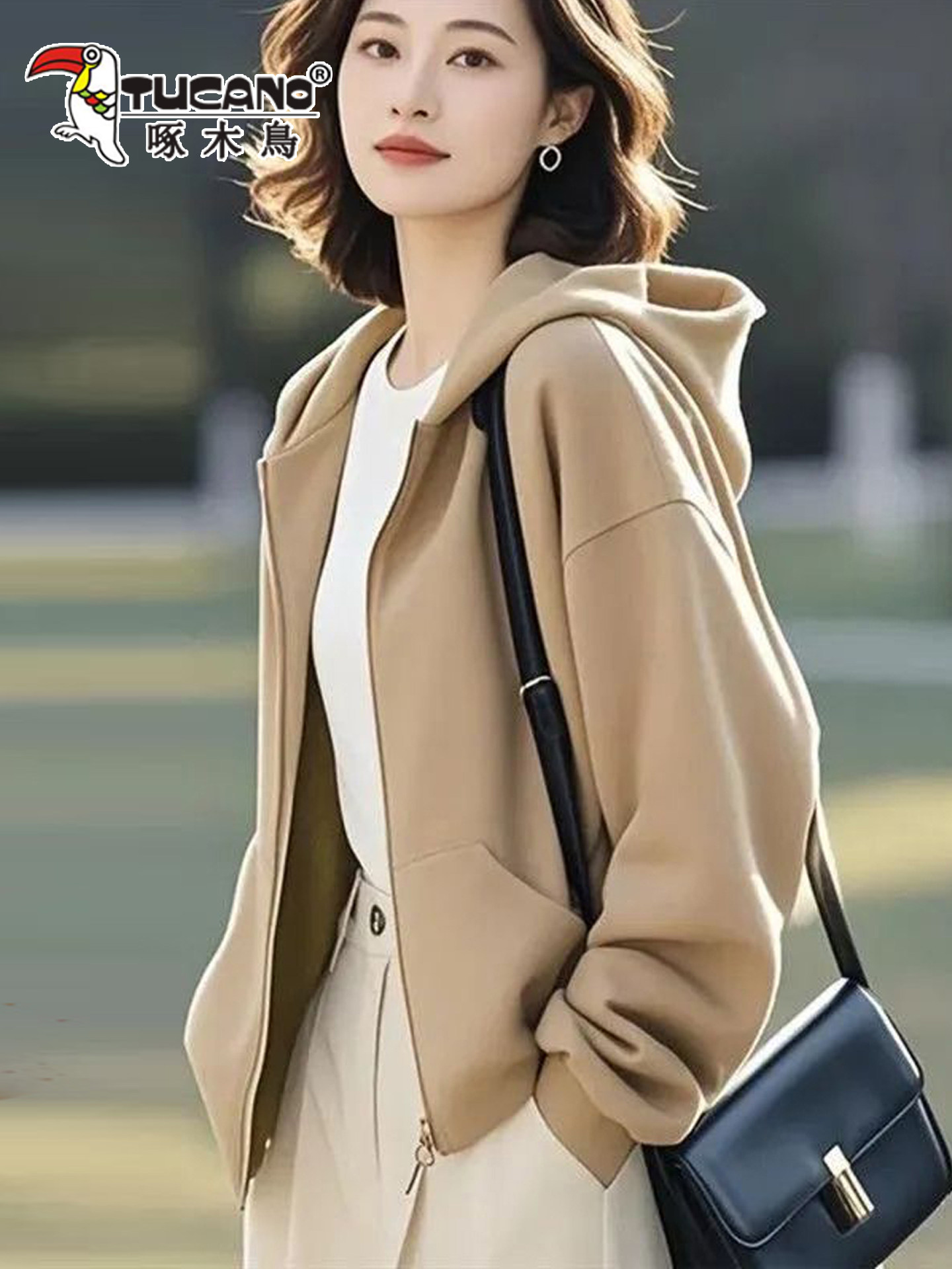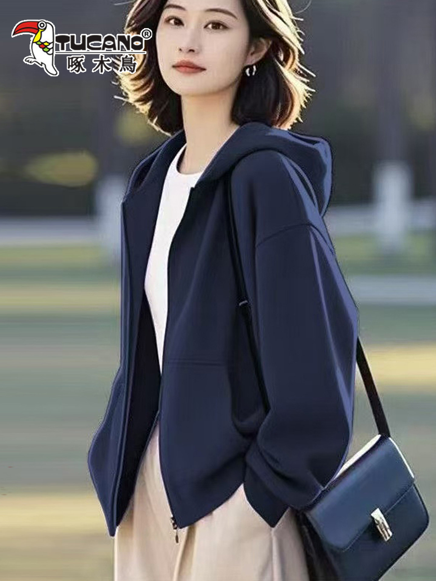 啄木鸟连帽卫衣女休闲洋气高档女装外套时尚秋冬新款宽松开衫上衣