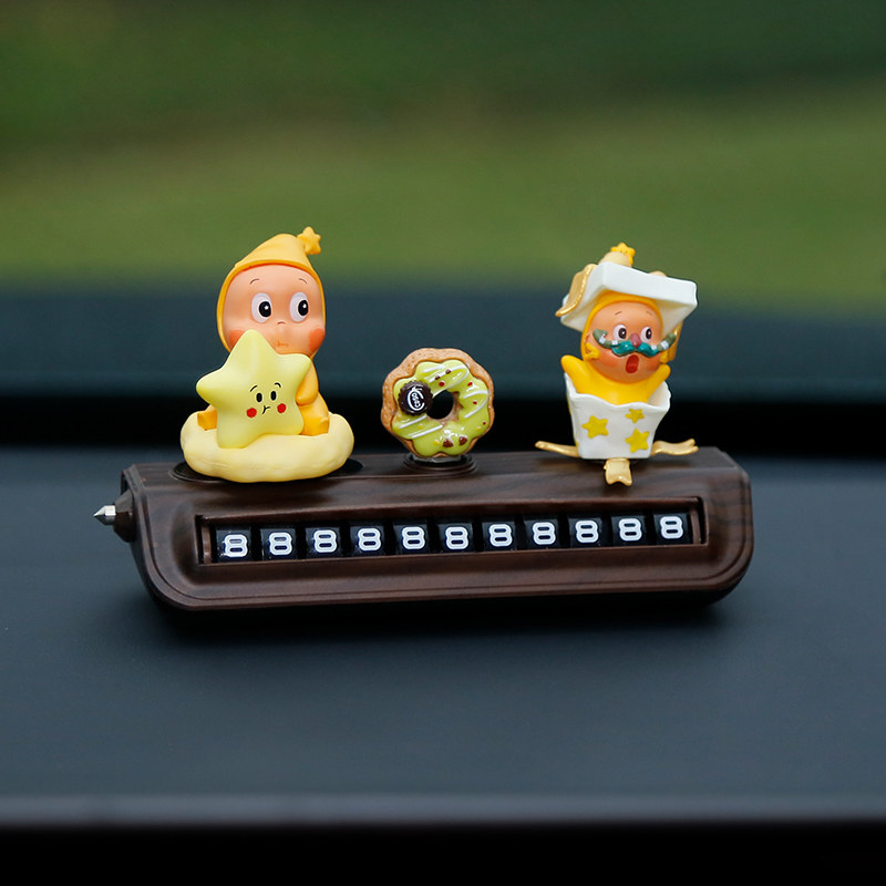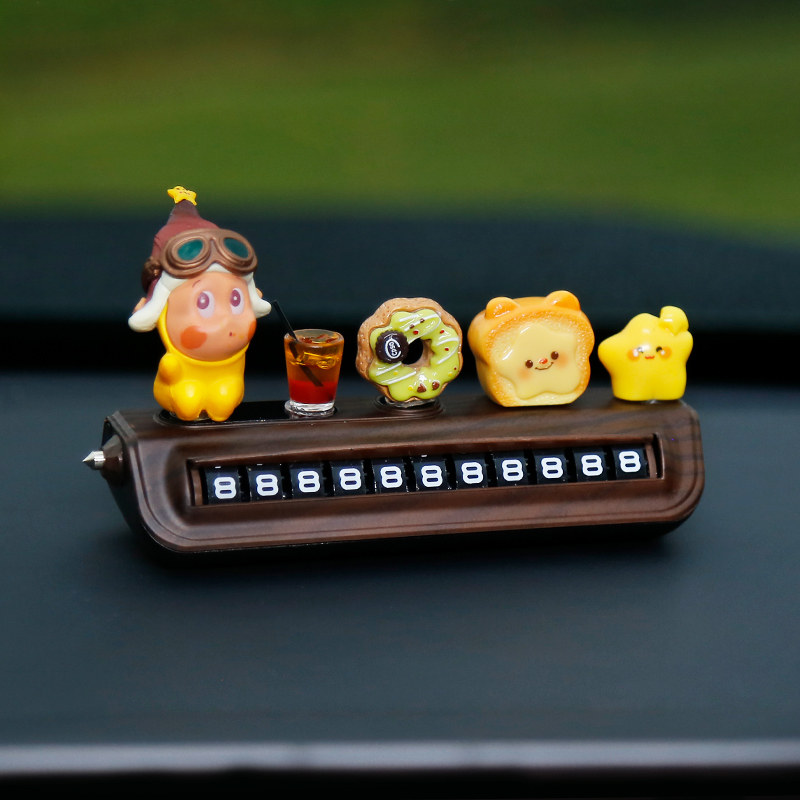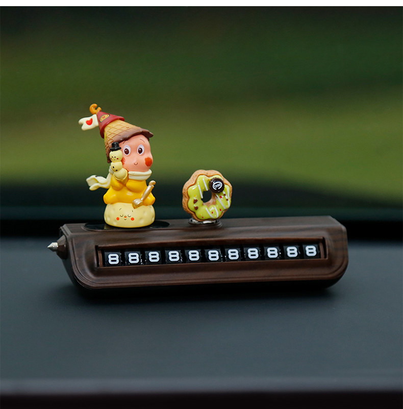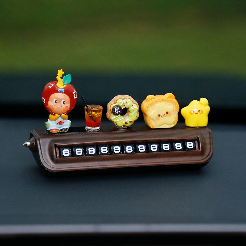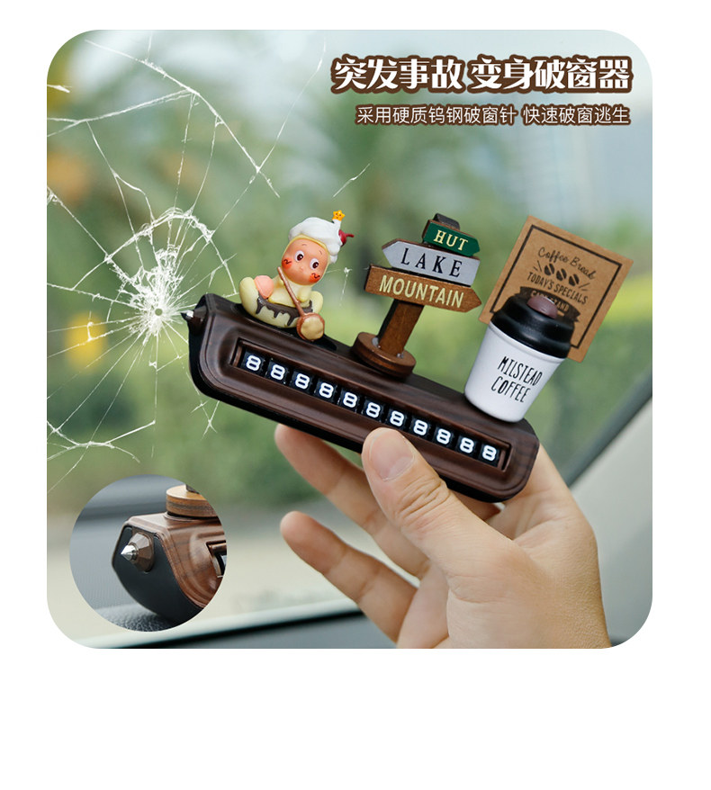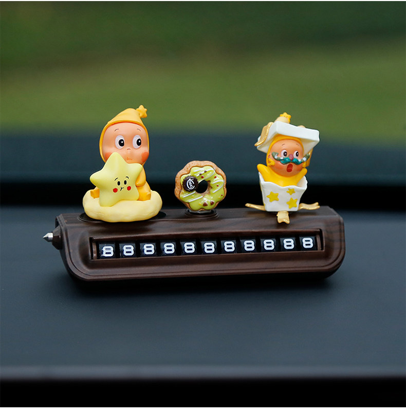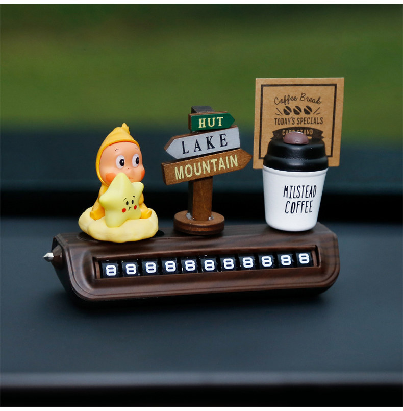 星星人挪车电话牌高级木纹汽车临时停车号码牌移车中控台车载摆件
