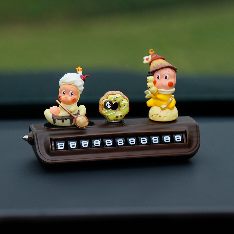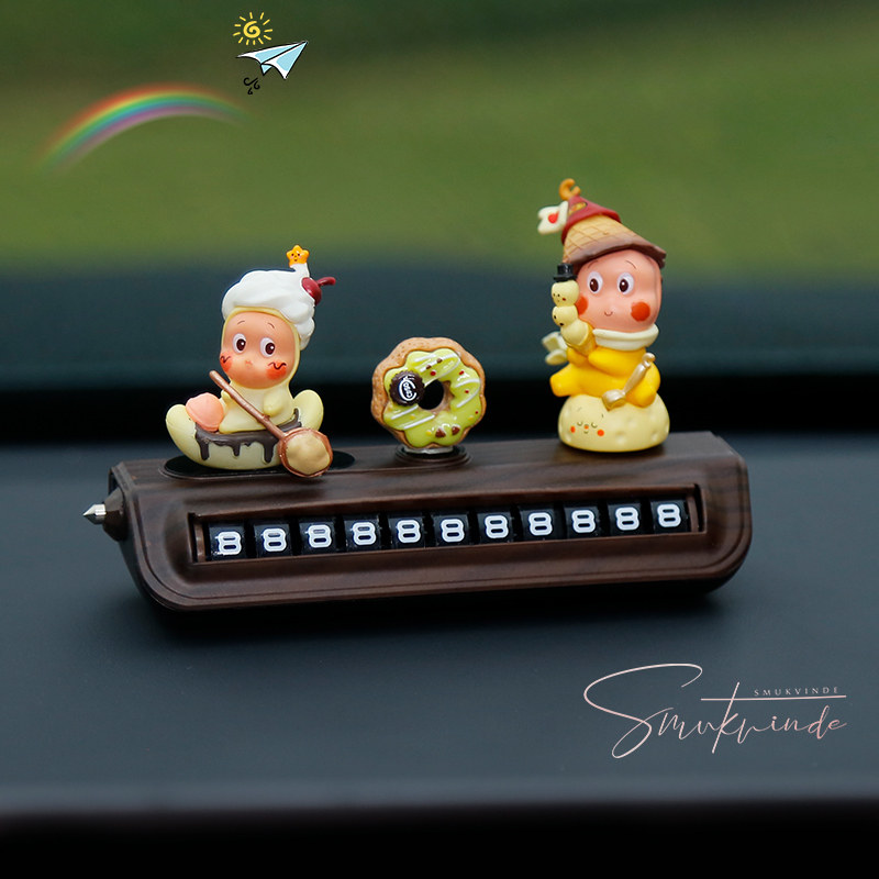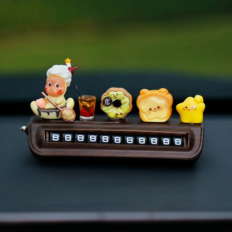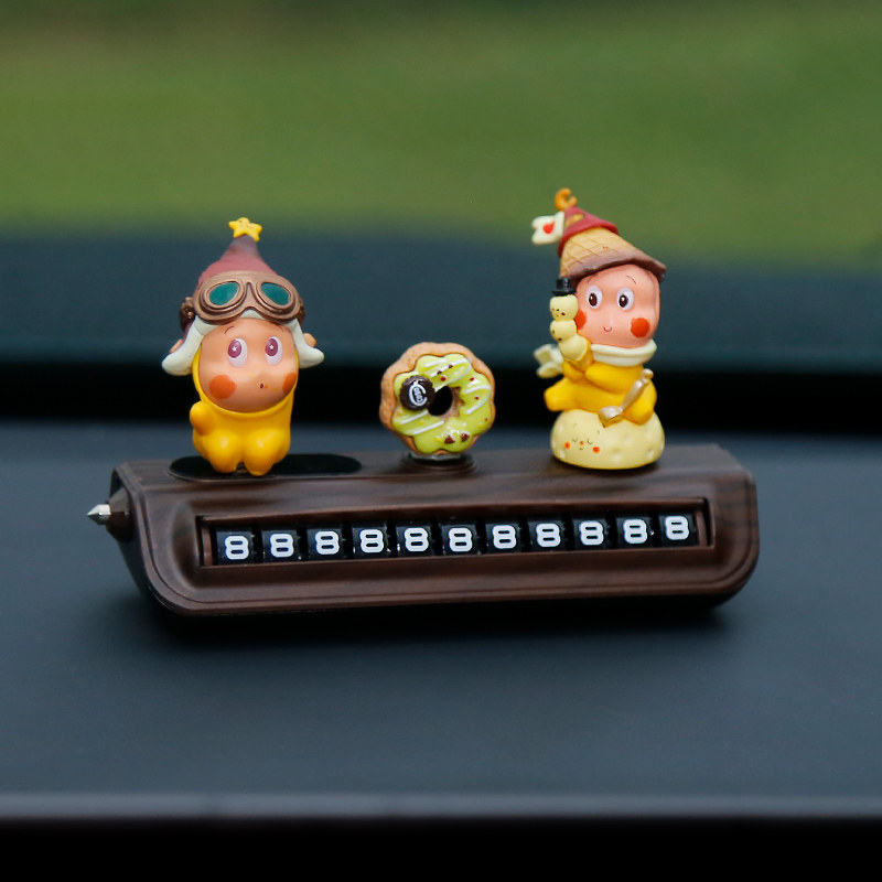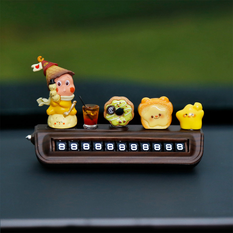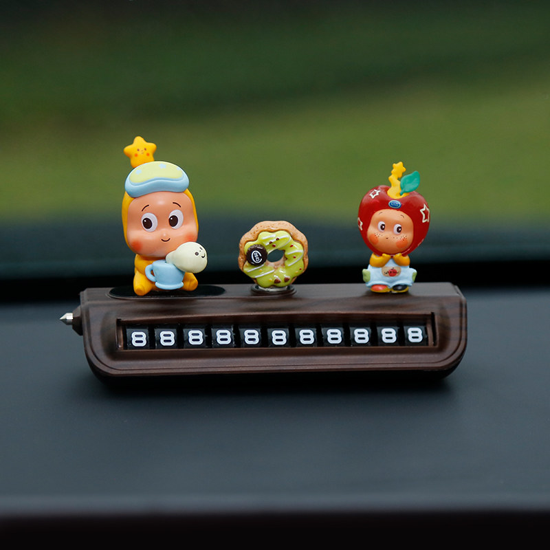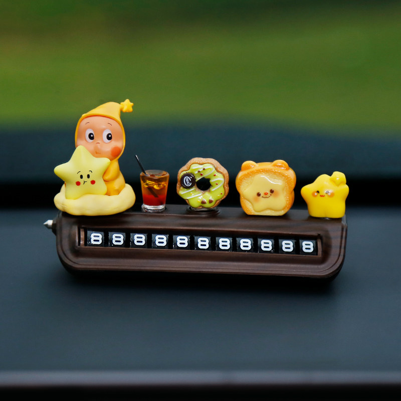 星星人挪车电话牌高级木纹汽车临时停车号码牌移车中控台车载摆件