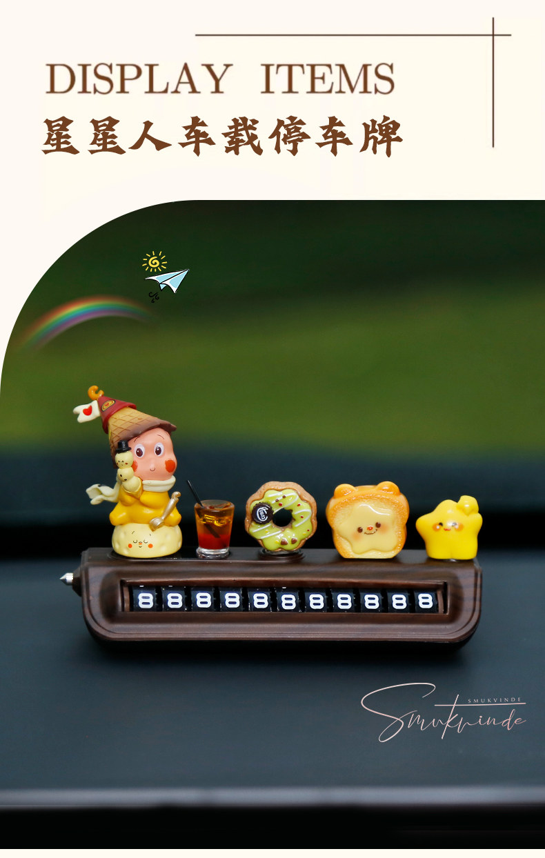 HomeProducts星星人挪车电话牌高级木纹汽车临时停车号码牌移车中控台车载摆件