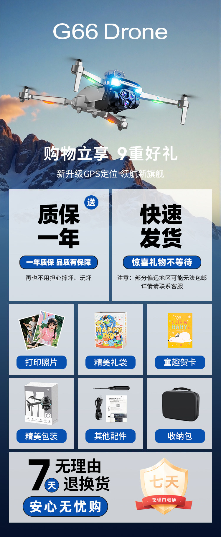 升级GPS|AI芯片-M66【一电】一键返航/AI智能避障/8K高清双摄/无刷电机/超长续航