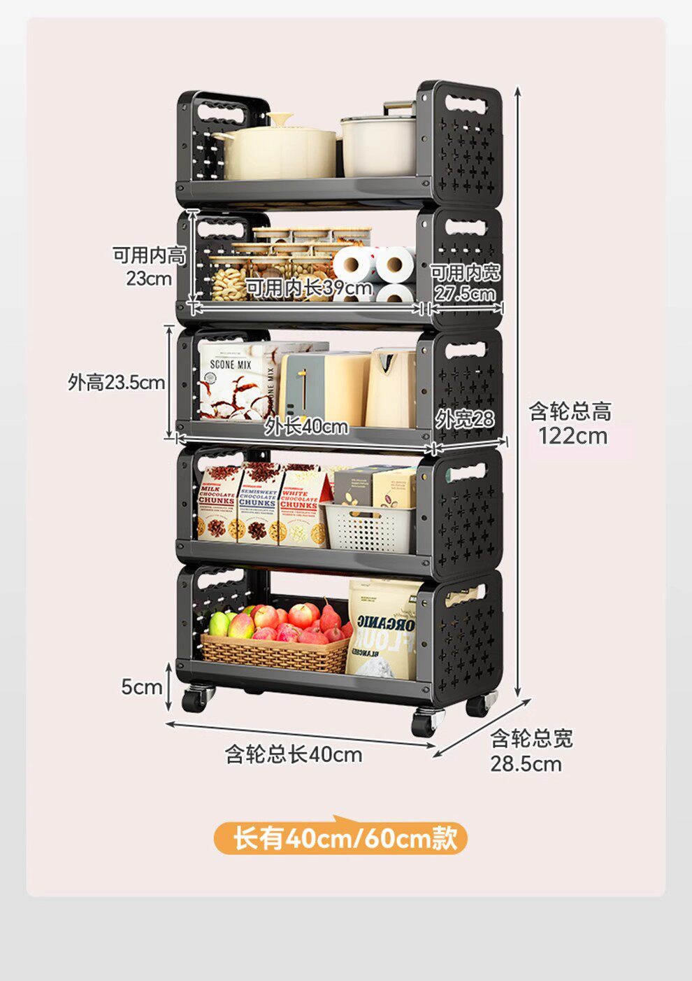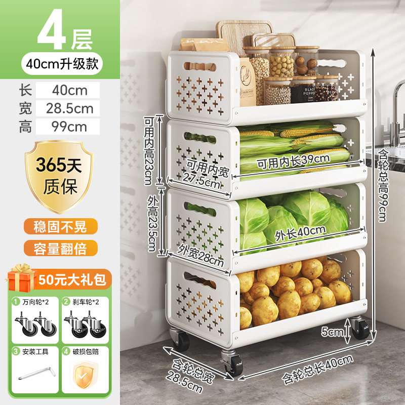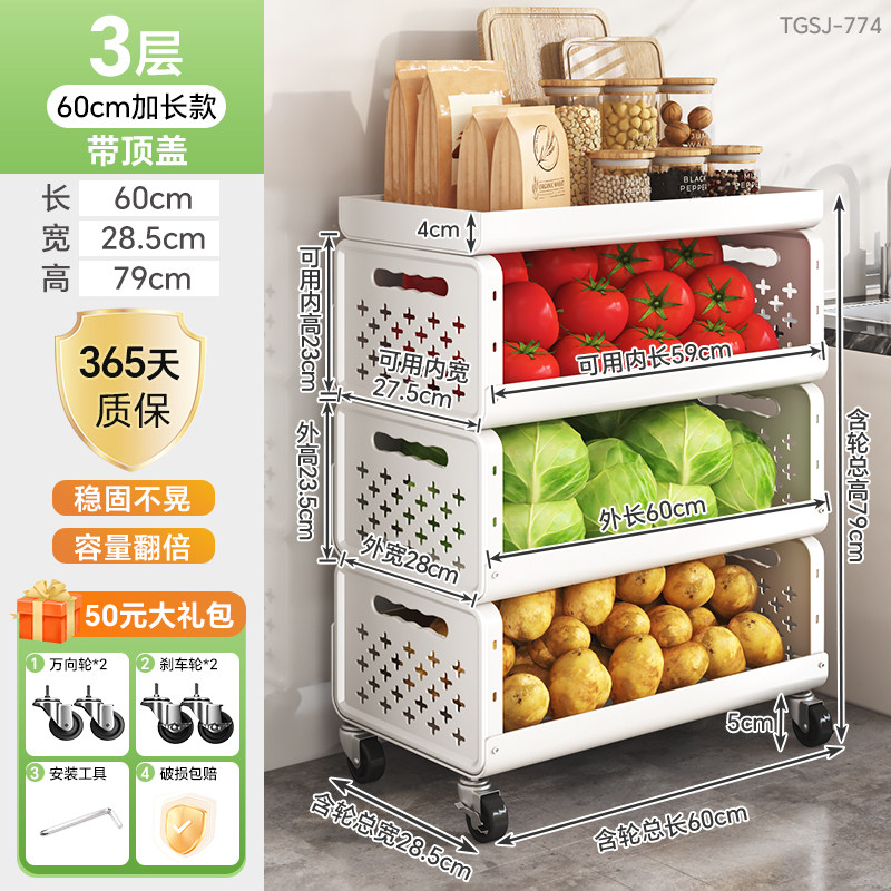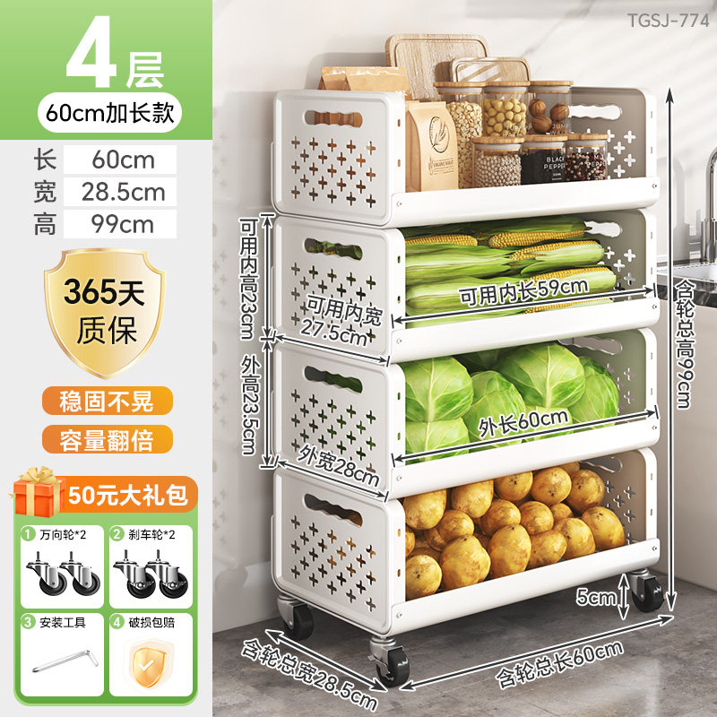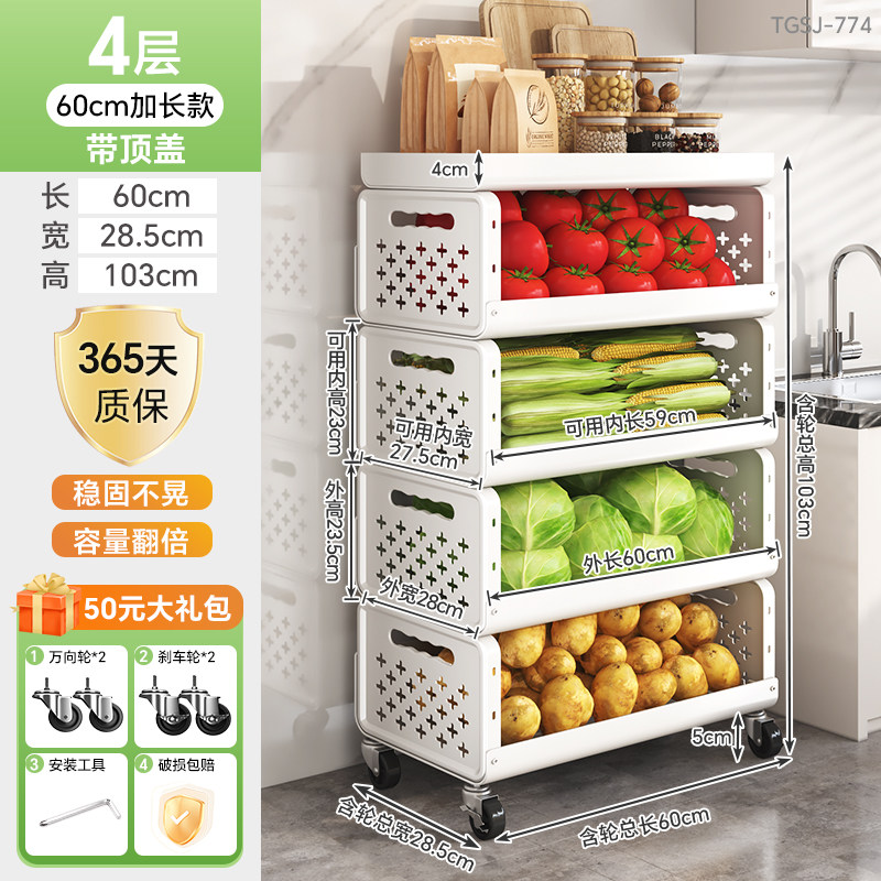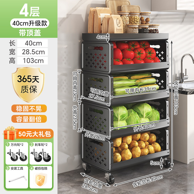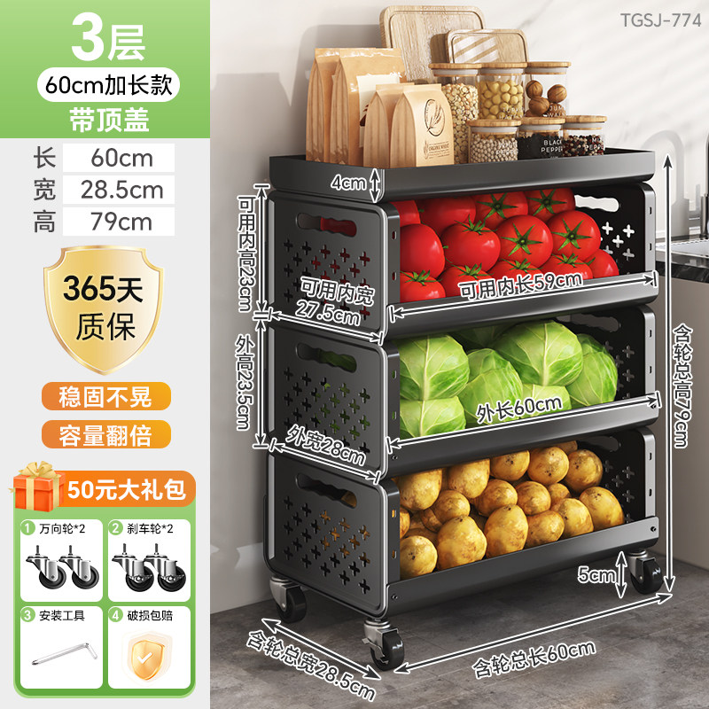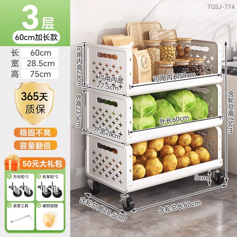 HomeProducts厨房置物架家用小推车落地台面多层多功能水果蔬菜菜篮子收纳架子