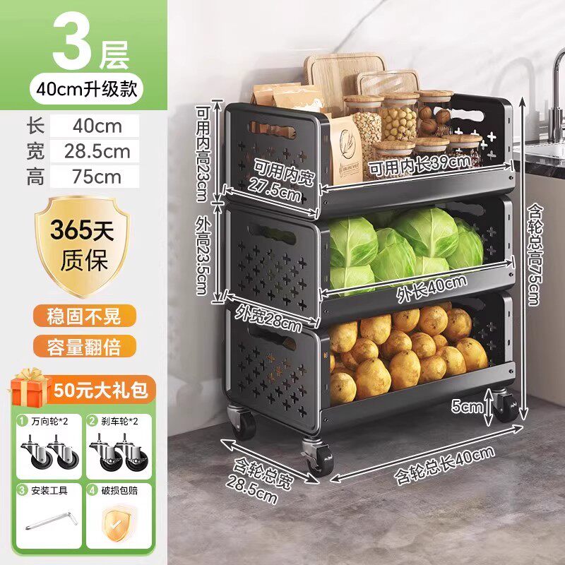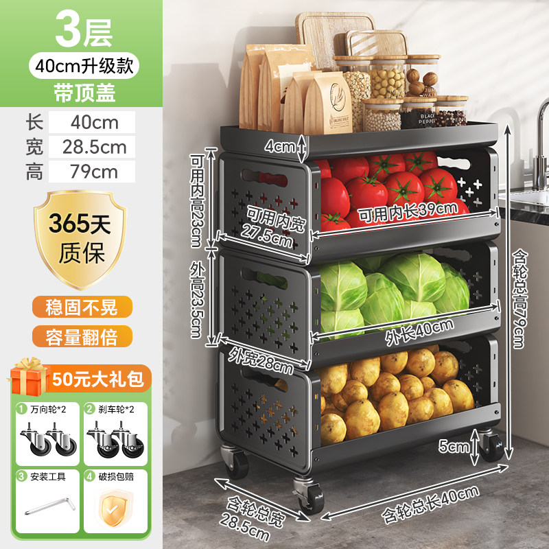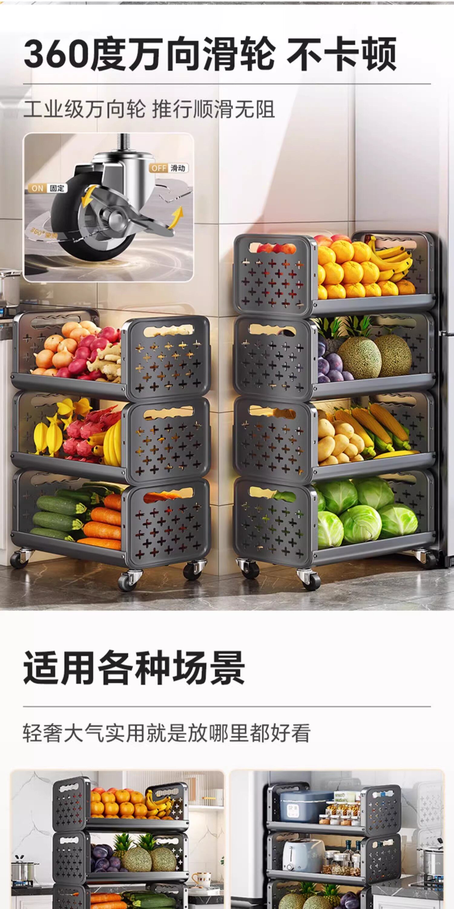 厨房置物架家用小推车落地台面多层多功能水果蔬菜菜篮子收纳架子