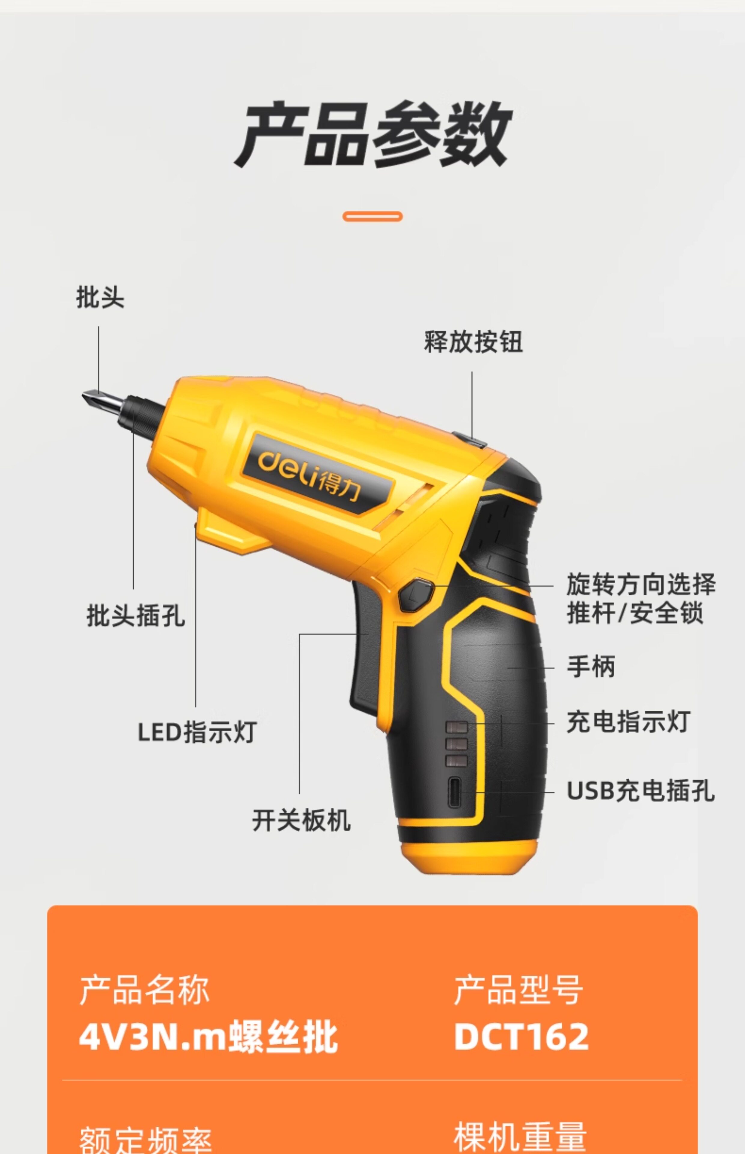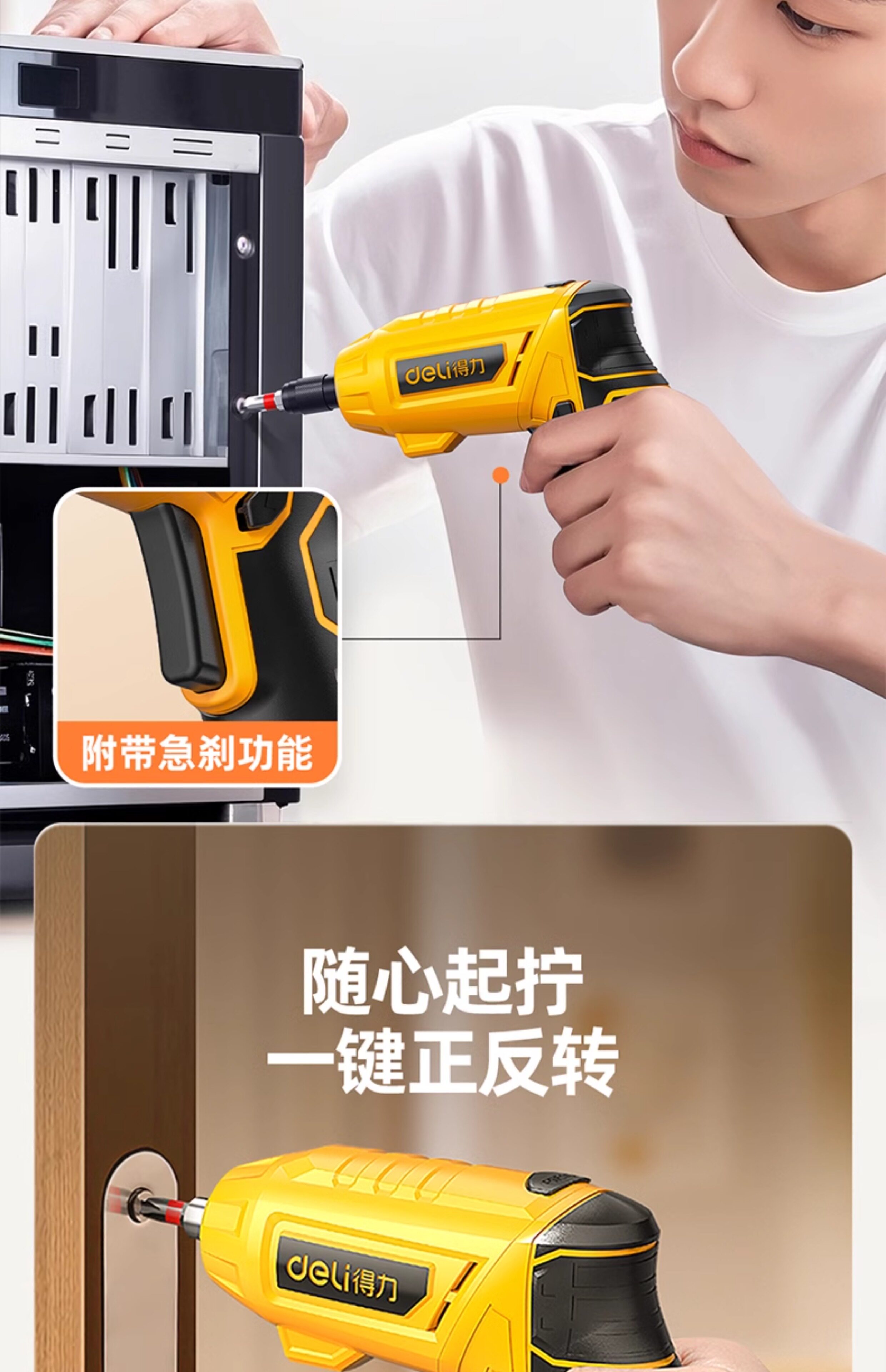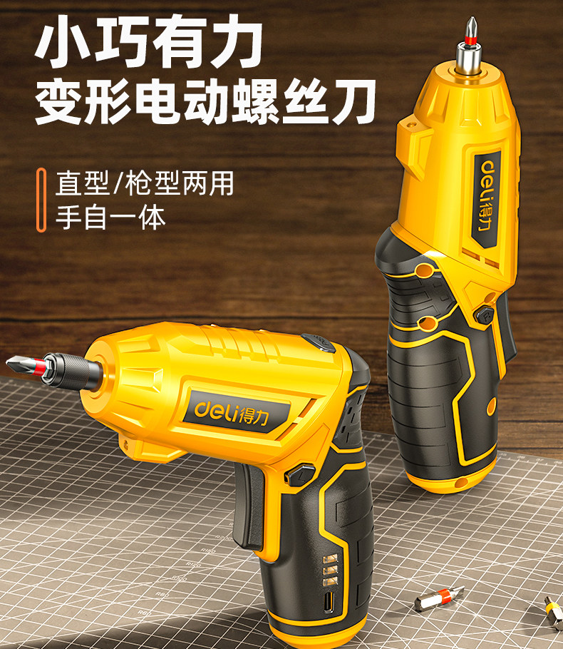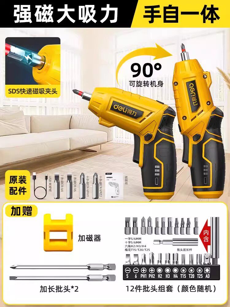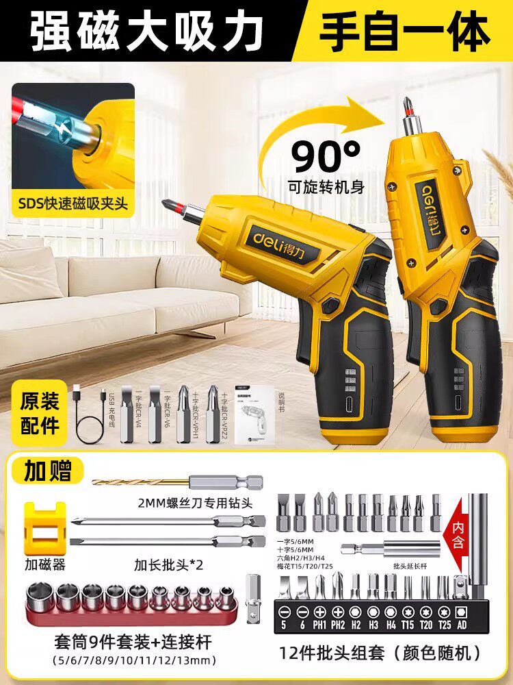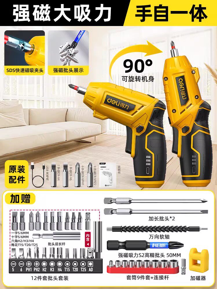 得力电动螺丝刀充电式家用小型起子机多功能电批锂电电钻工具套装