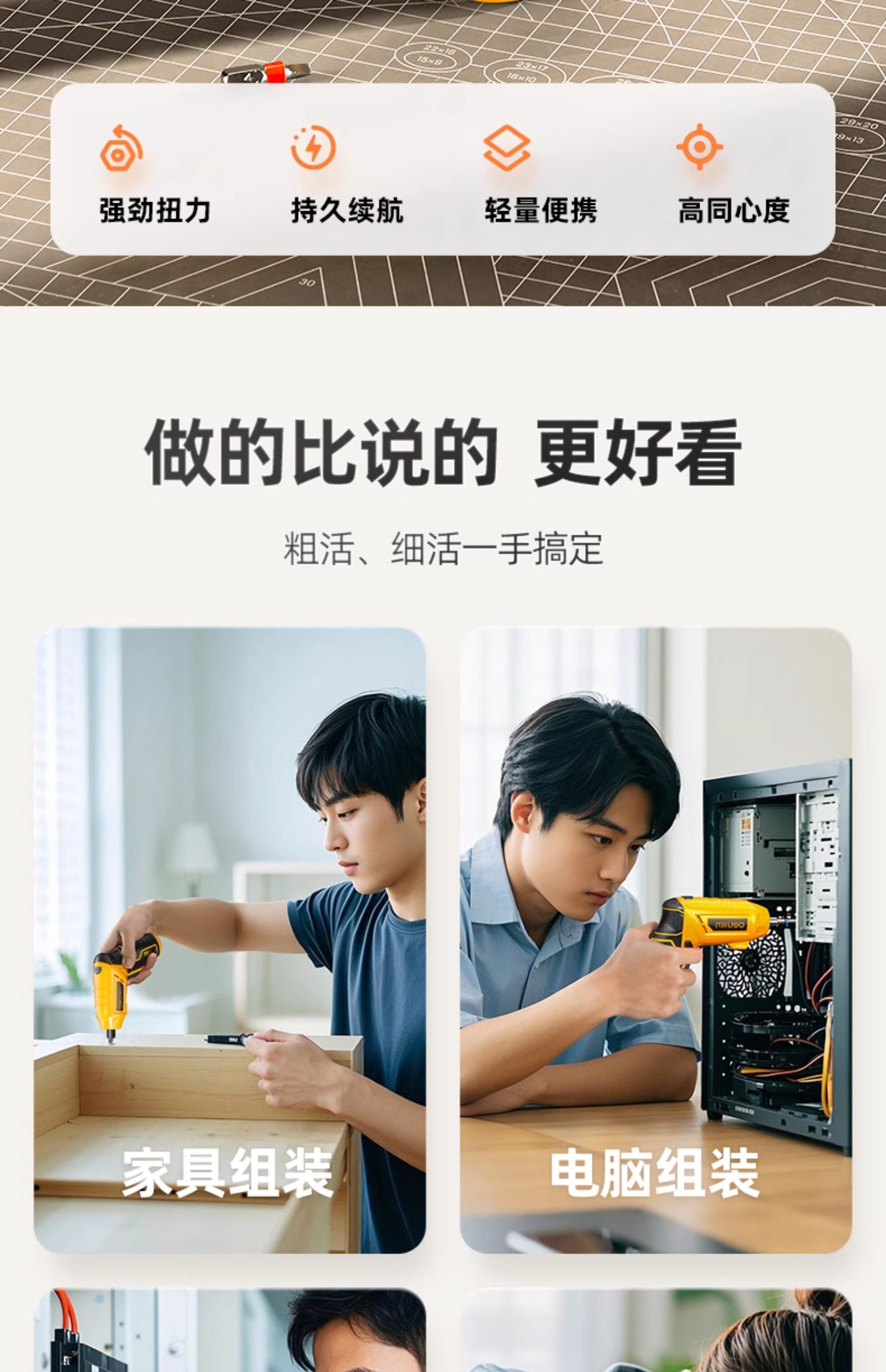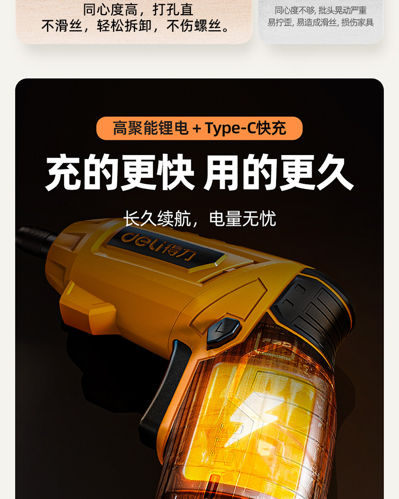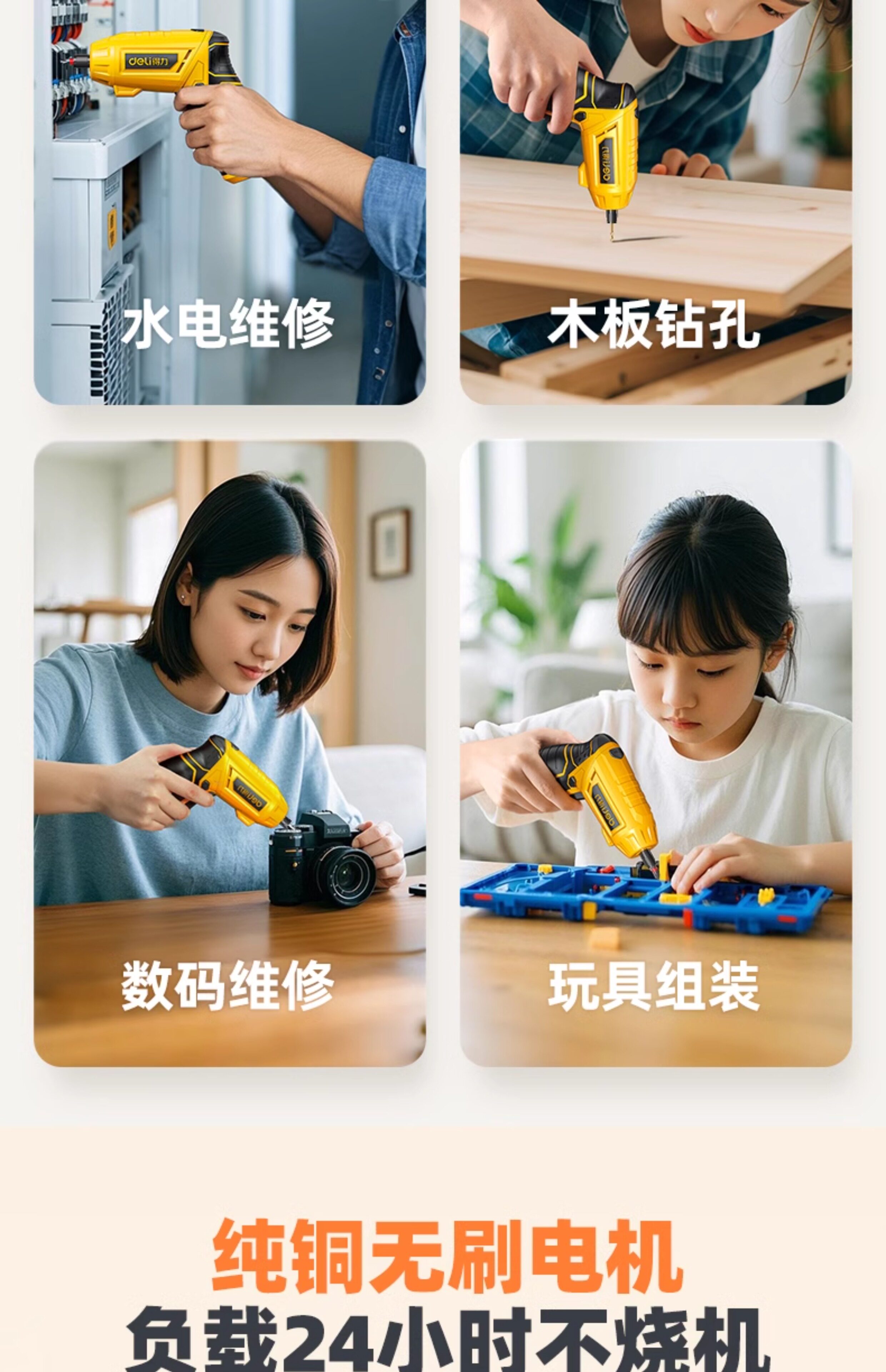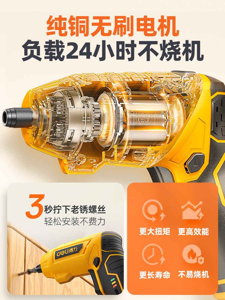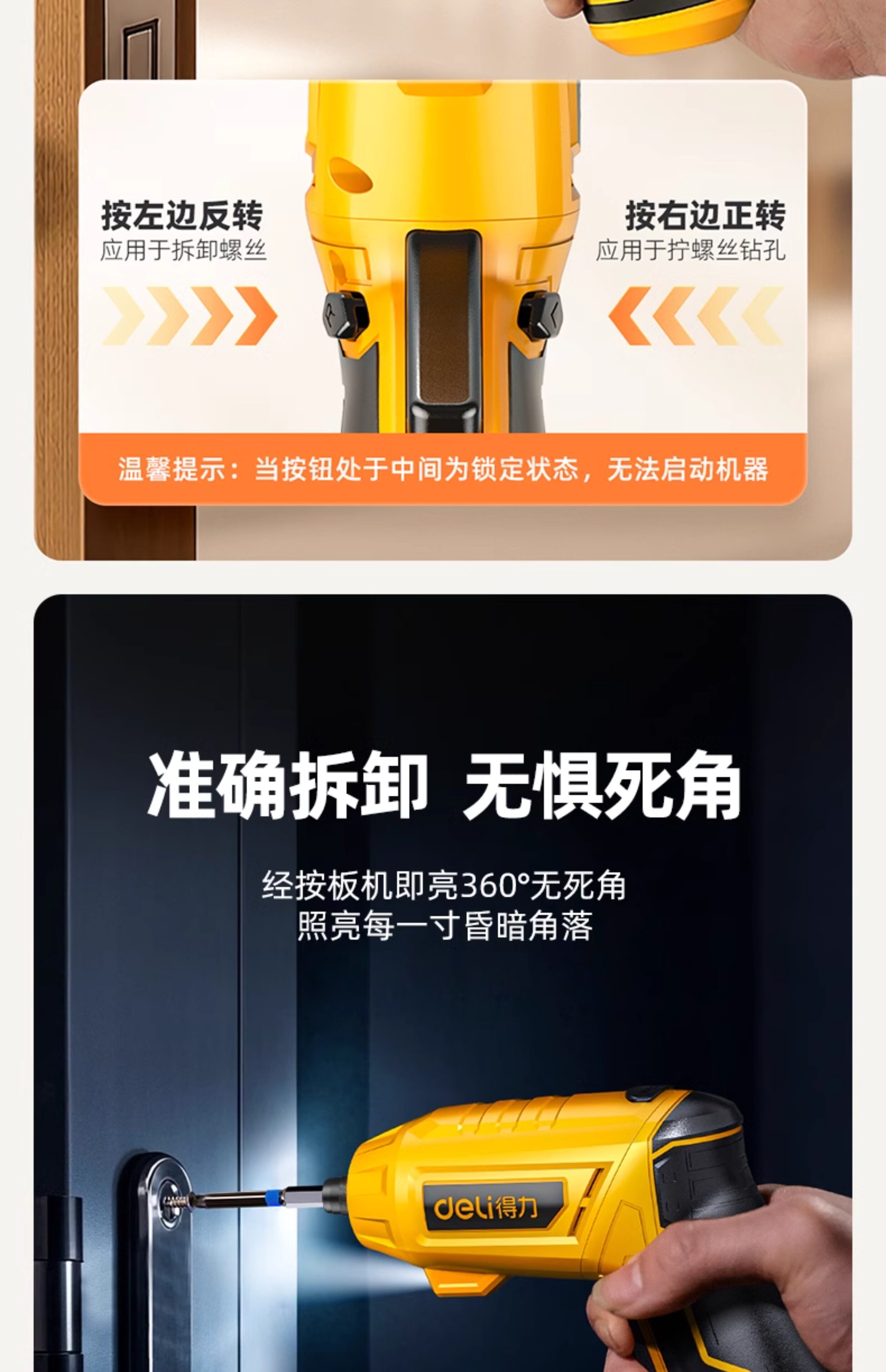 得力电动螺丝刀充电式家用小型起子机多功能电批锂电电钻工具套装