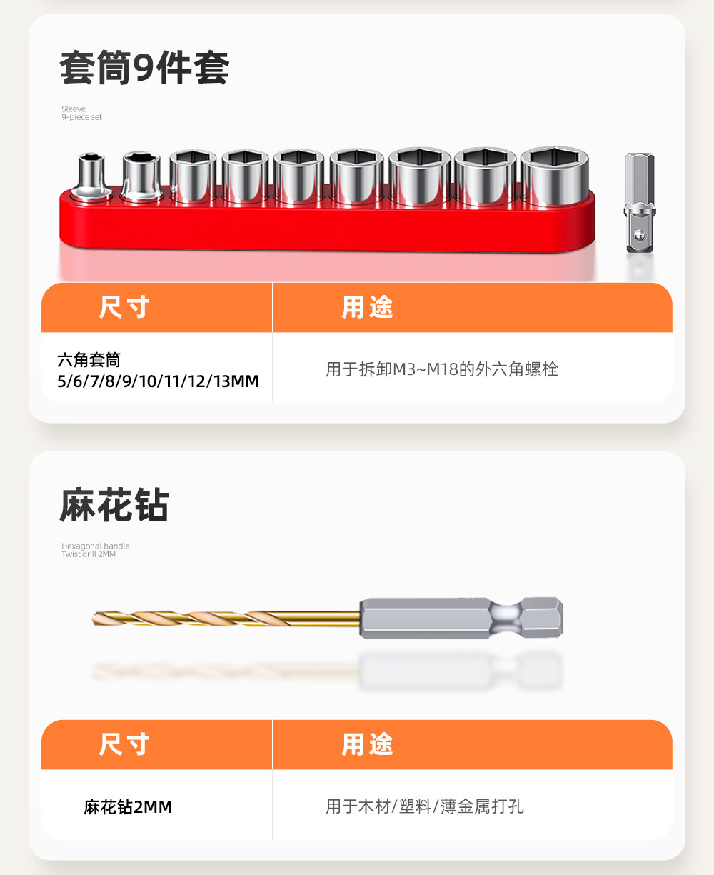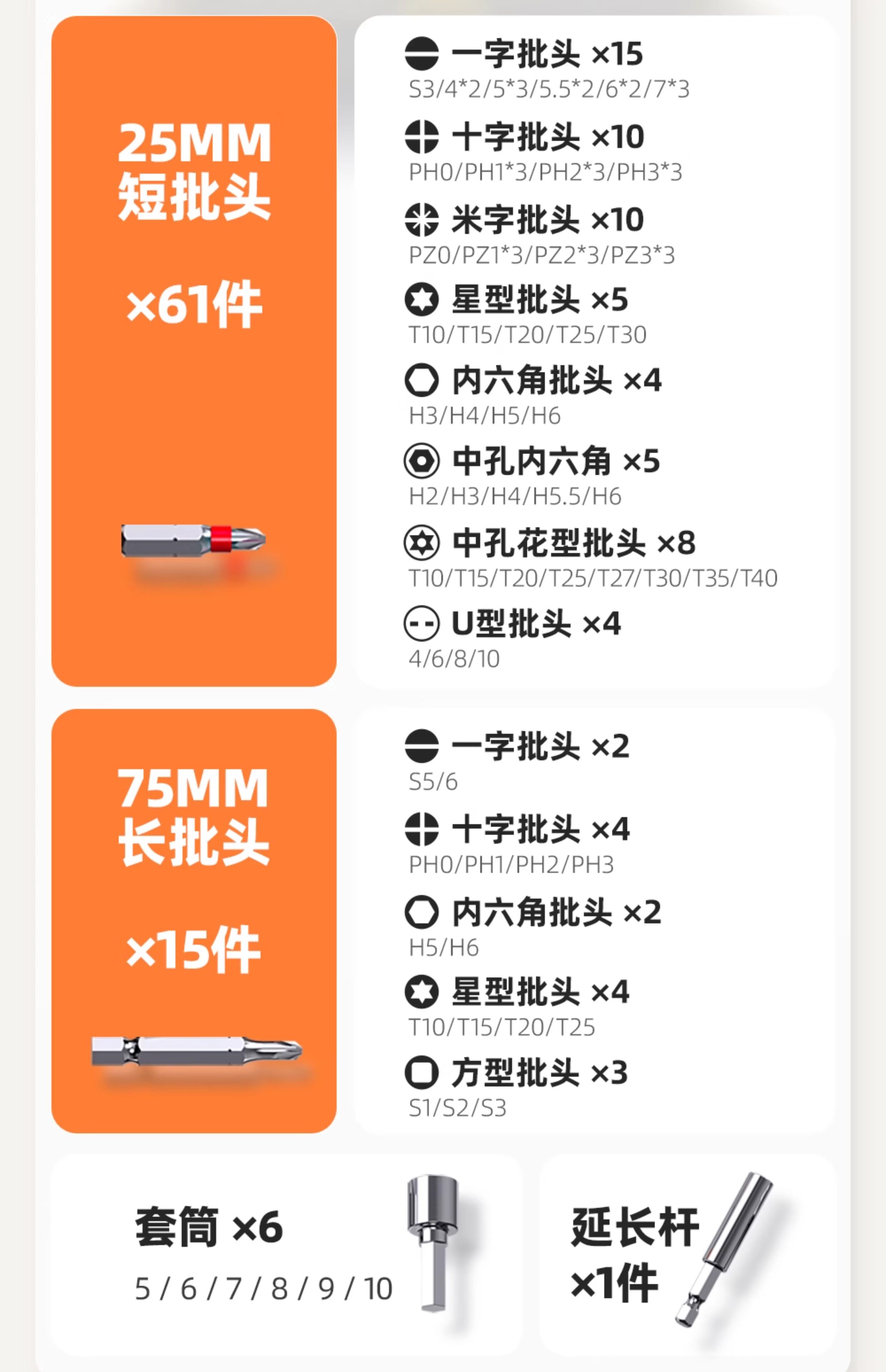 【强磁大扭力】9件套筒+16件批头+加磁器