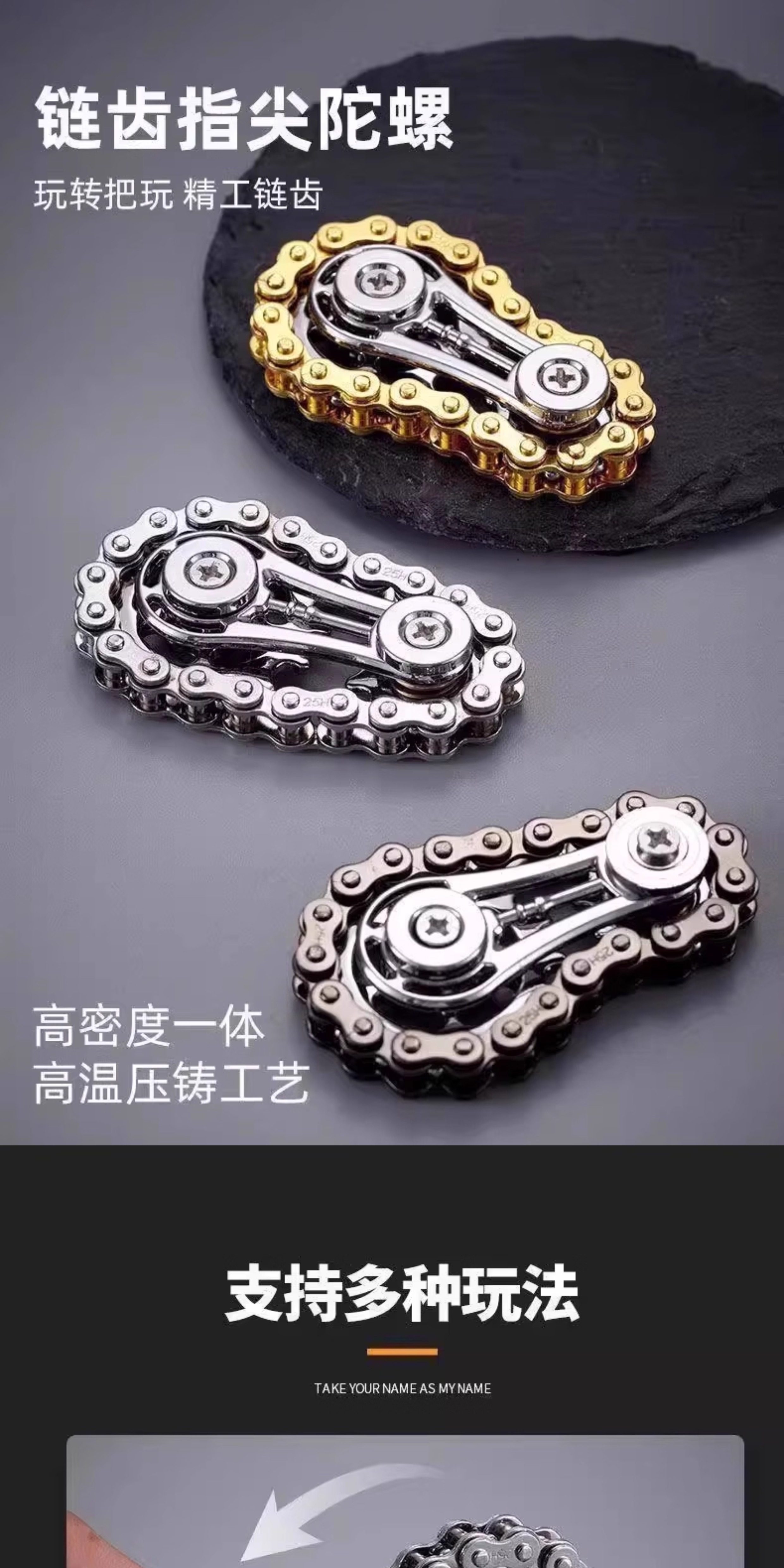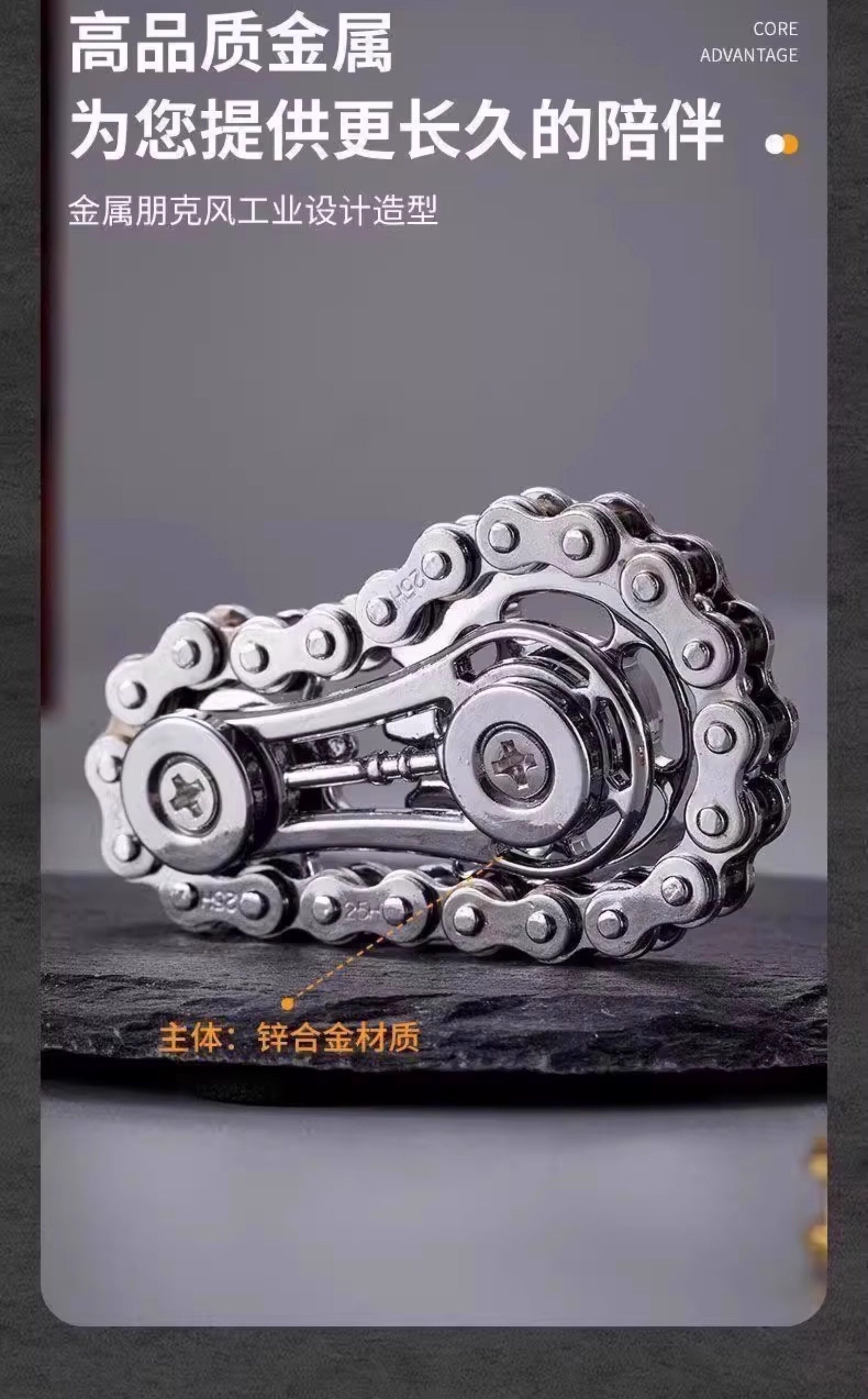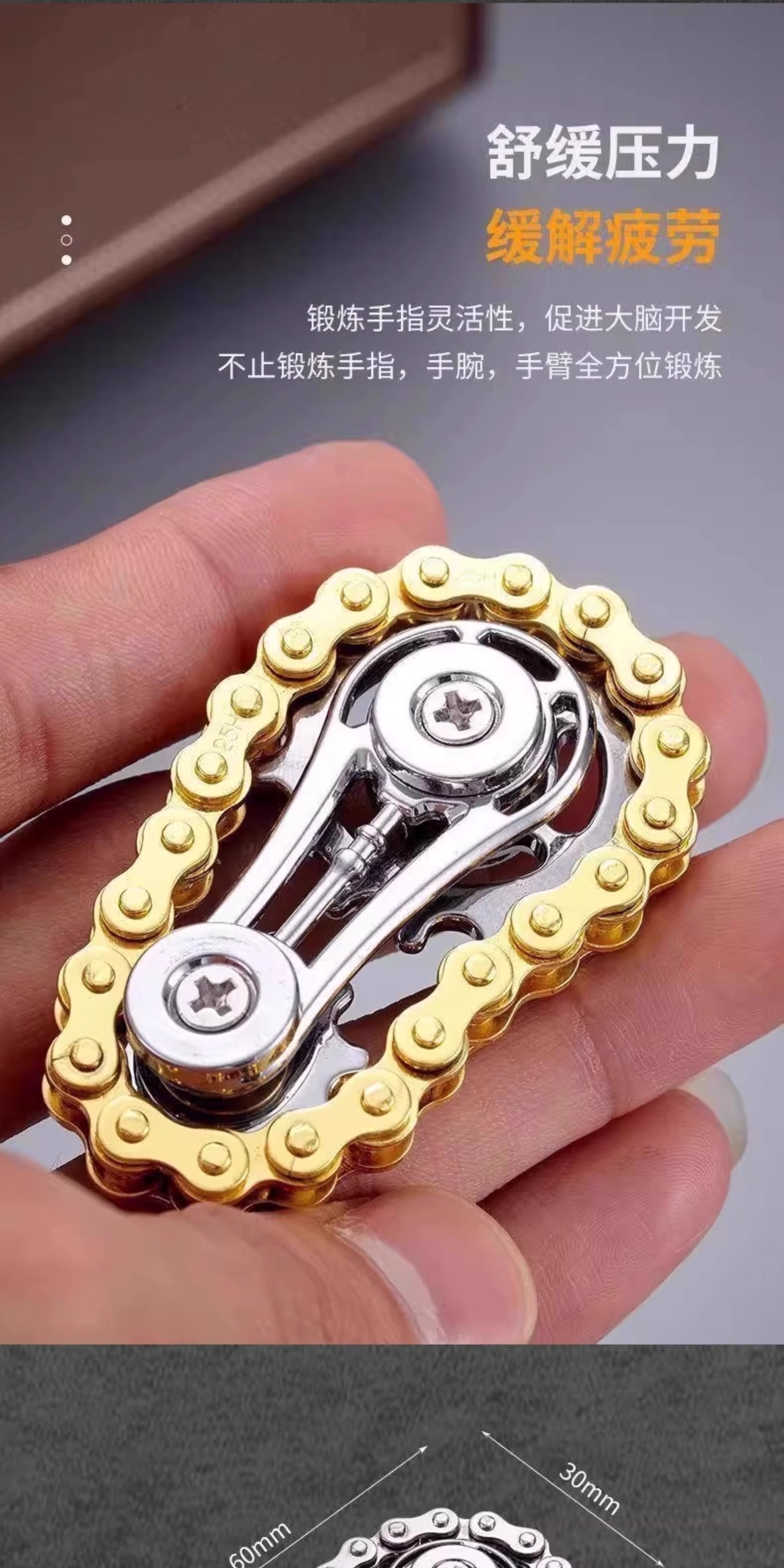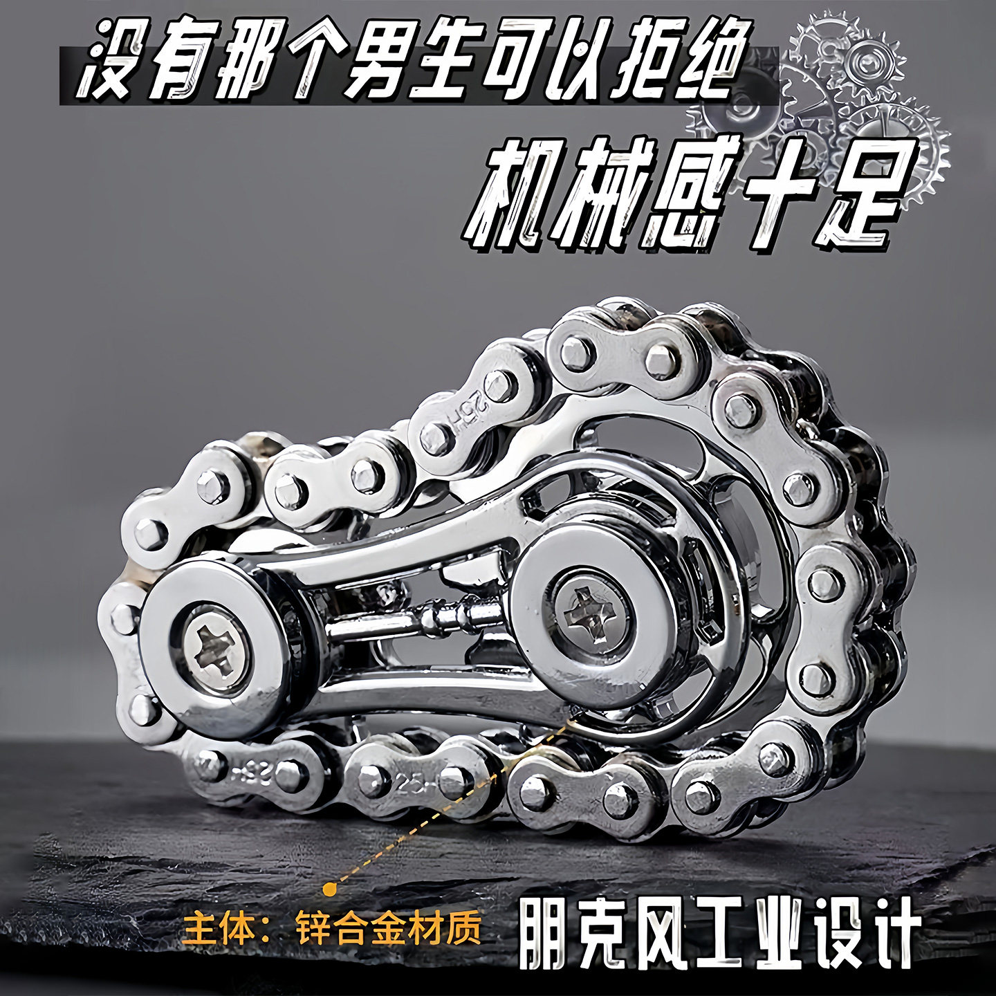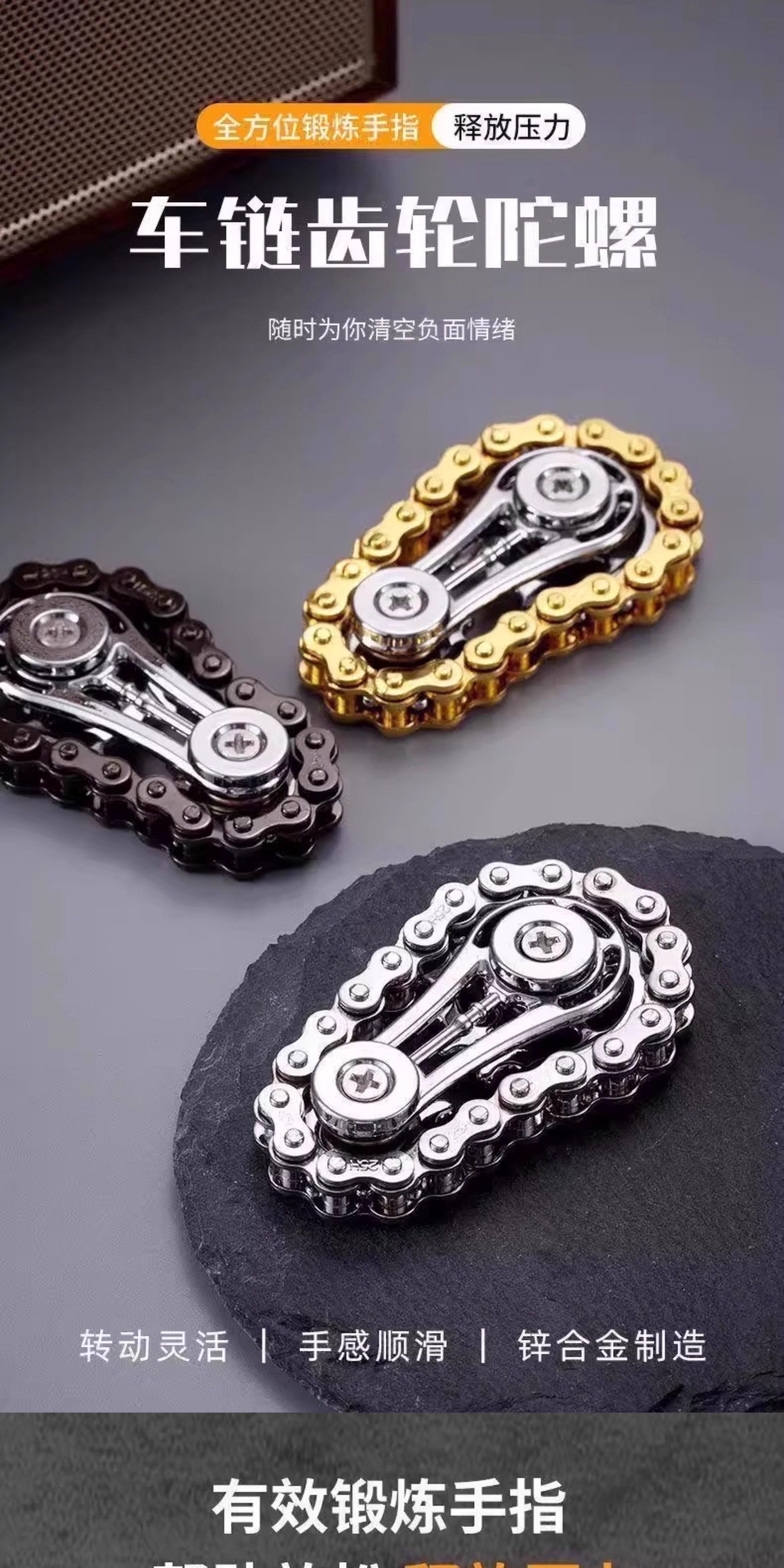 HomeProducts减压手指陀螺飞轮链条指尖陀螺解压神器齿轮联动机械金属玩具礼物