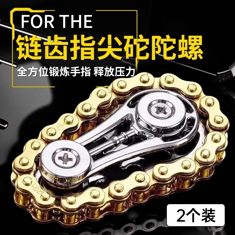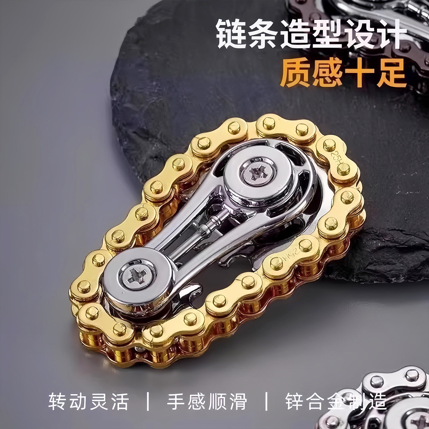 减压手指陀螺飞轮链条指尖陀螺解压神器齿轮联动机械金属玩具礼物
