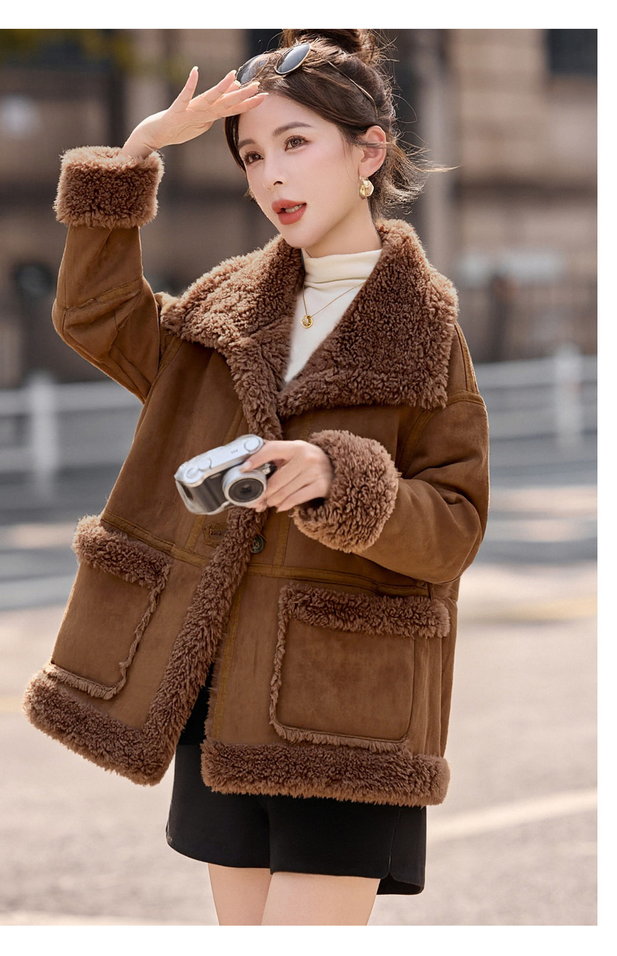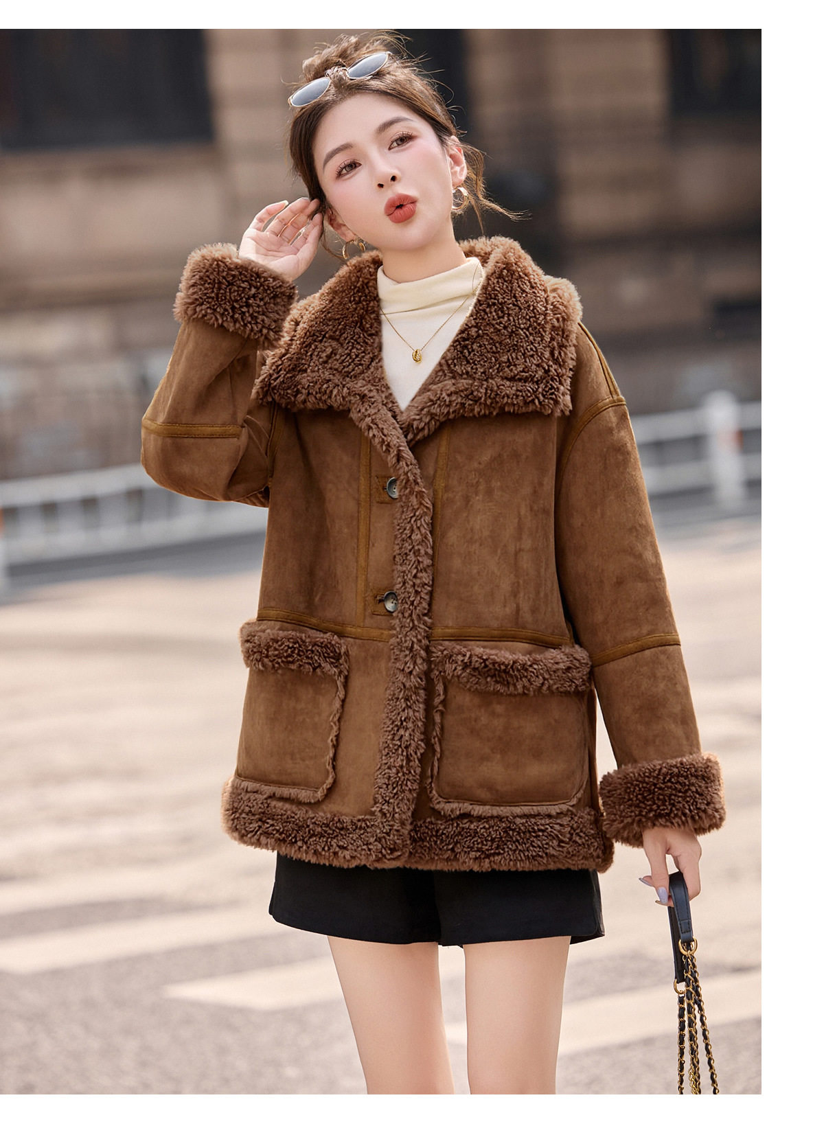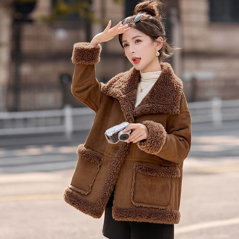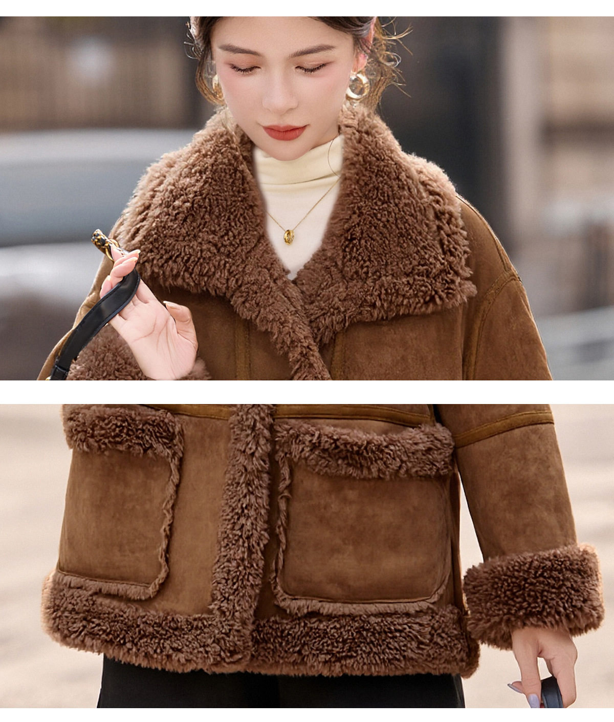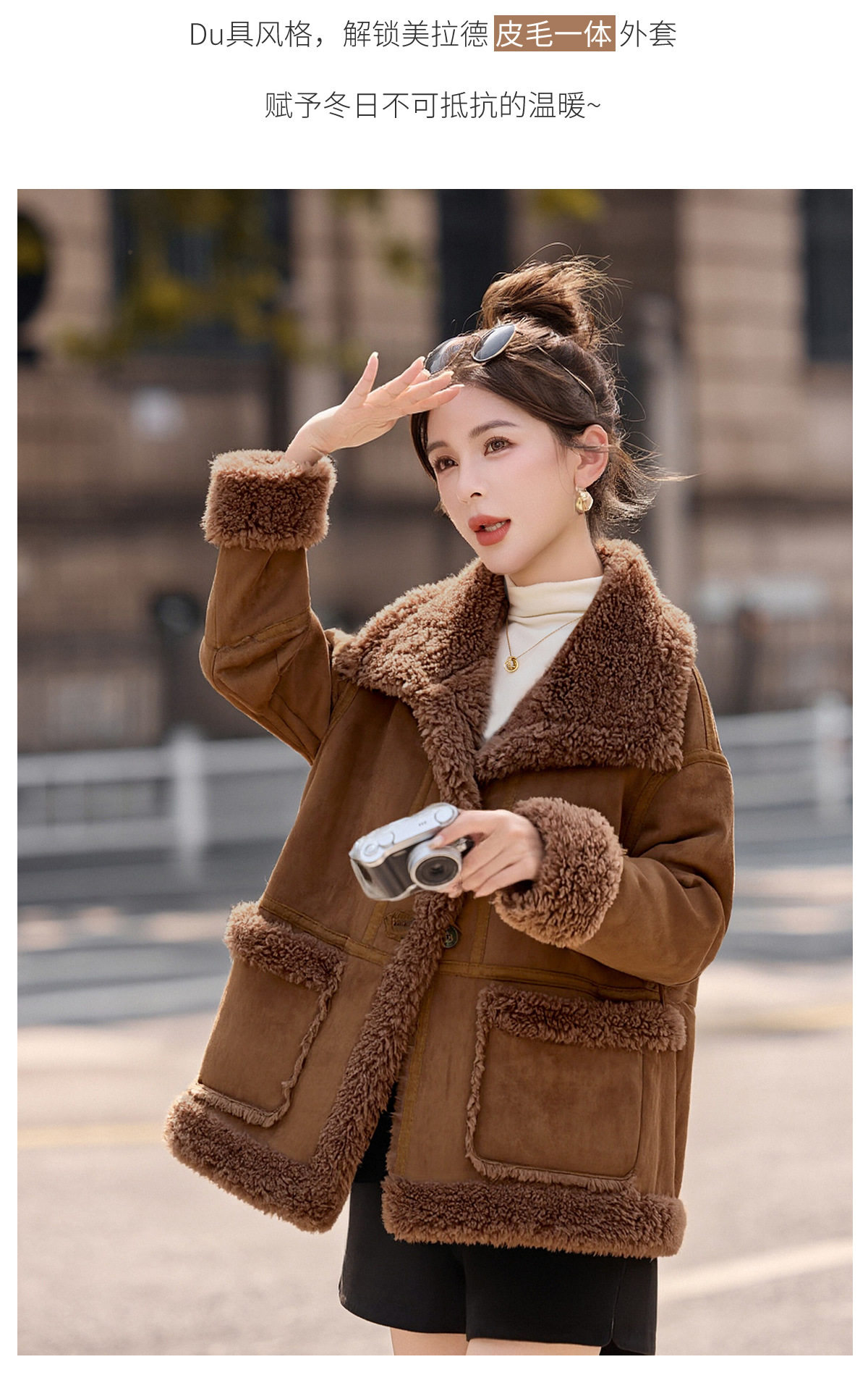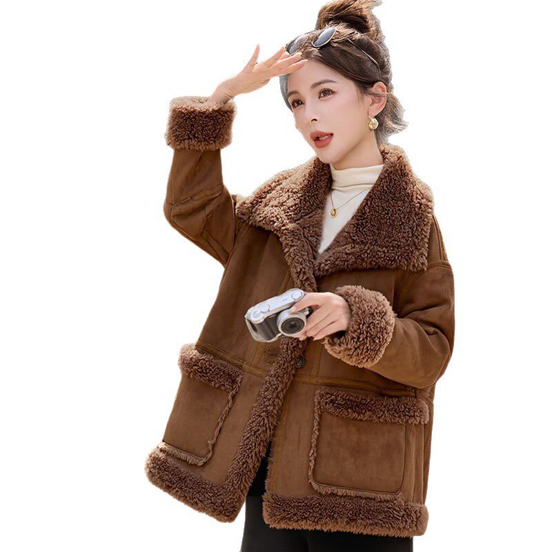 2026冬季新款女装时尚宽松显瘦穿搭加厚保暖皮毛一体外套 NS8673