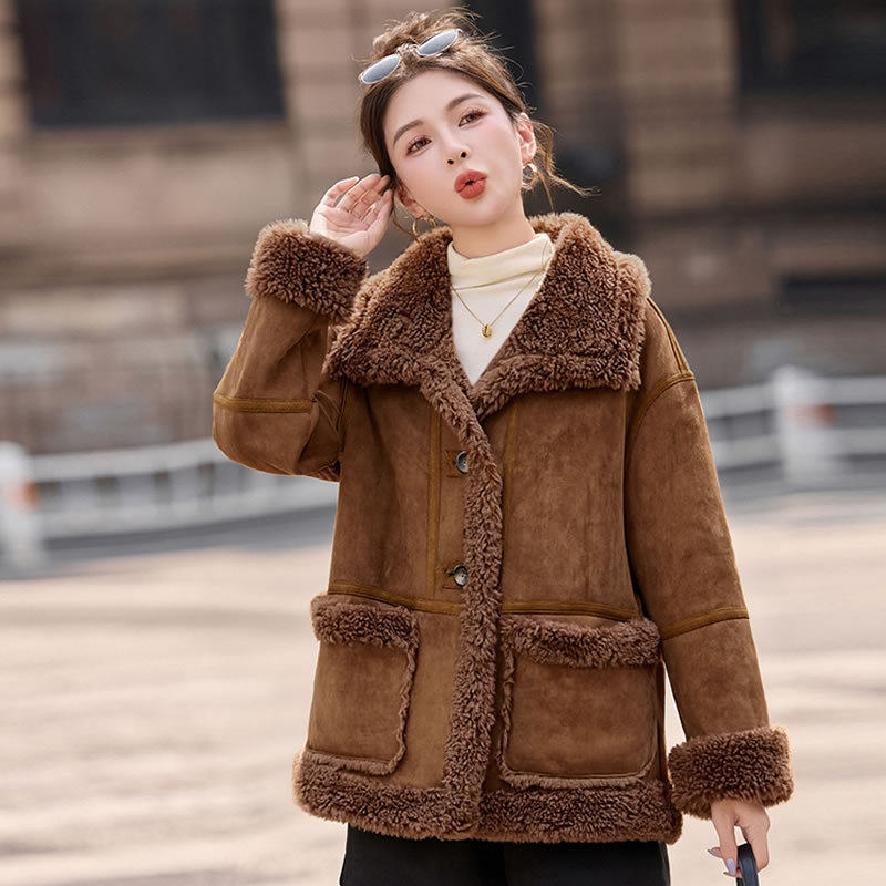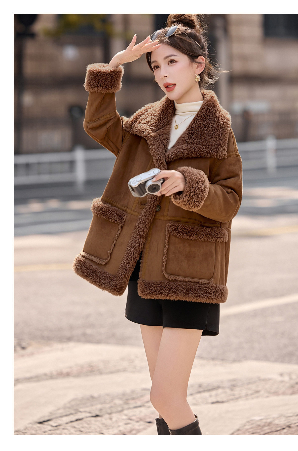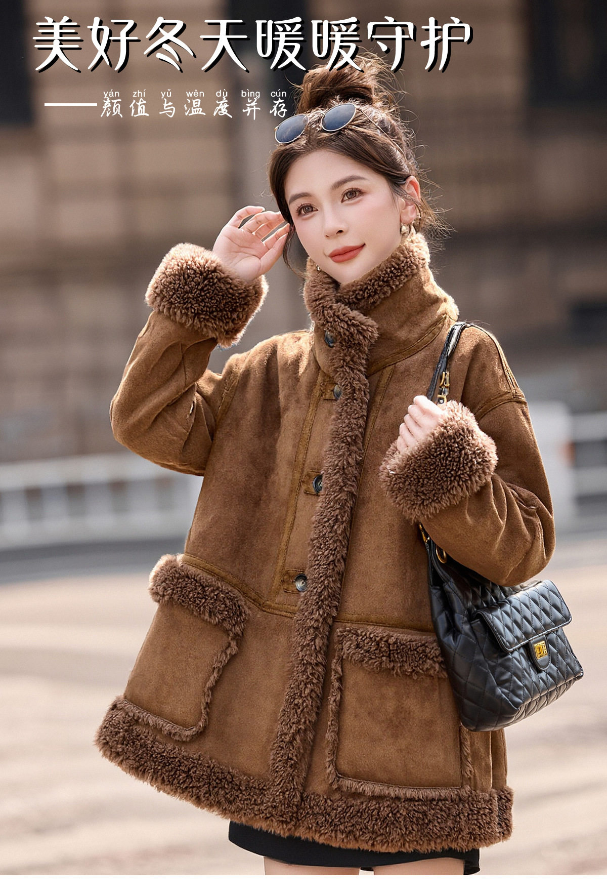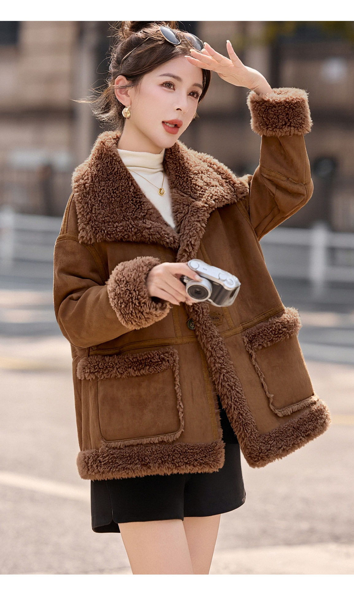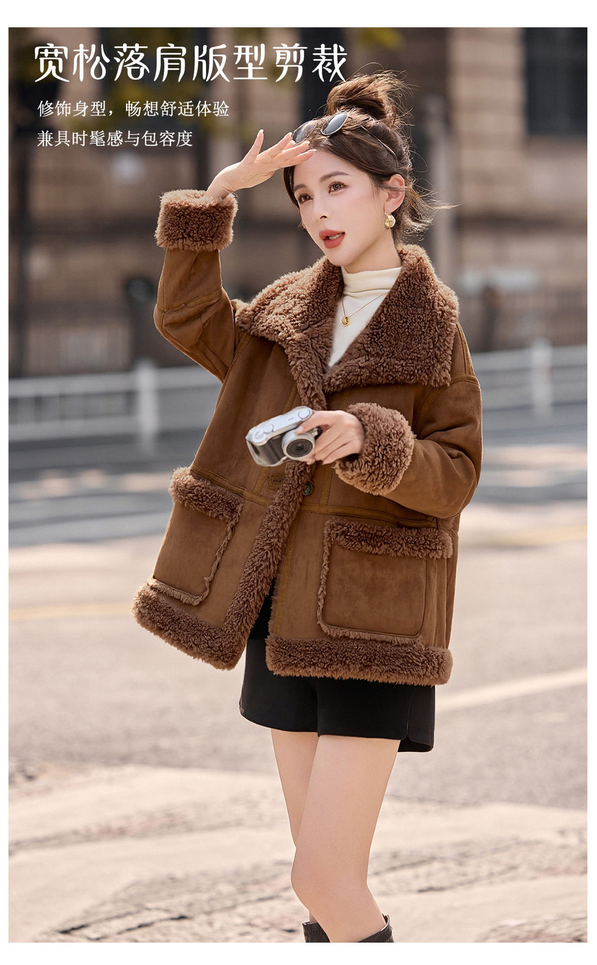 2026冬季新款女装时尚宽松显瘦穿搭加厚保暖皮毛一体外套 NS8673