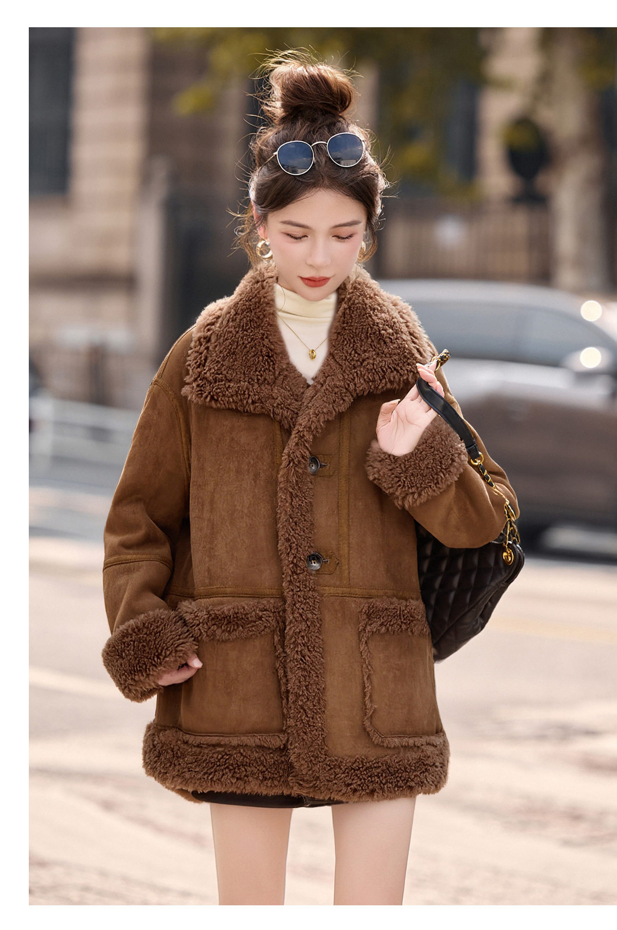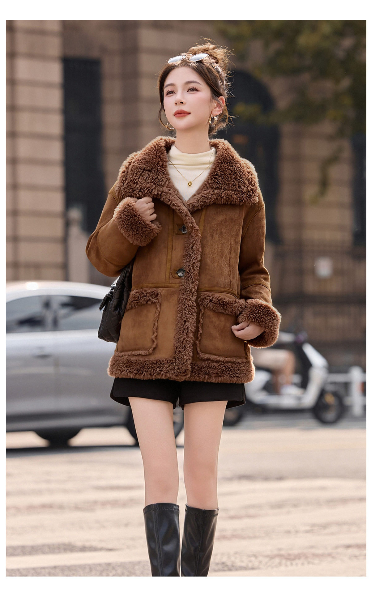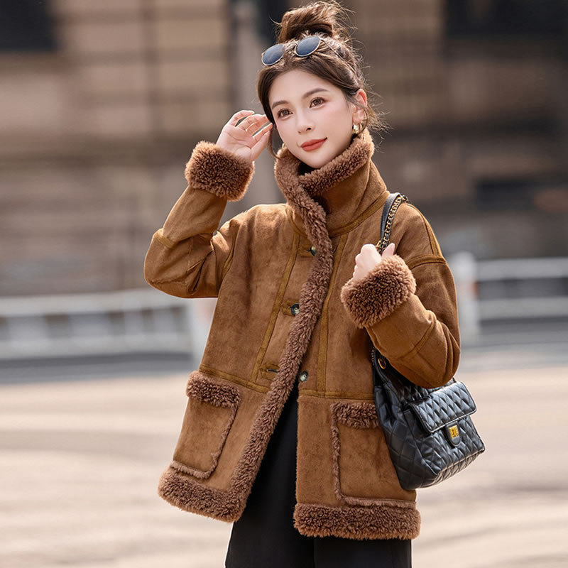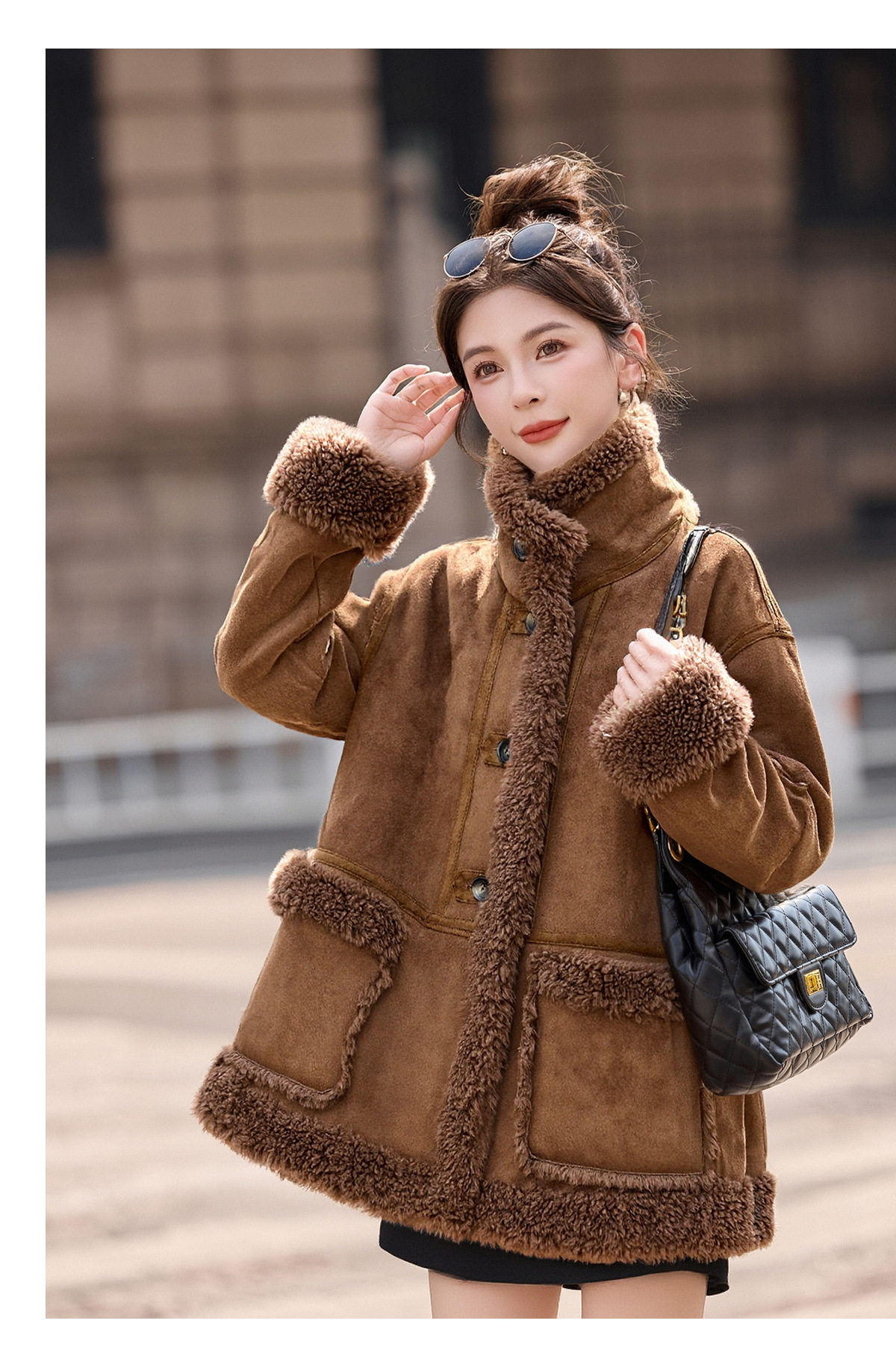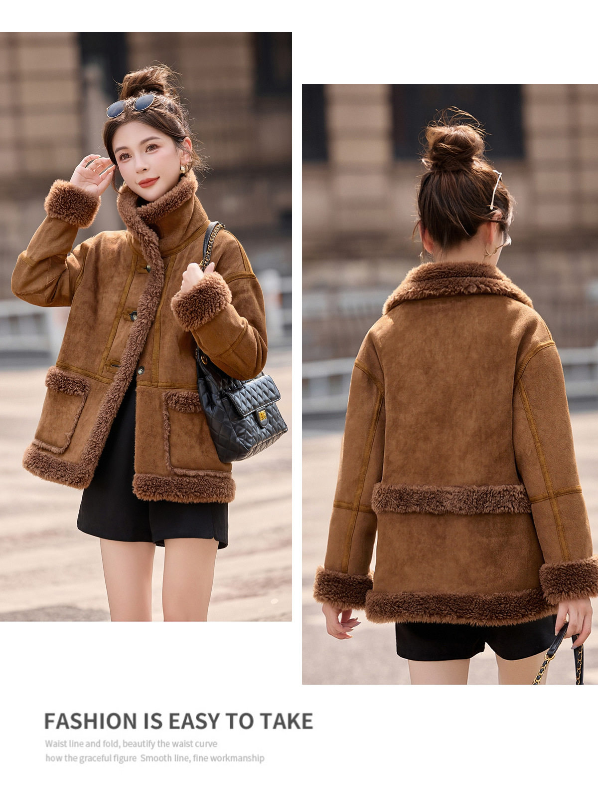 2026冬季新款女装时尚宽松显瘦穿搭加厚保暖皮毛一体外套 NS8673