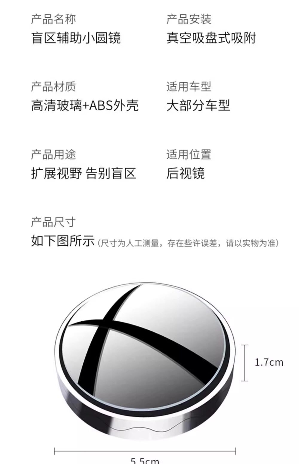 倒车小圆镜超清360度广角超清带车标吸盘式盲点镜汽车盲区辅助镜