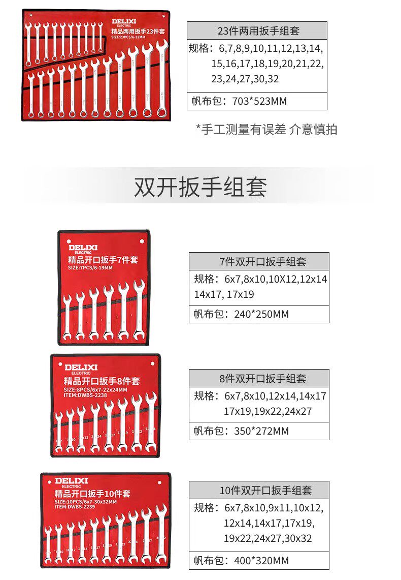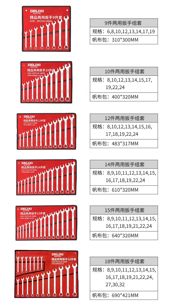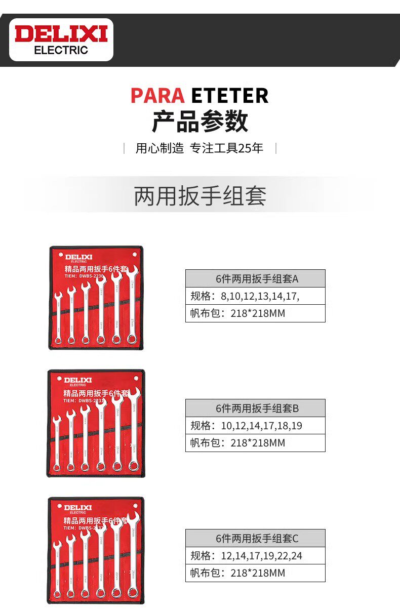 德力西电气扳手套装工具大全开口梅花两用扳手工具套装工业级整套