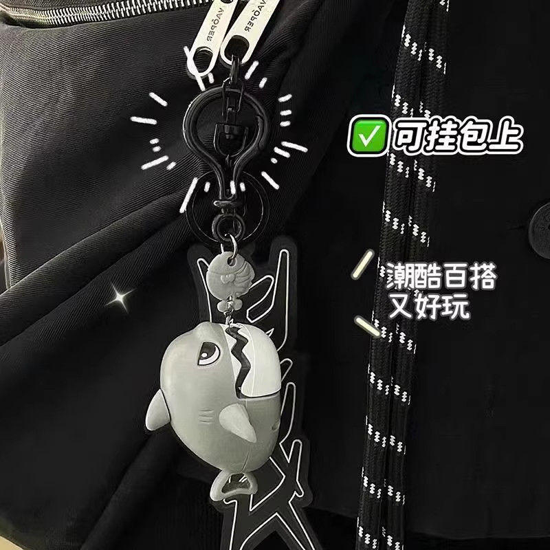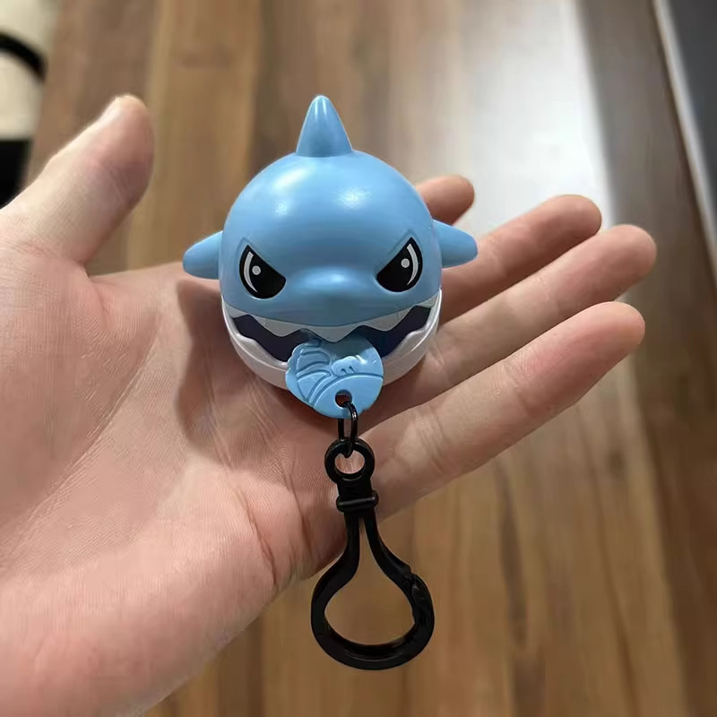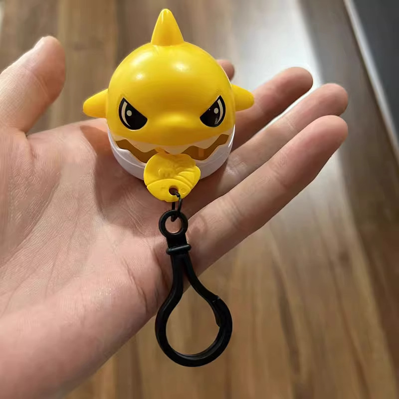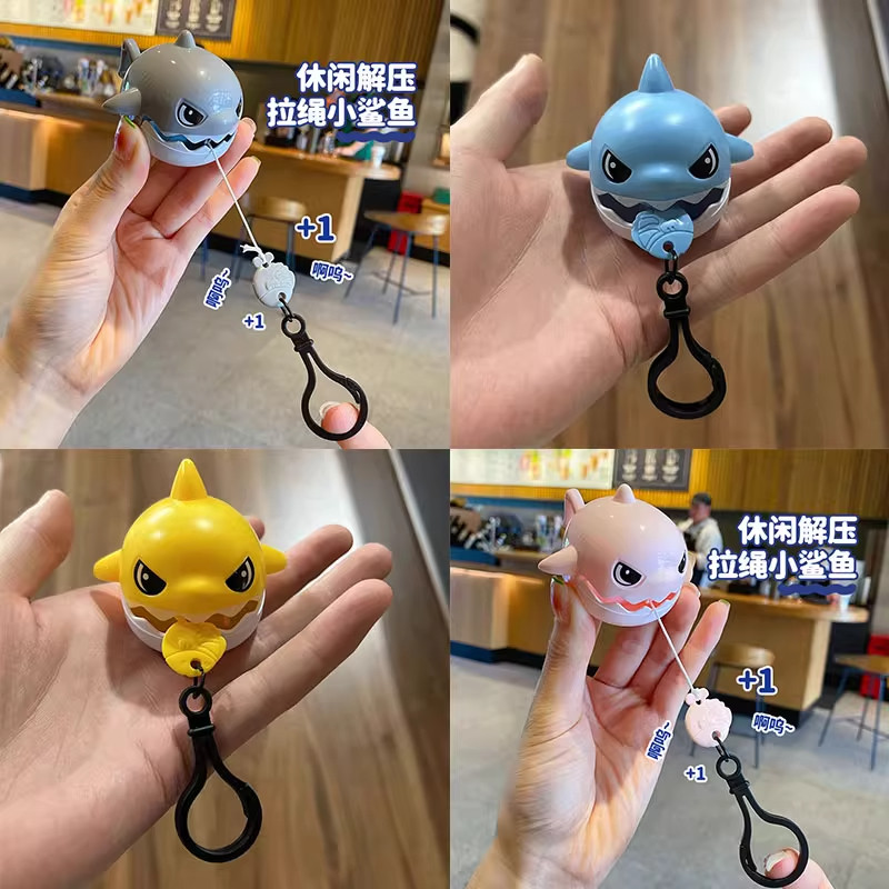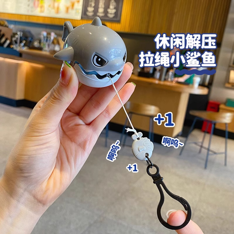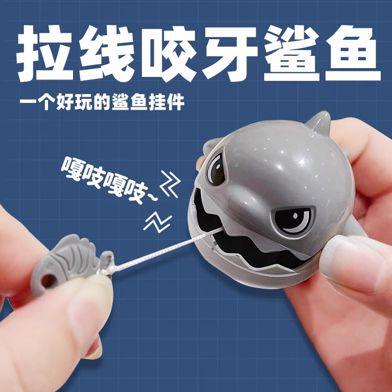 拉线咬牙鲨鱼钥匙扣可拉绳解压神器创意书包包小鲨鱼挂件儿童玩具