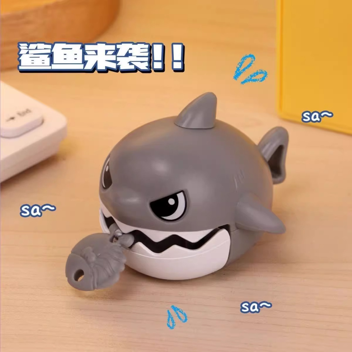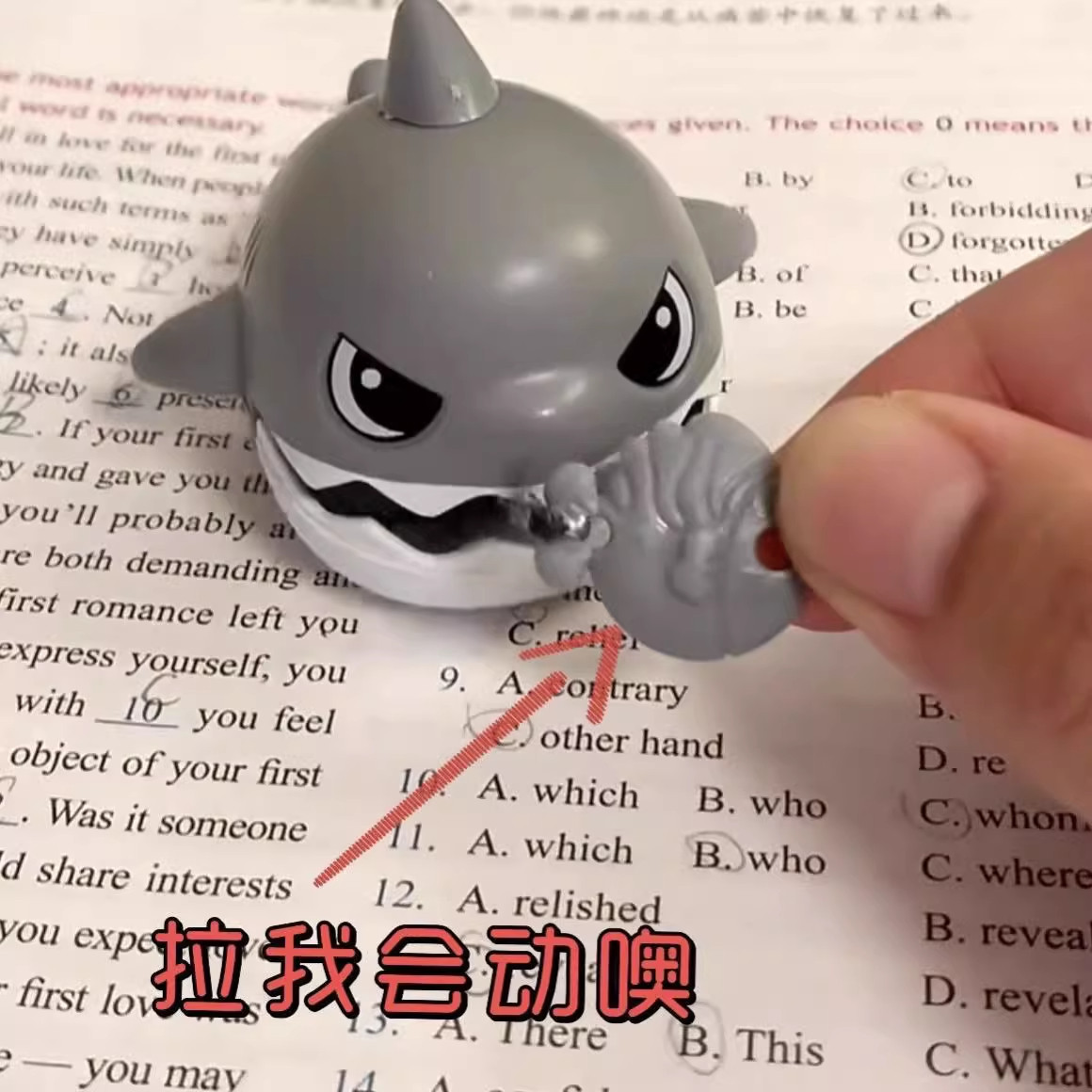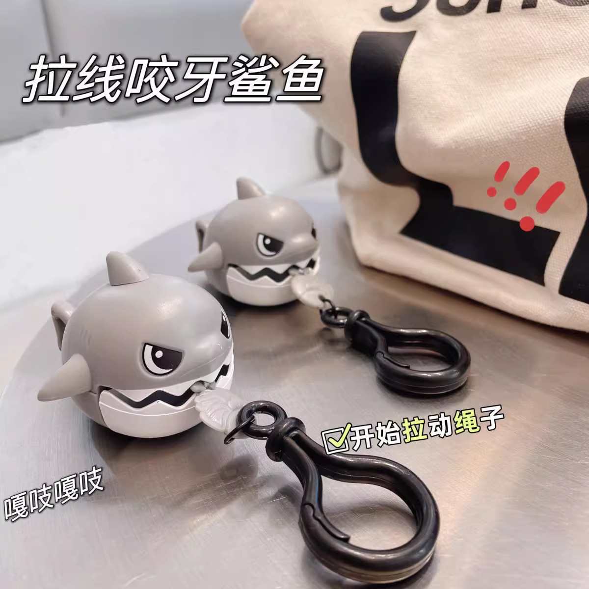 拉线咬牙鲨鱼钥匙扣可拉绳解压神器创意书包包小鲨鱼挂件儿童玩具