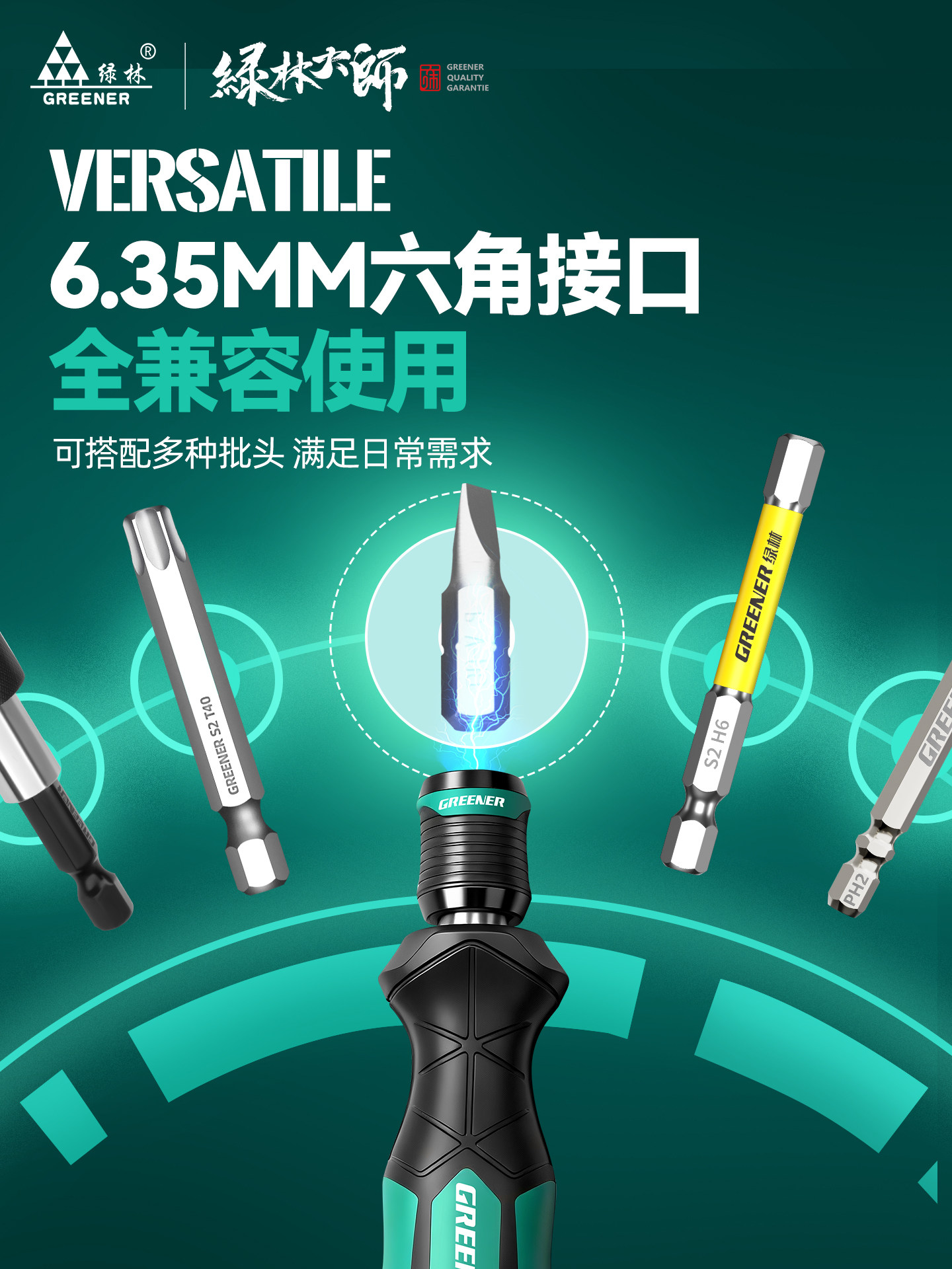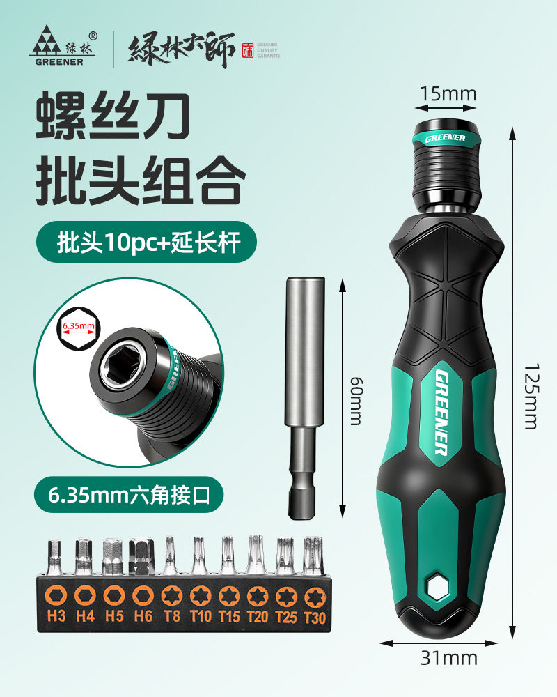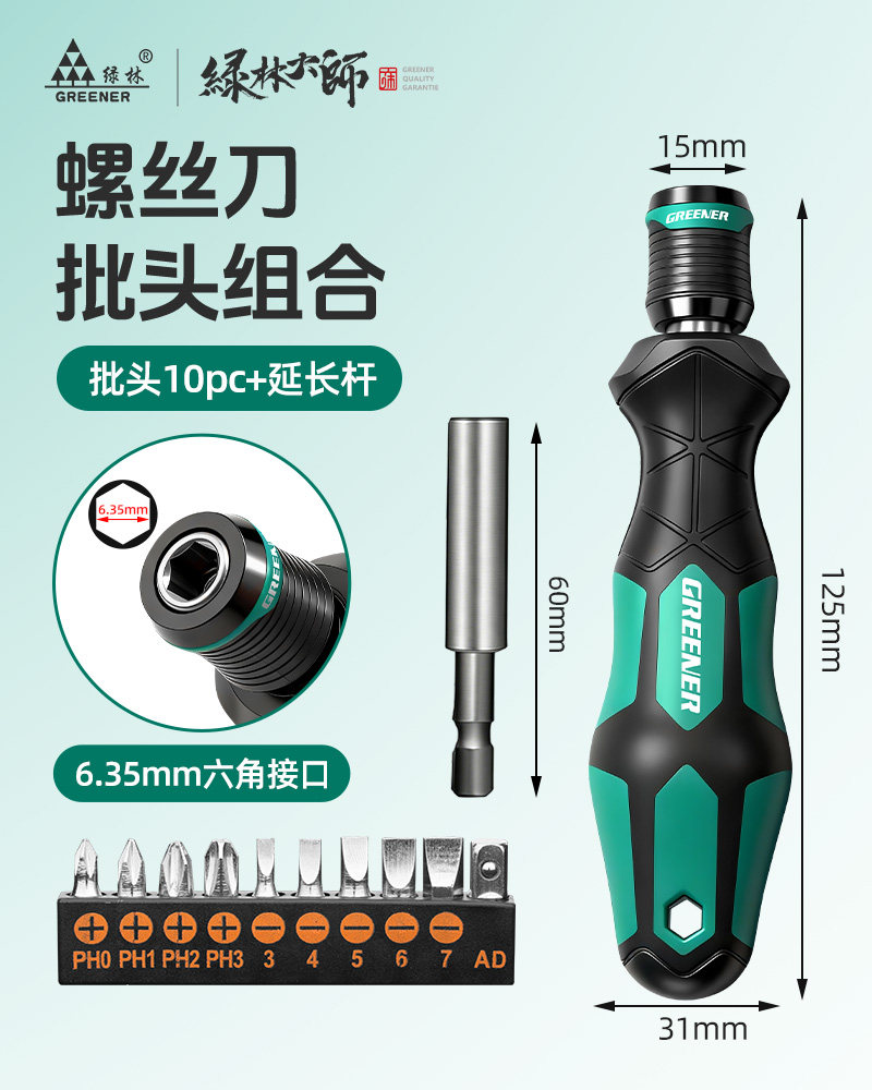 绿林大师螺丝刀手柄强磁自锁十字批头多功能高硬度一字螺丝批套装