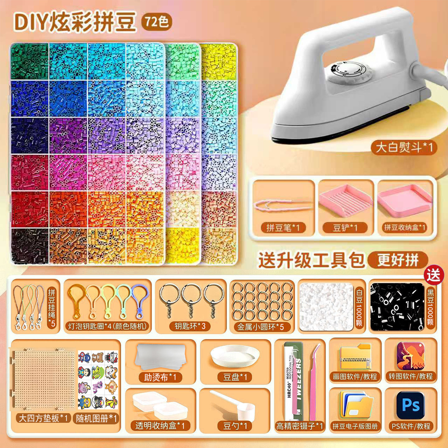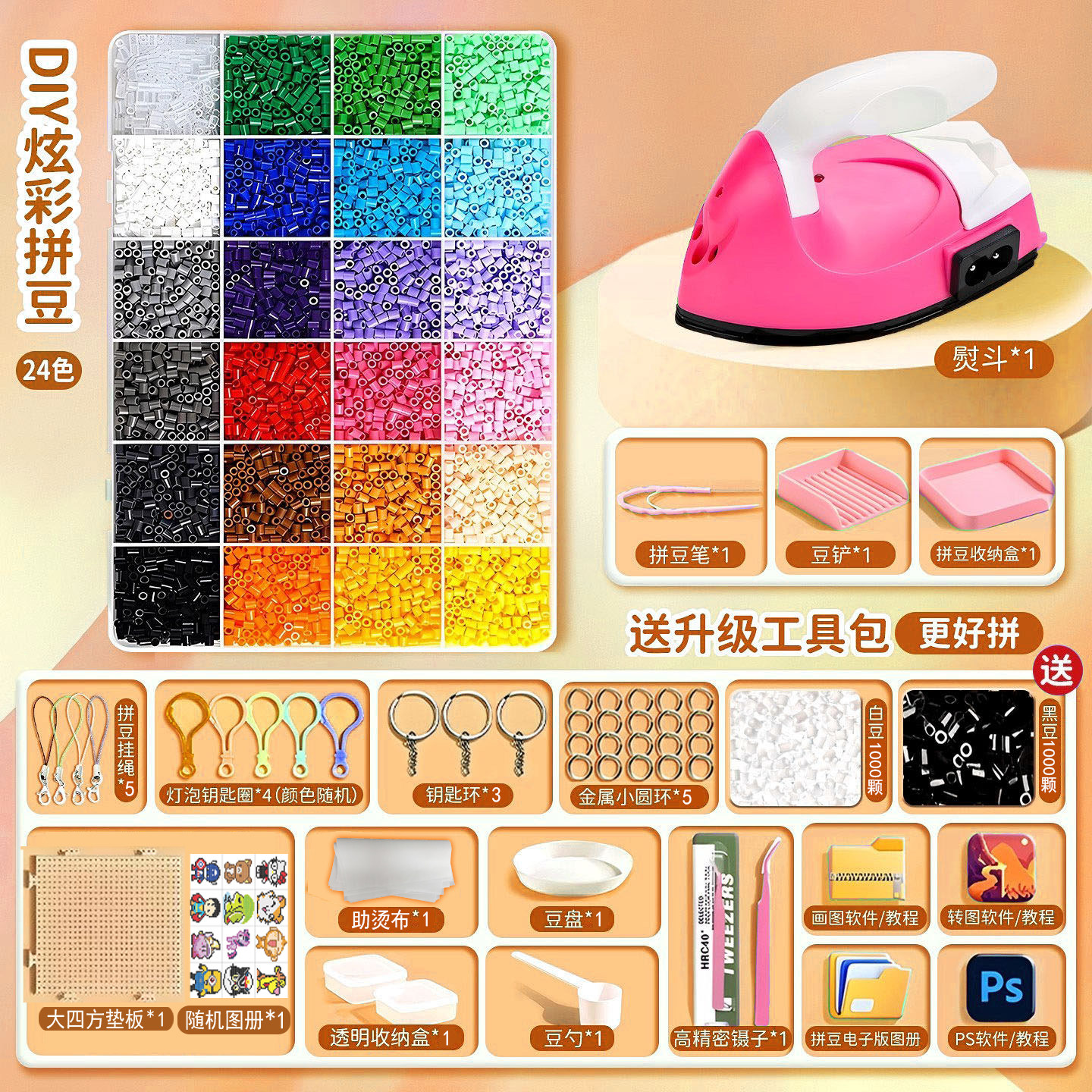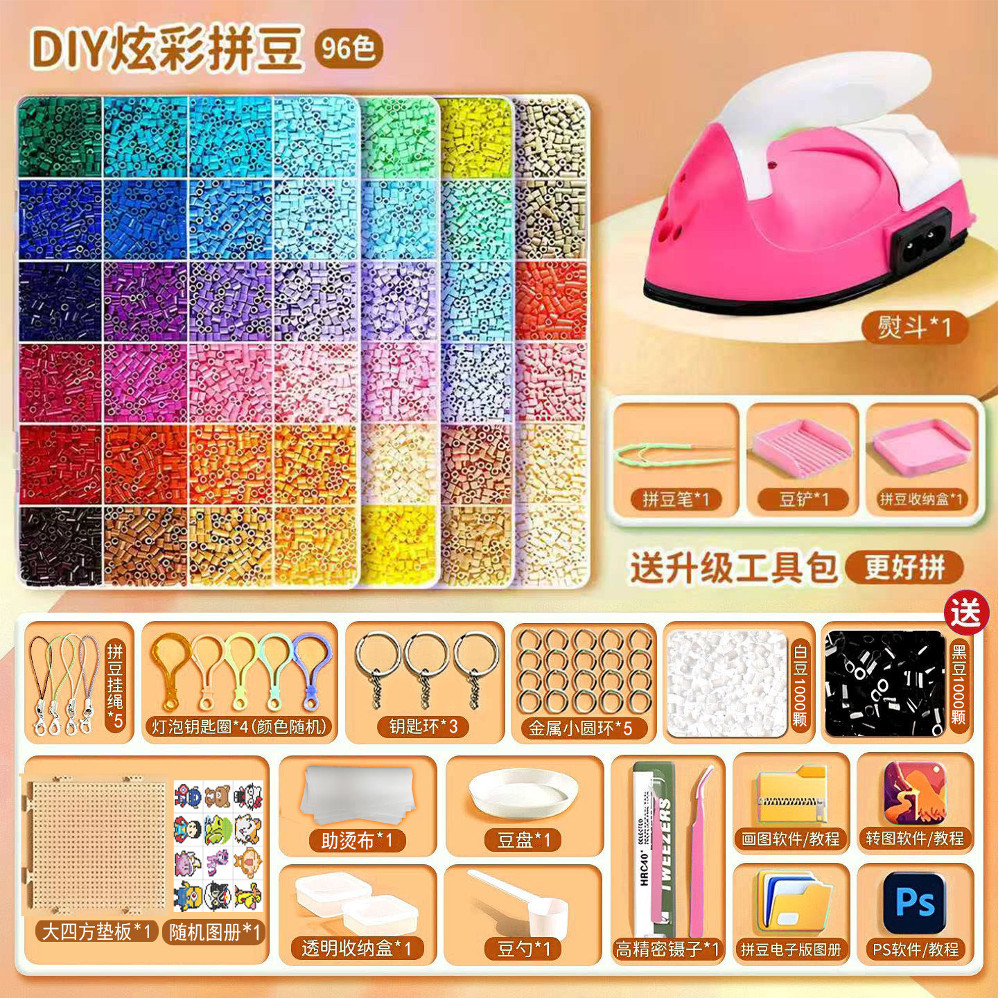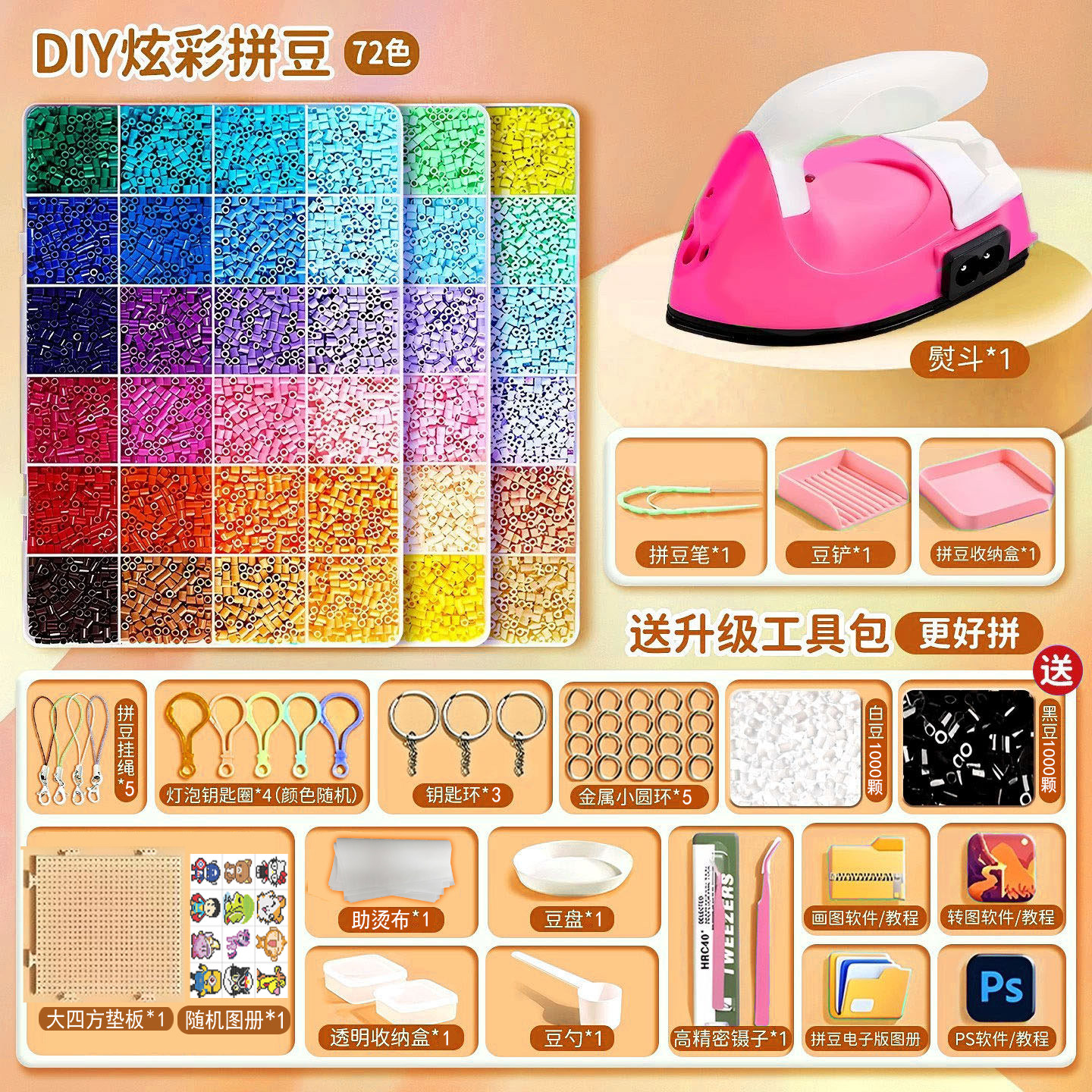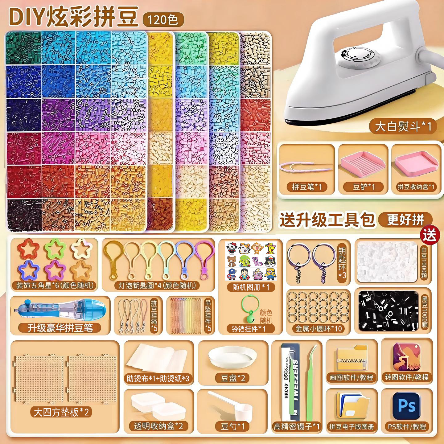 【德国精工】【超好用⭐熨斗+升级拼豆笔套装】120色⭐工具包+赠送黑白豆4000颗