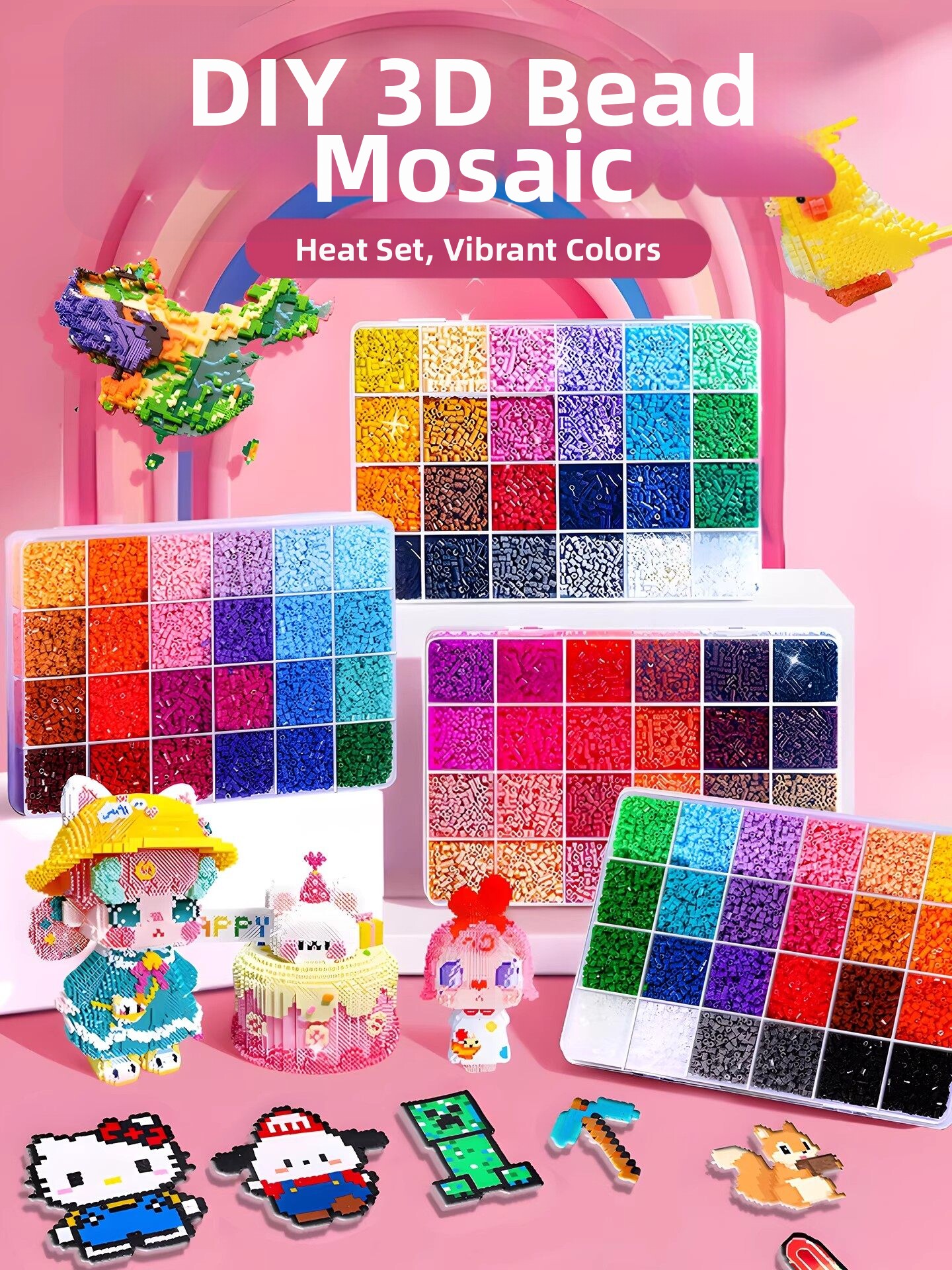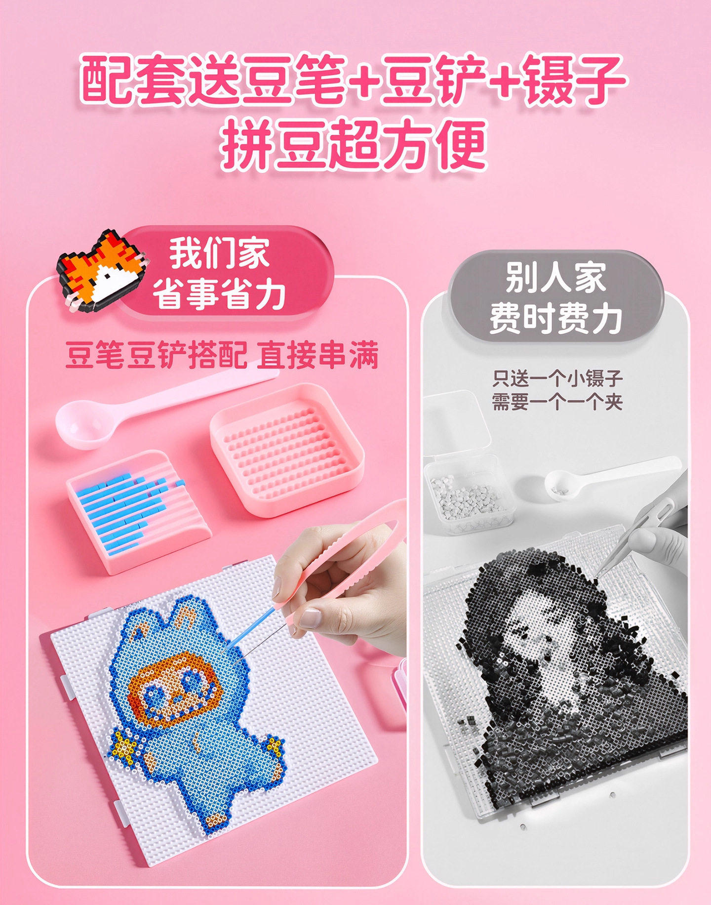 拼豆豆工具全套材料包手工diy融合豆套装熨斗mard补充包解压玩具
