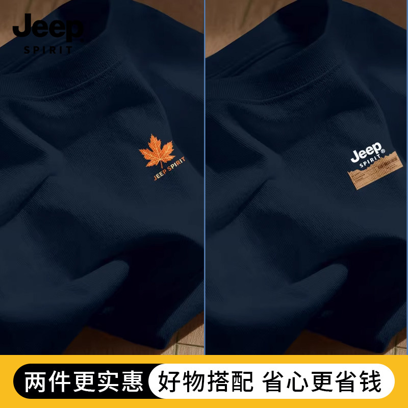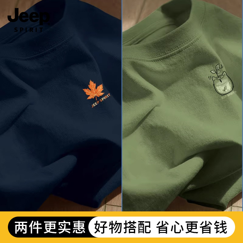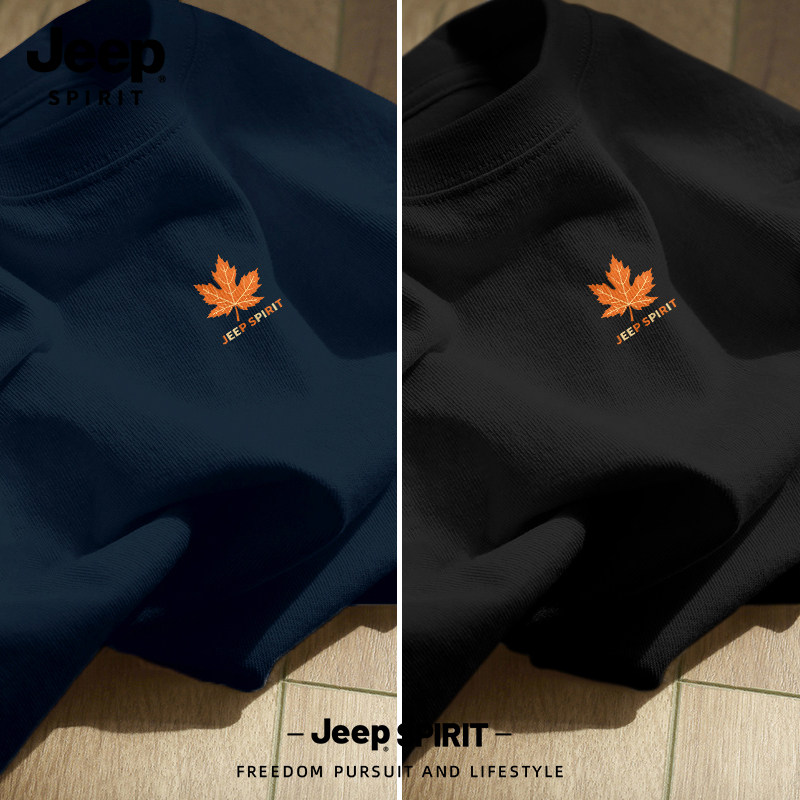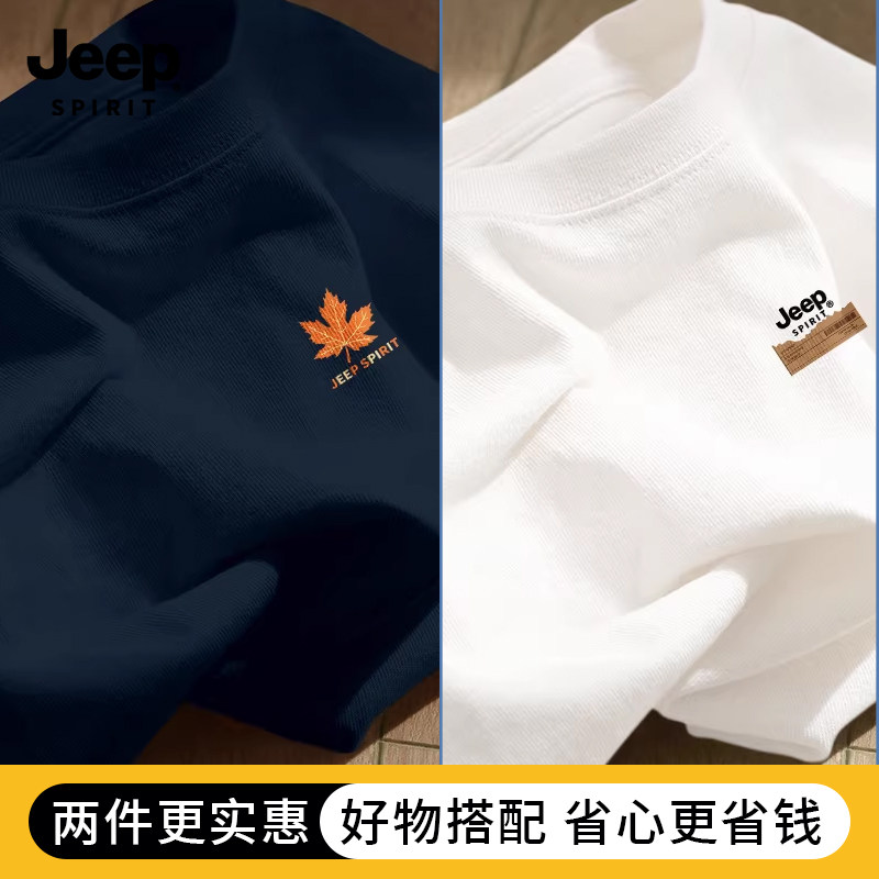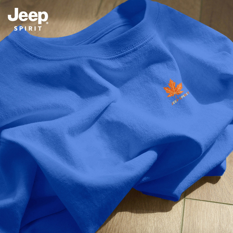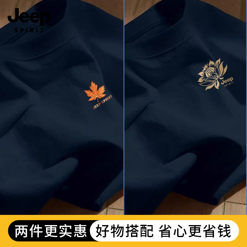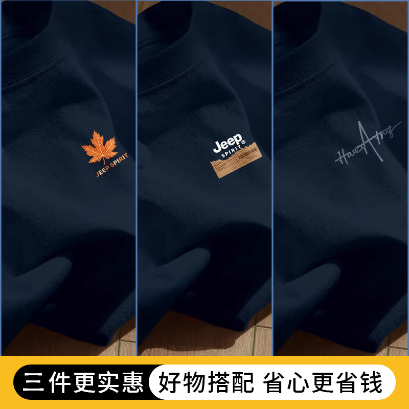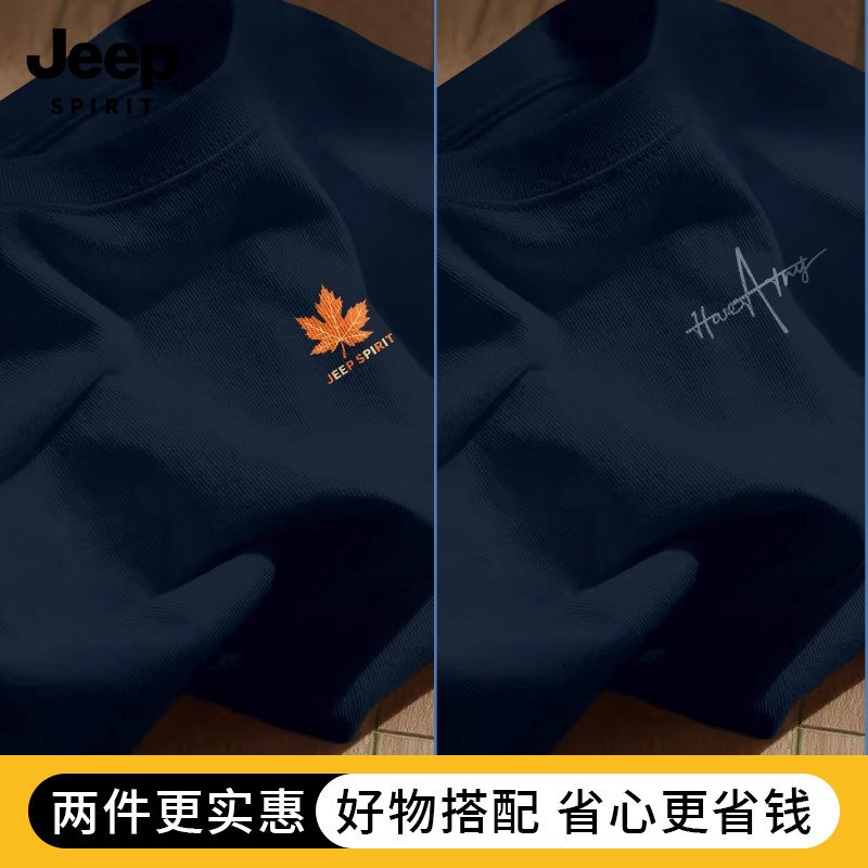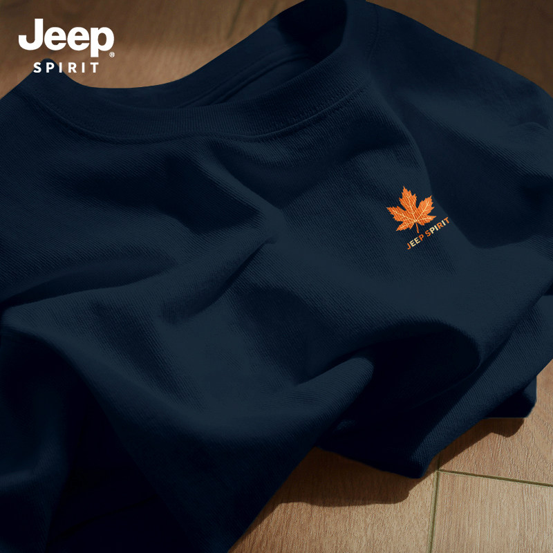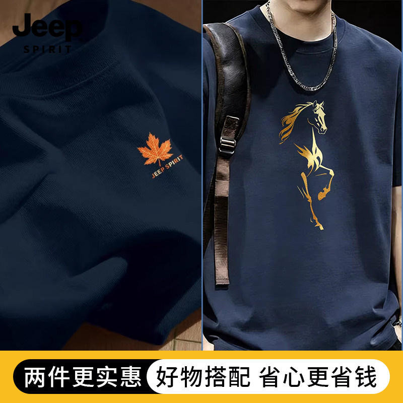 Jeep吉普重磅纯棉男士短袖t恤男2026新款夏季藏青圆领半袖上衣服