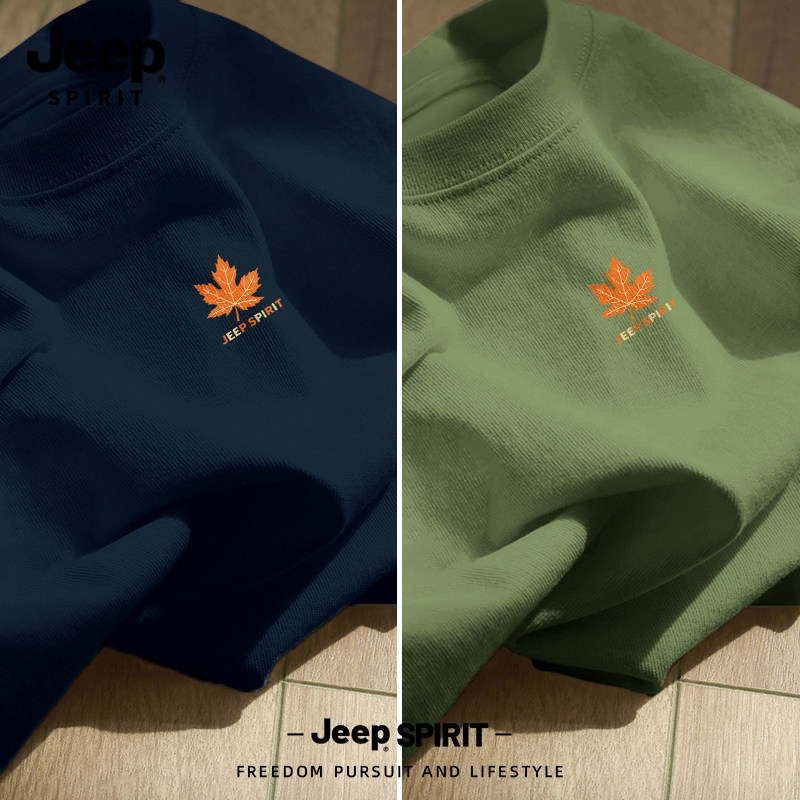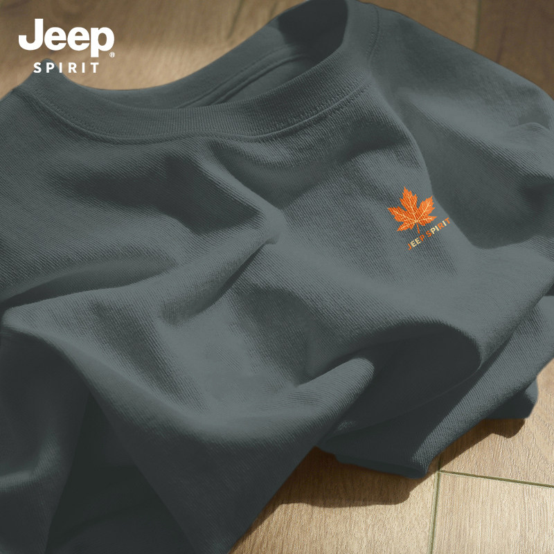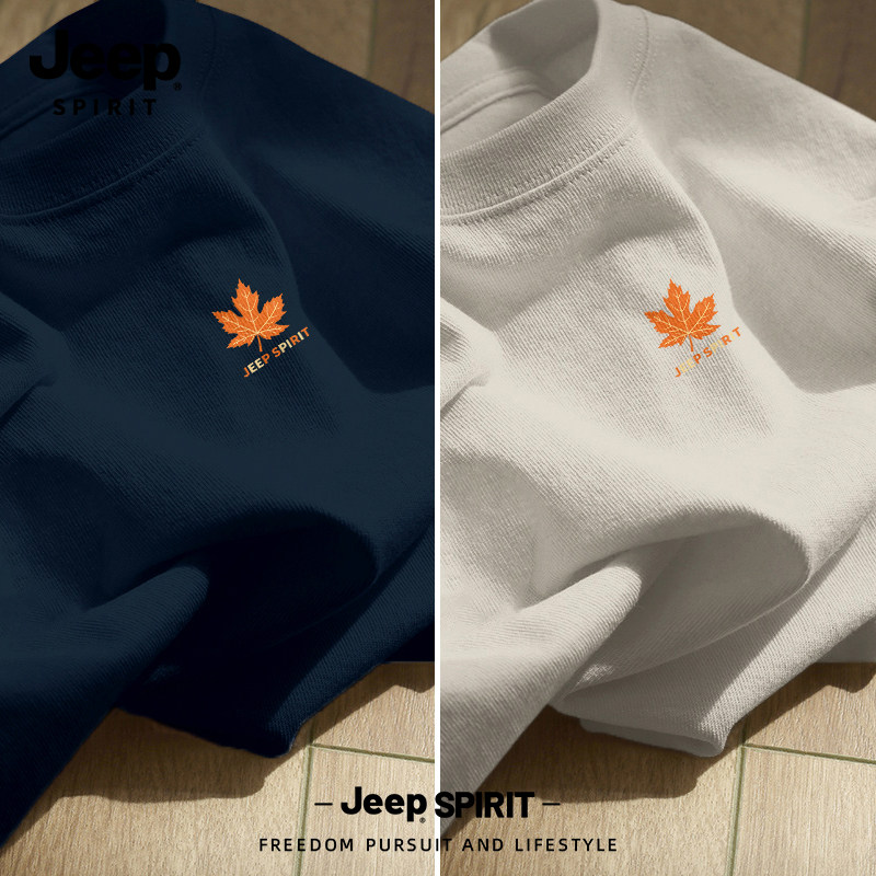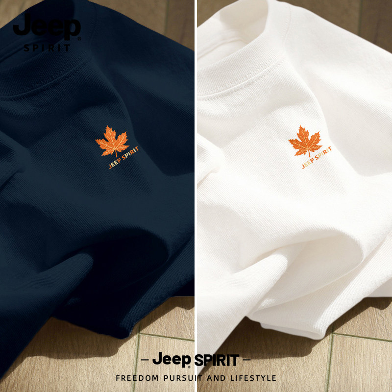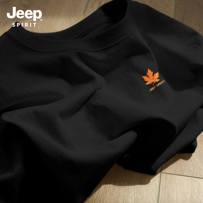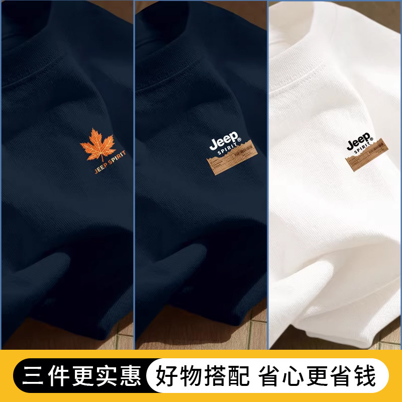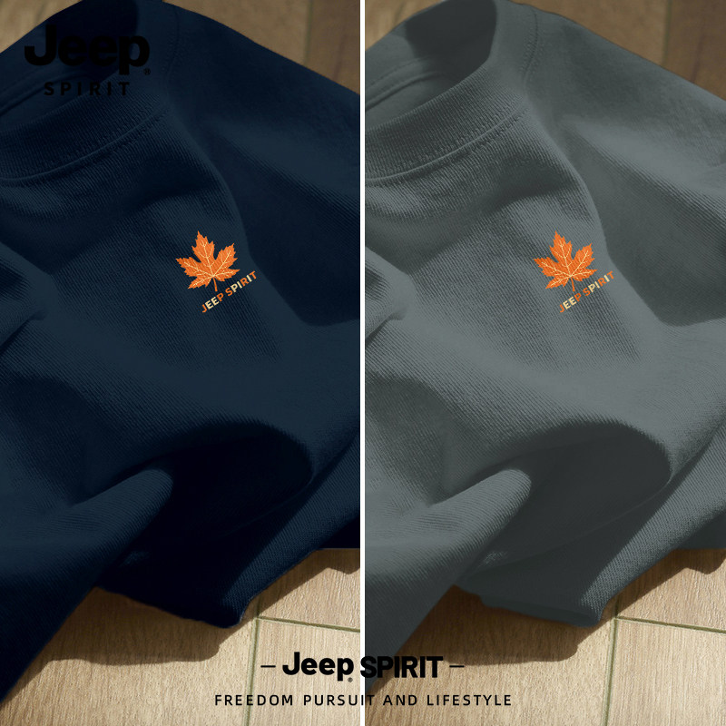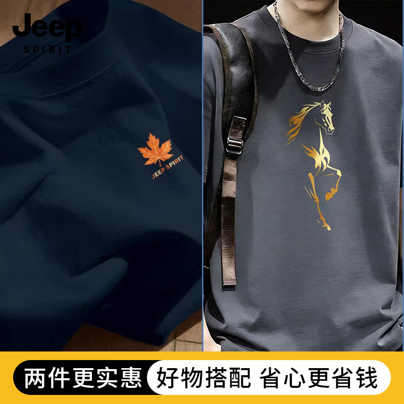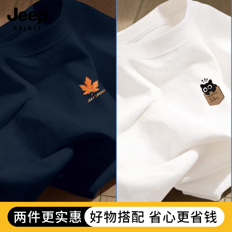 Jeep吉普重磅纯棉男士短袖t恤男2026新款夏季藏青圆领半袖上衣服