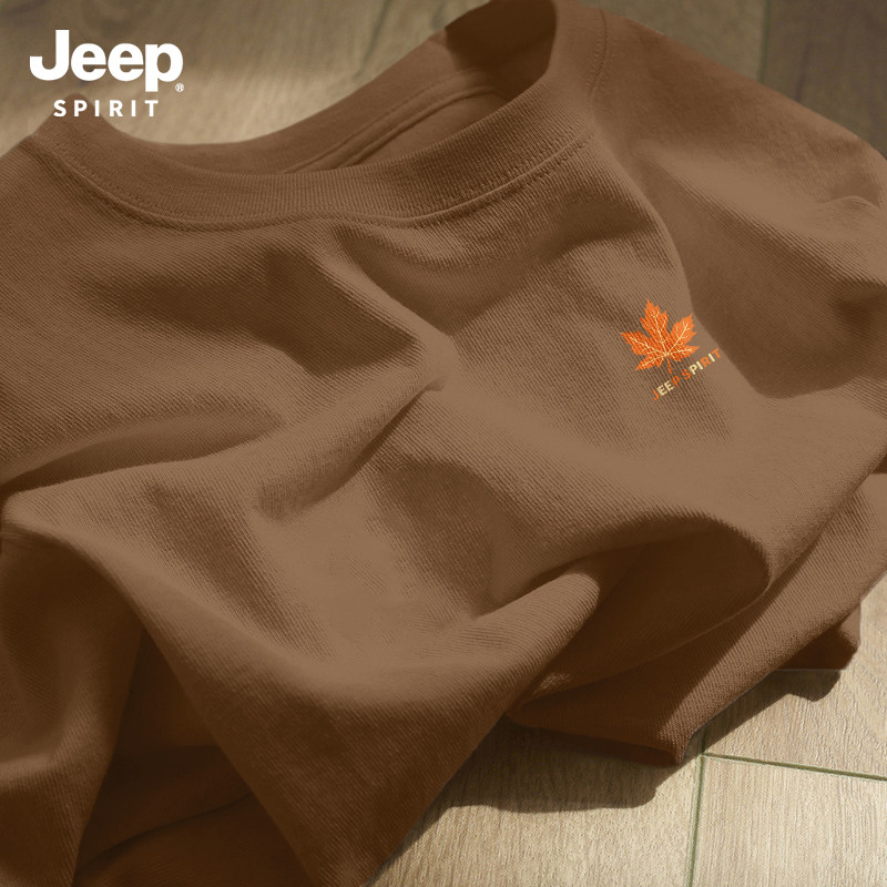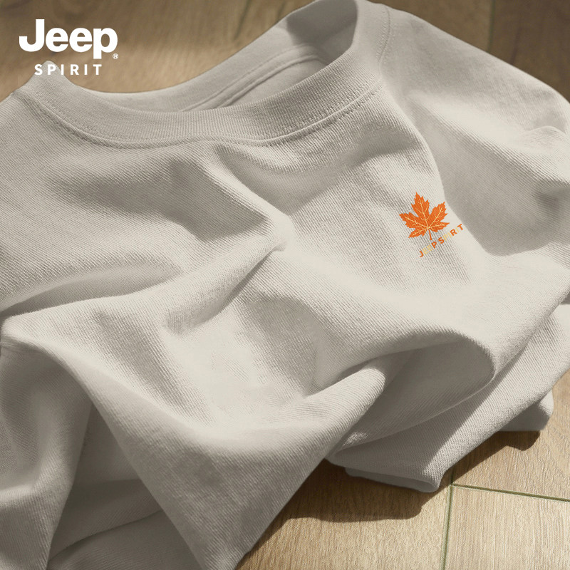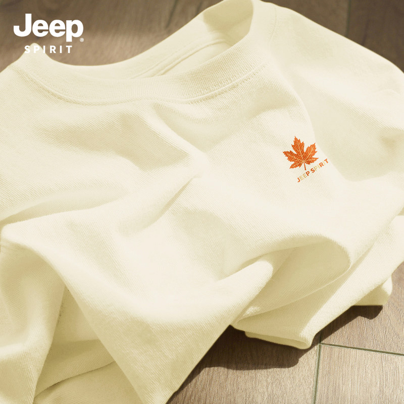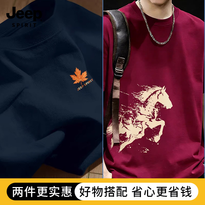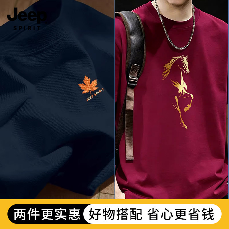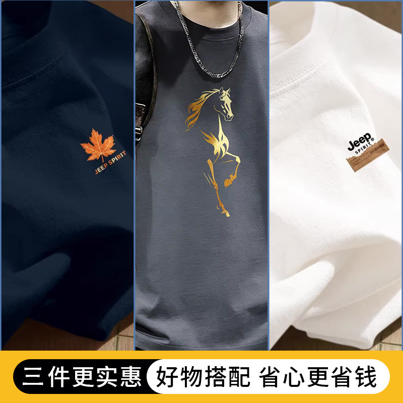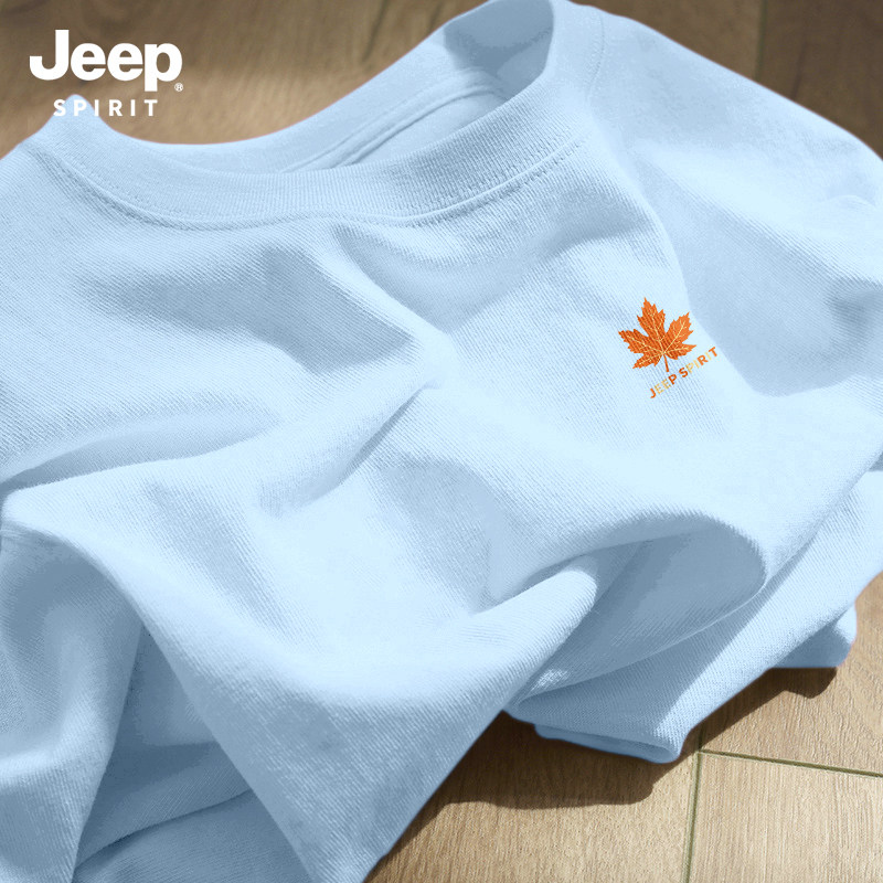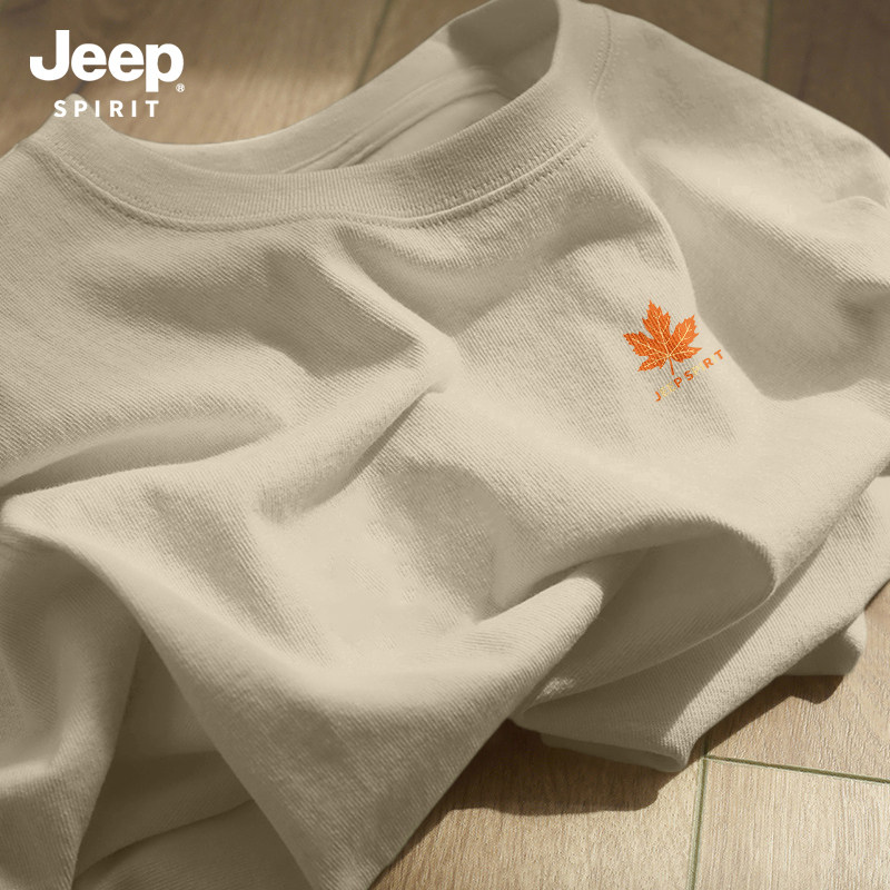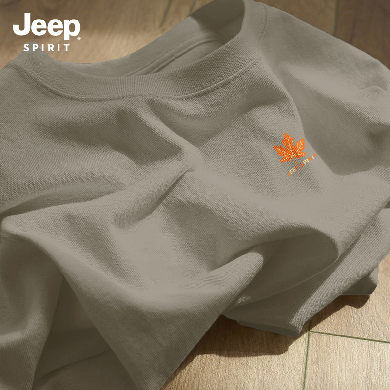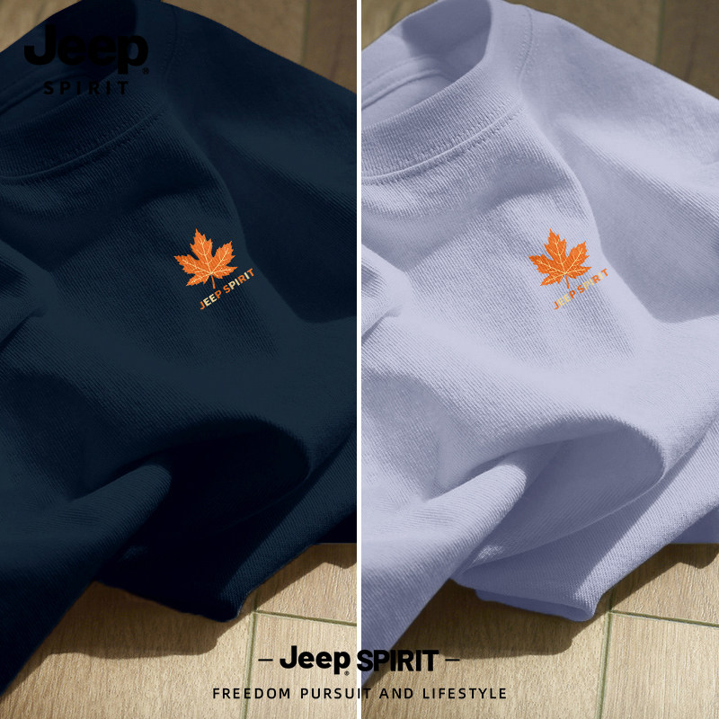 Jeep吉普重磅纯棉男士短袖t恤男2026新款夏季藏青圆领半袖上衣服