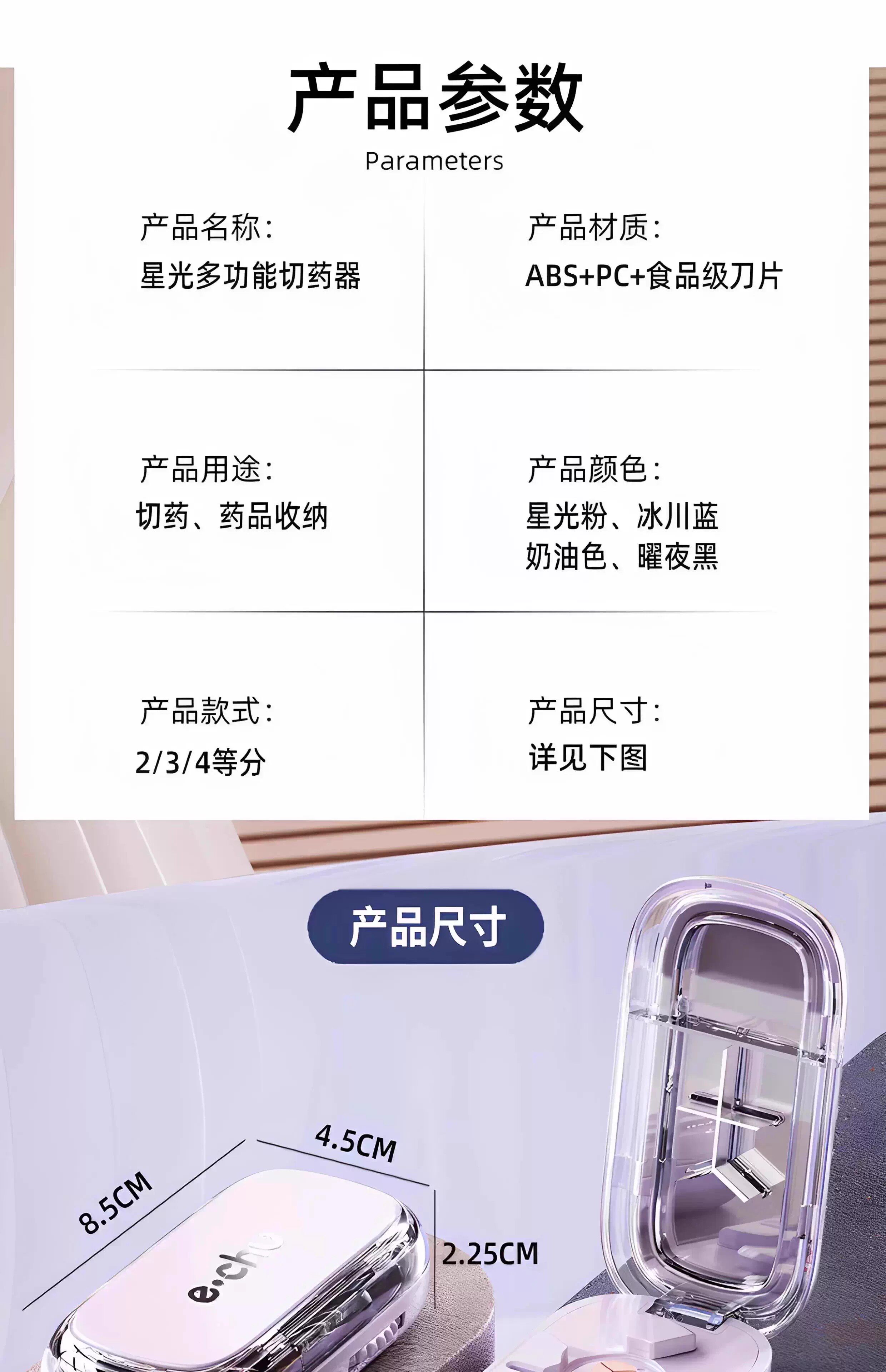 HomeProducts日本新款分药器精准切药一分二多功能分割药片四三分之一便携神器