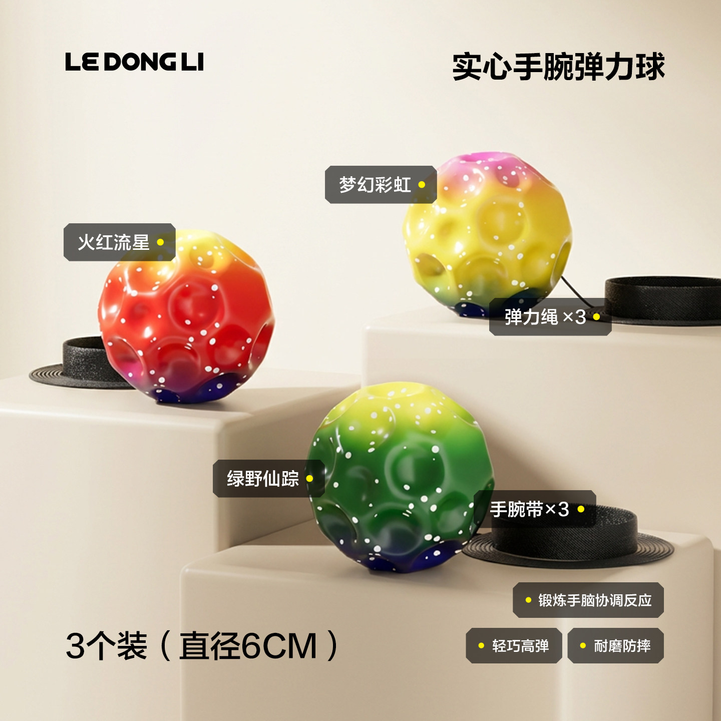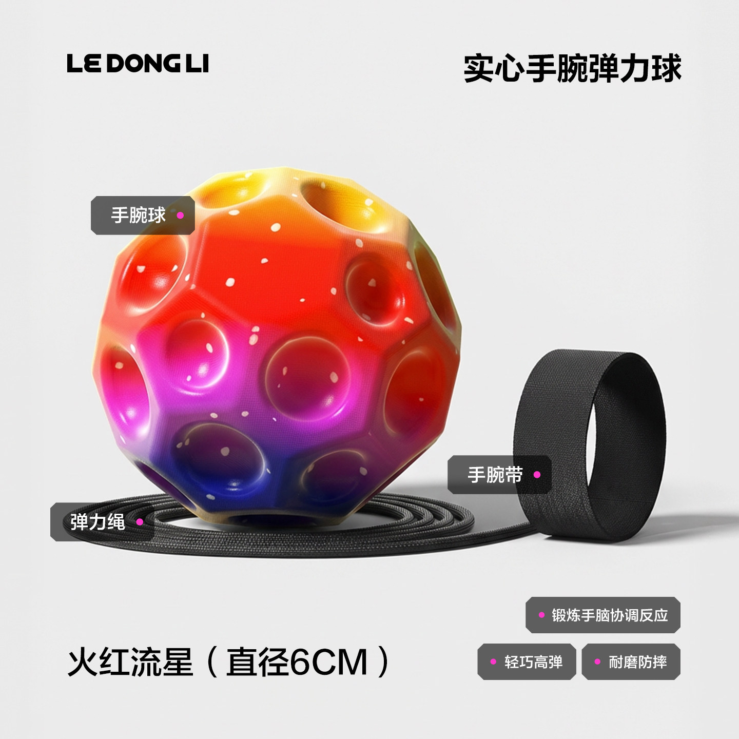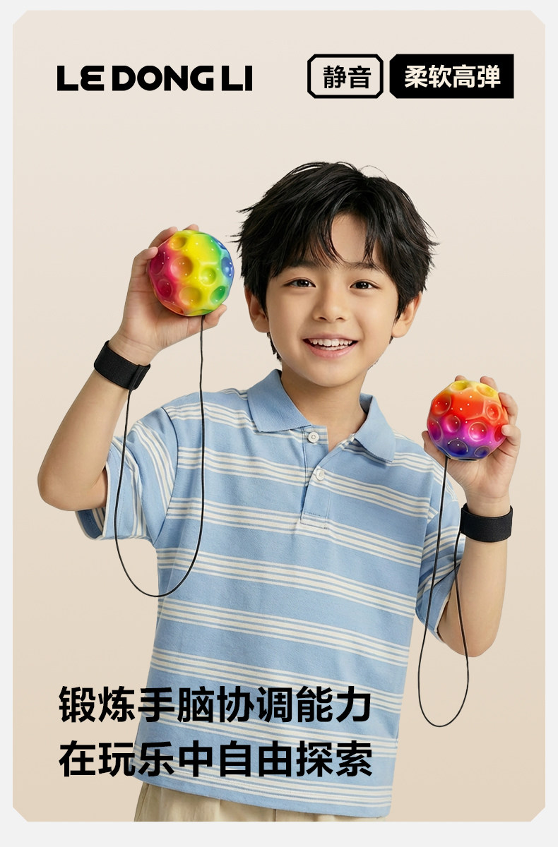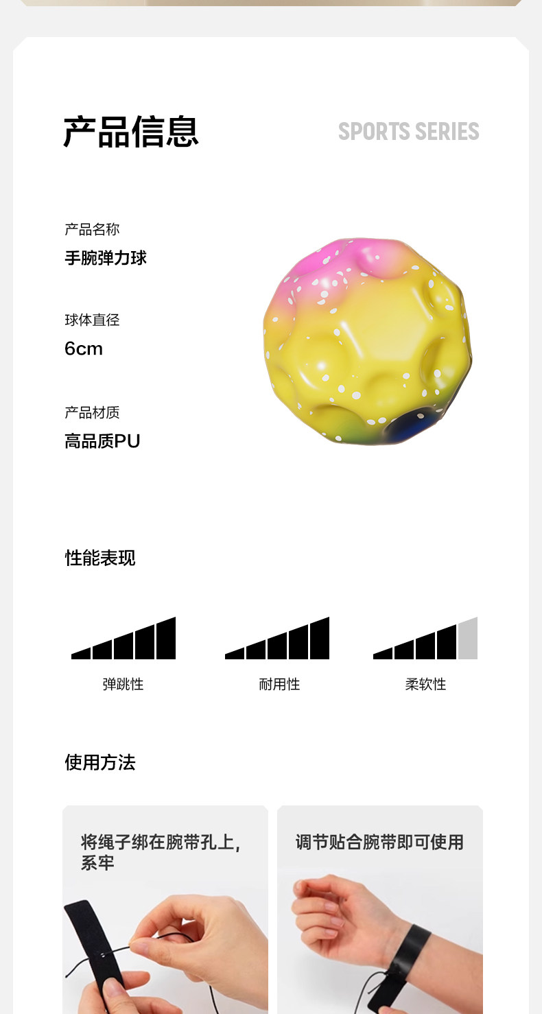 手腕弹力球带绳儿童腕力球月球石回弹甩甩跳球神器小孩解压玩具