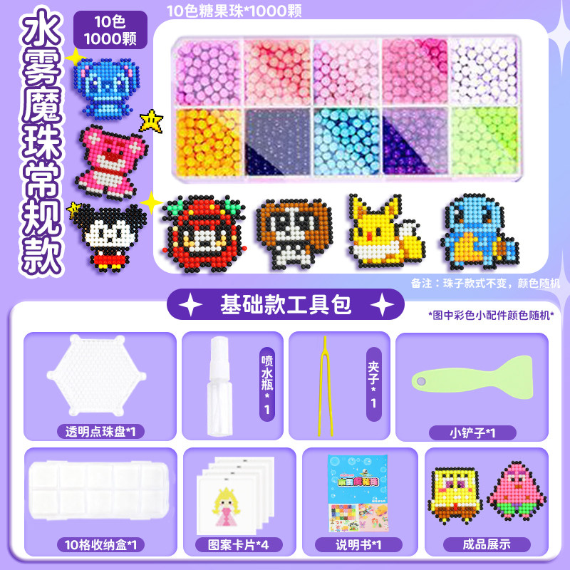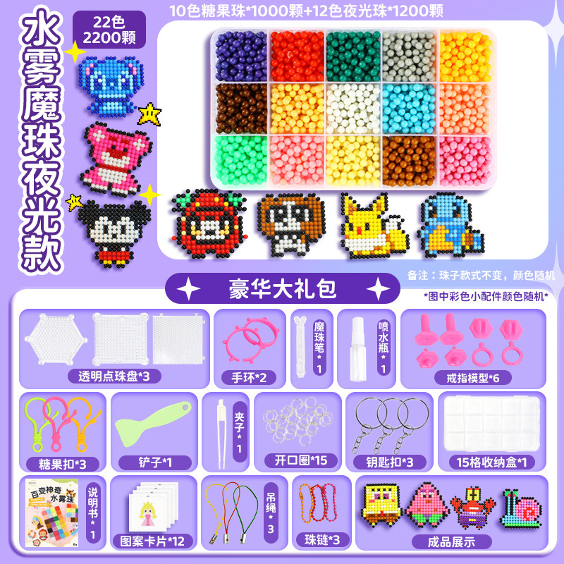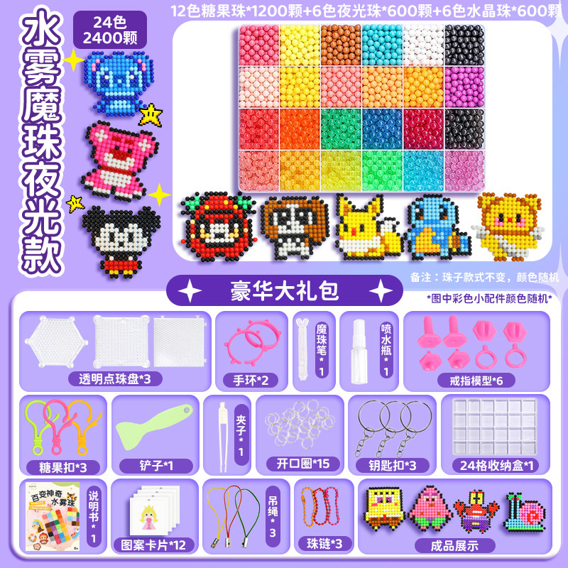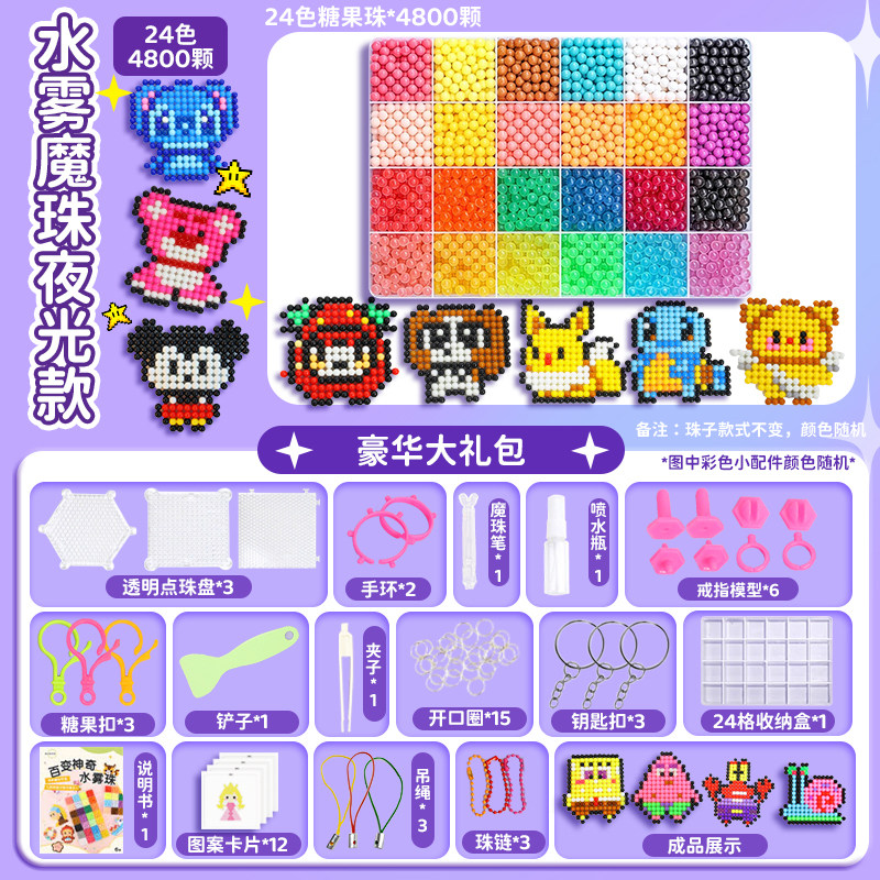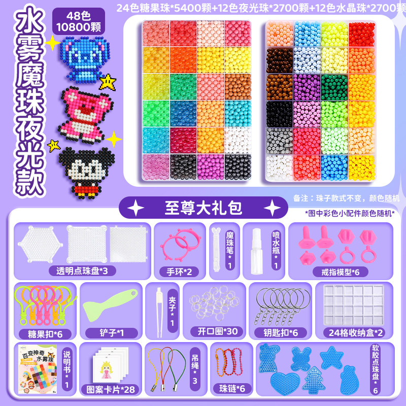 夜光水雾魔珠水粘珠免熨烫拼豆豆套装手工diy制作儿童玩具女孩子6