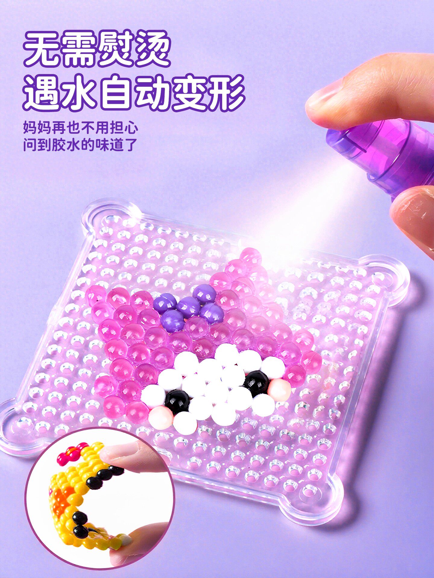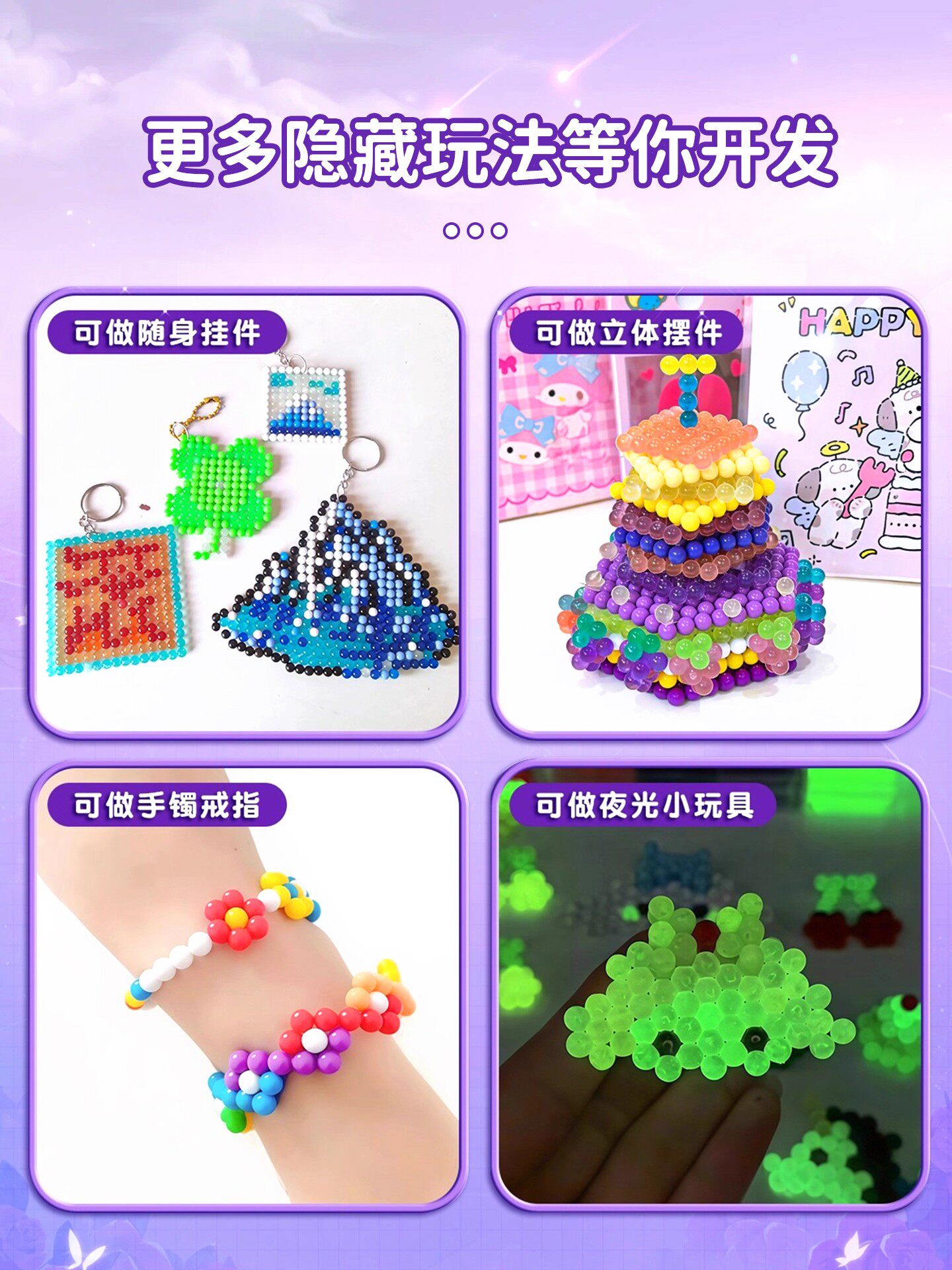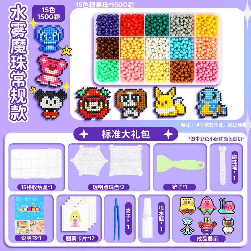 夜光水雾魔珠水粘珠免熨烫拼豆豆套装手工diy制作儿童玩具女孩子6