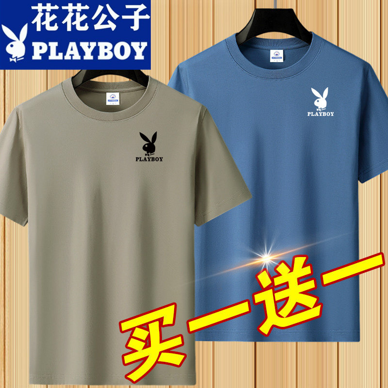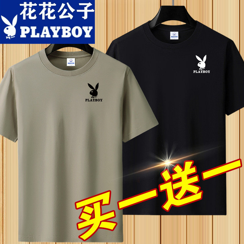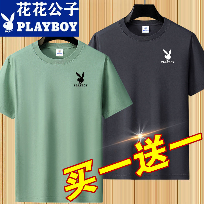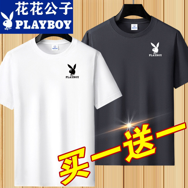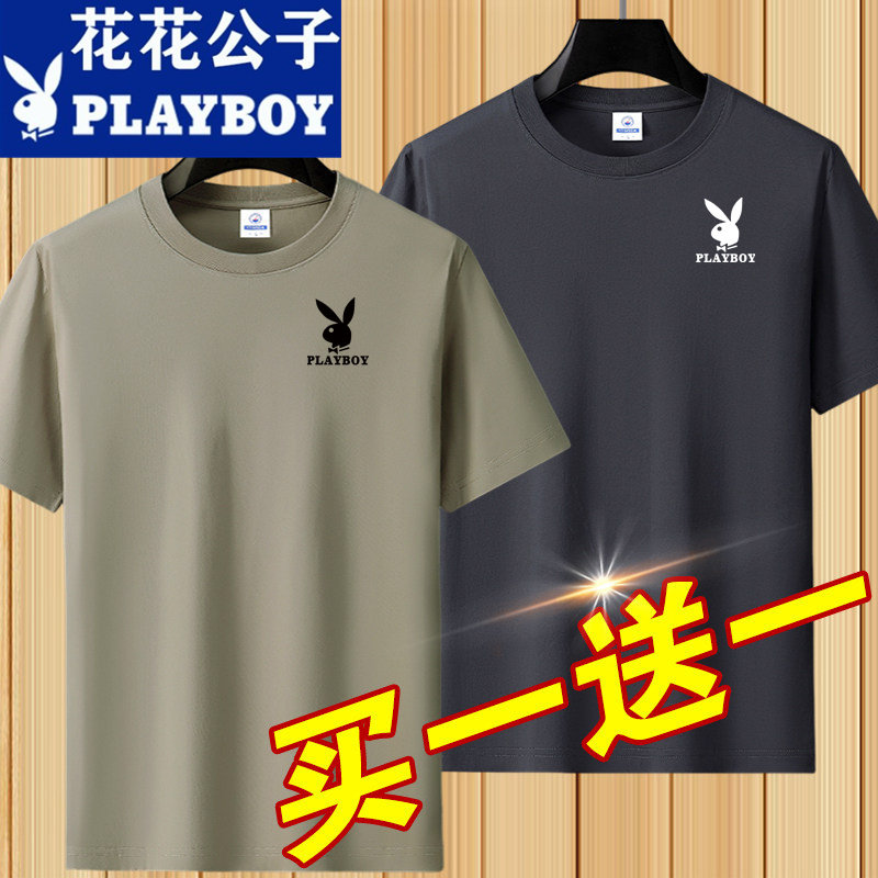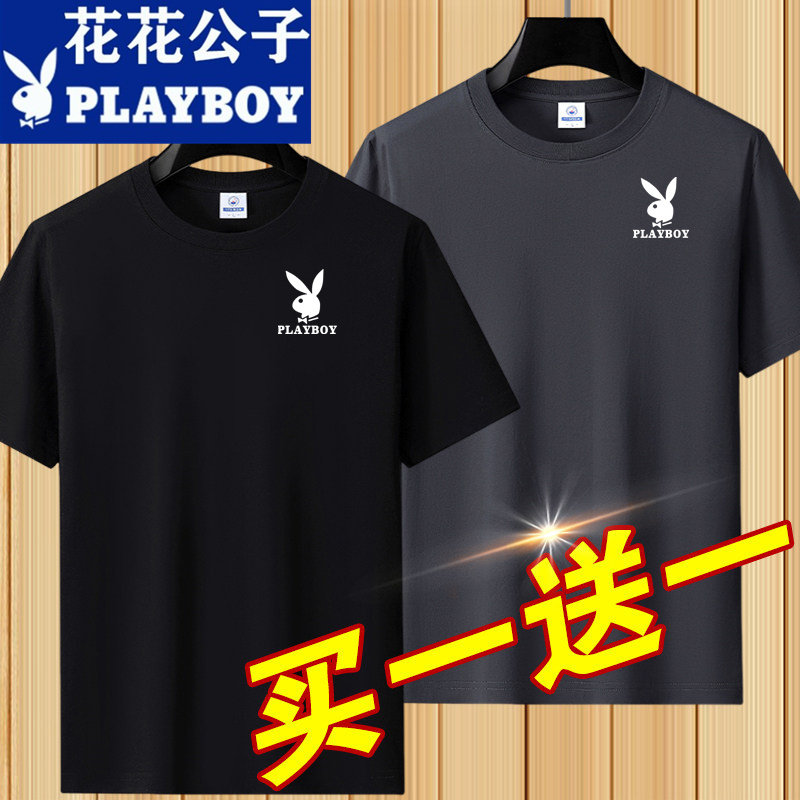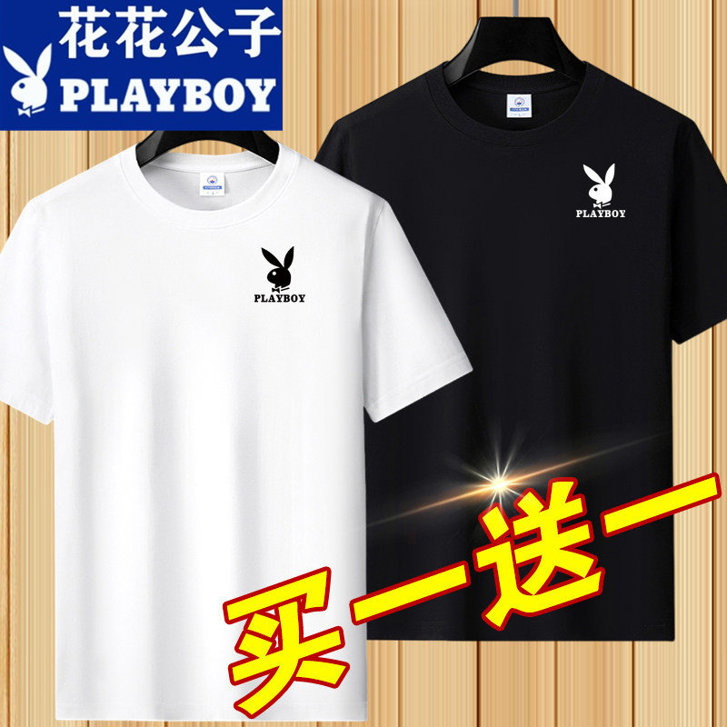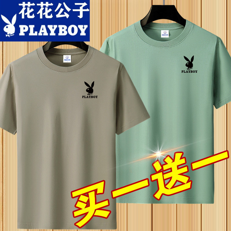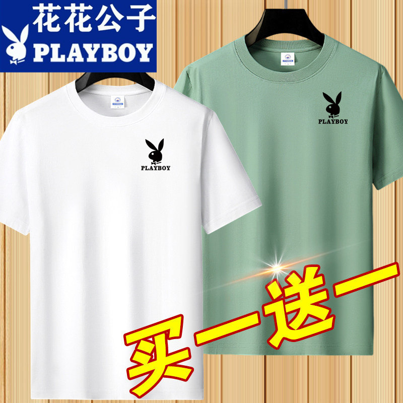 花花公子夏季短袖t恤男士青年宽松大码圆领休闲简约百搭打底半袖