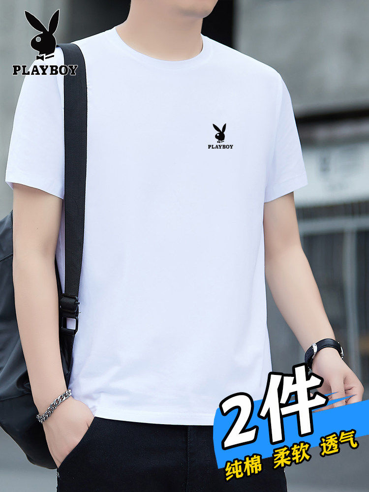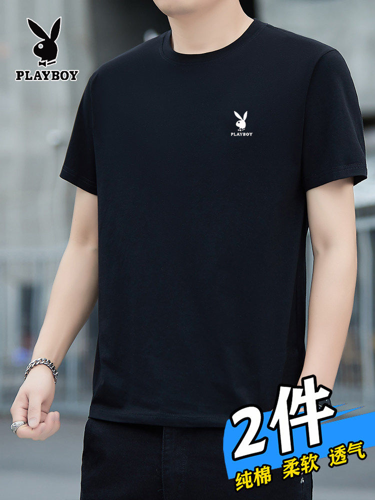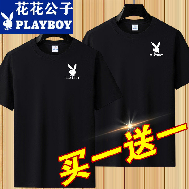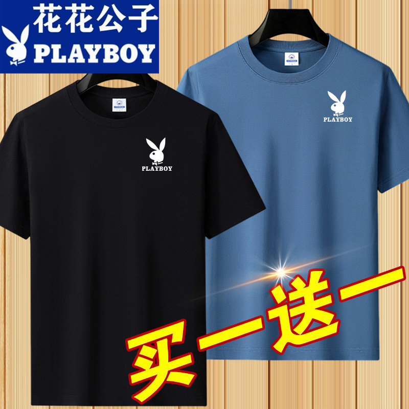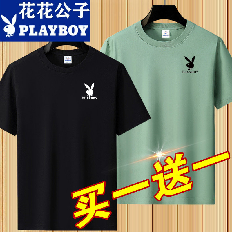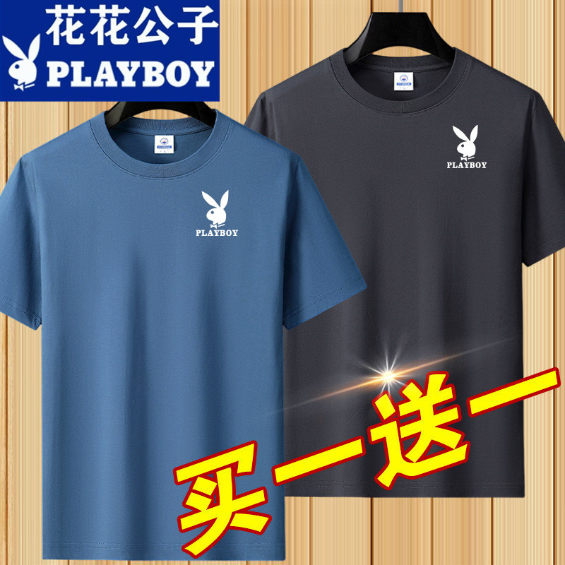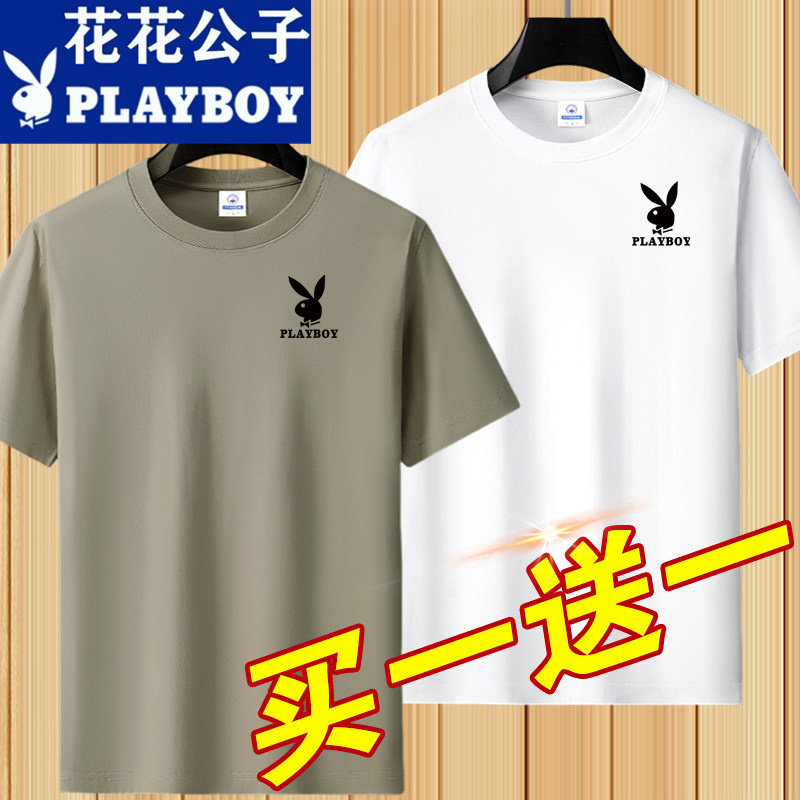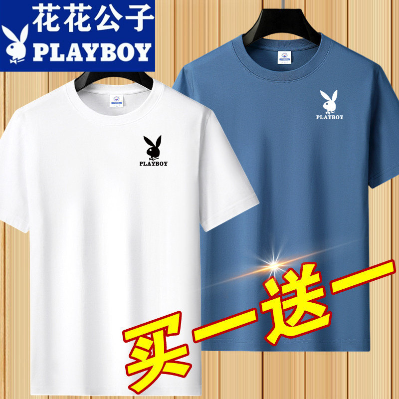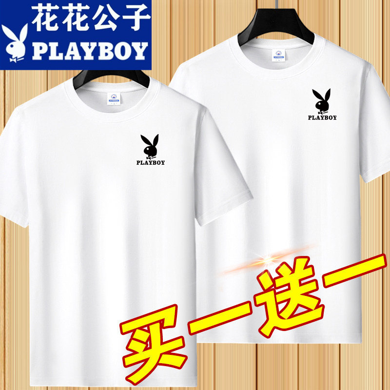 花花公子夏季短袖t恤男士青年宽松大码圆领休闲简约百搭打底半袖