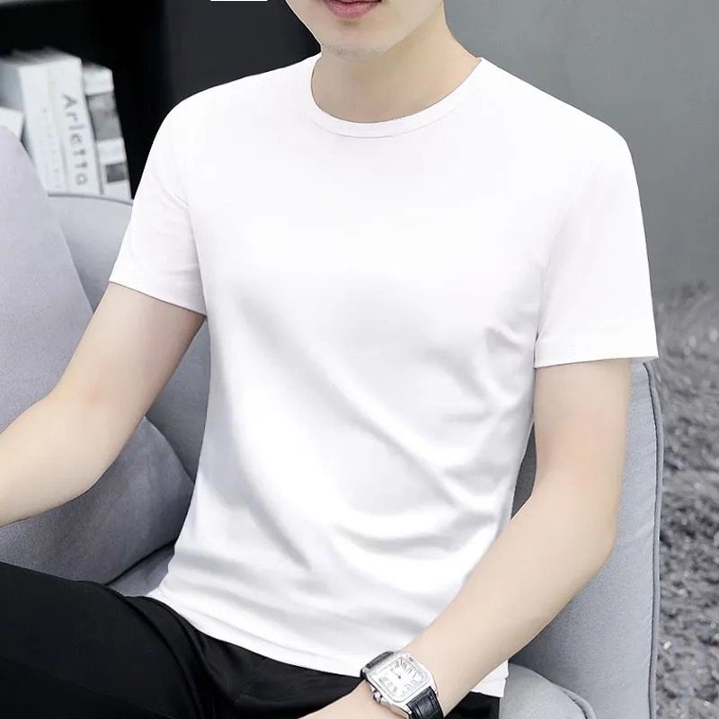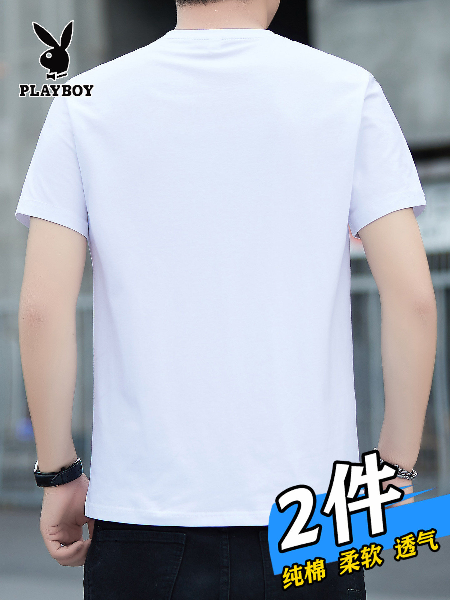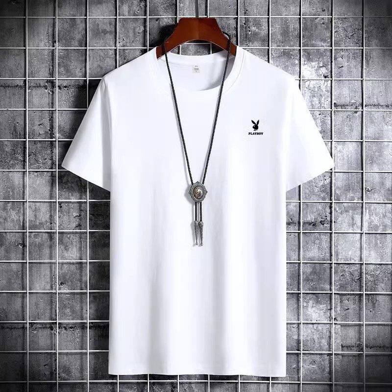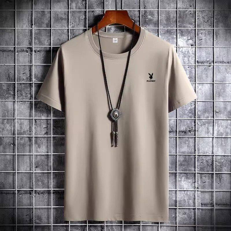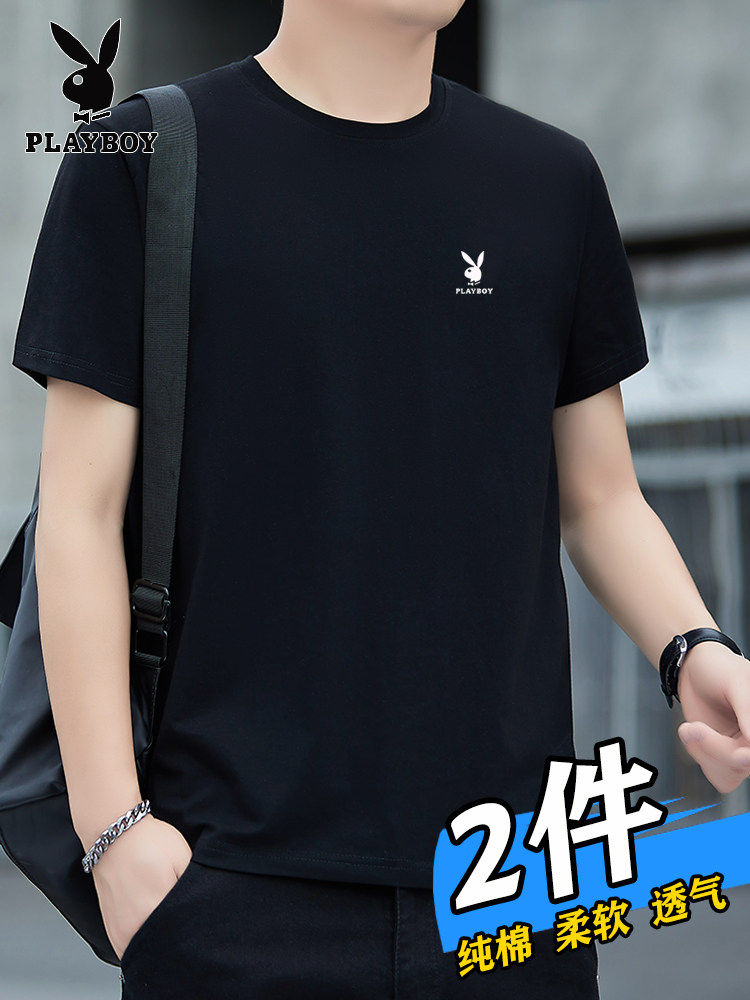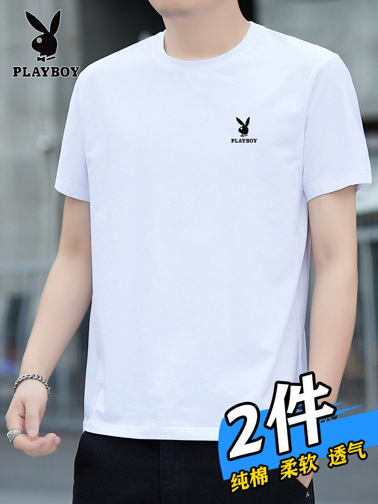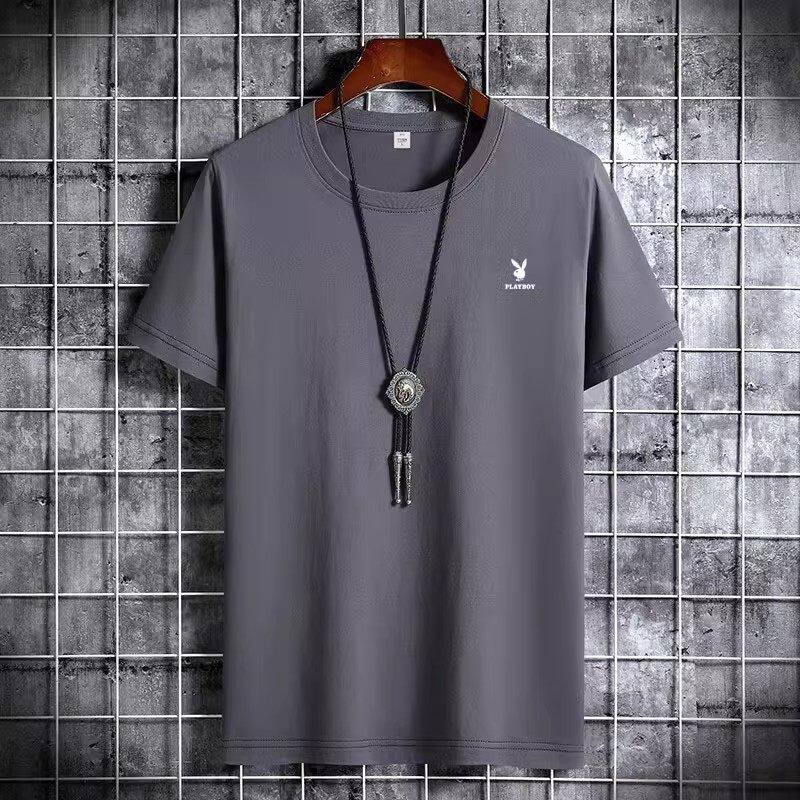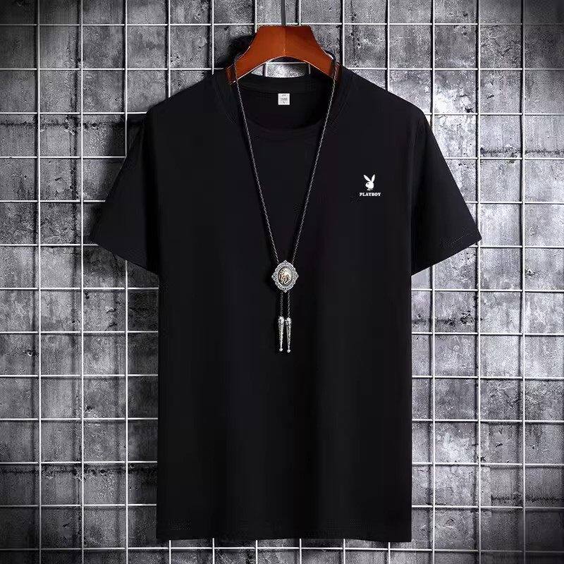 花花公子夏季短袖t恤男士青年宽松大码圆领休闲简约百搭打底半袖