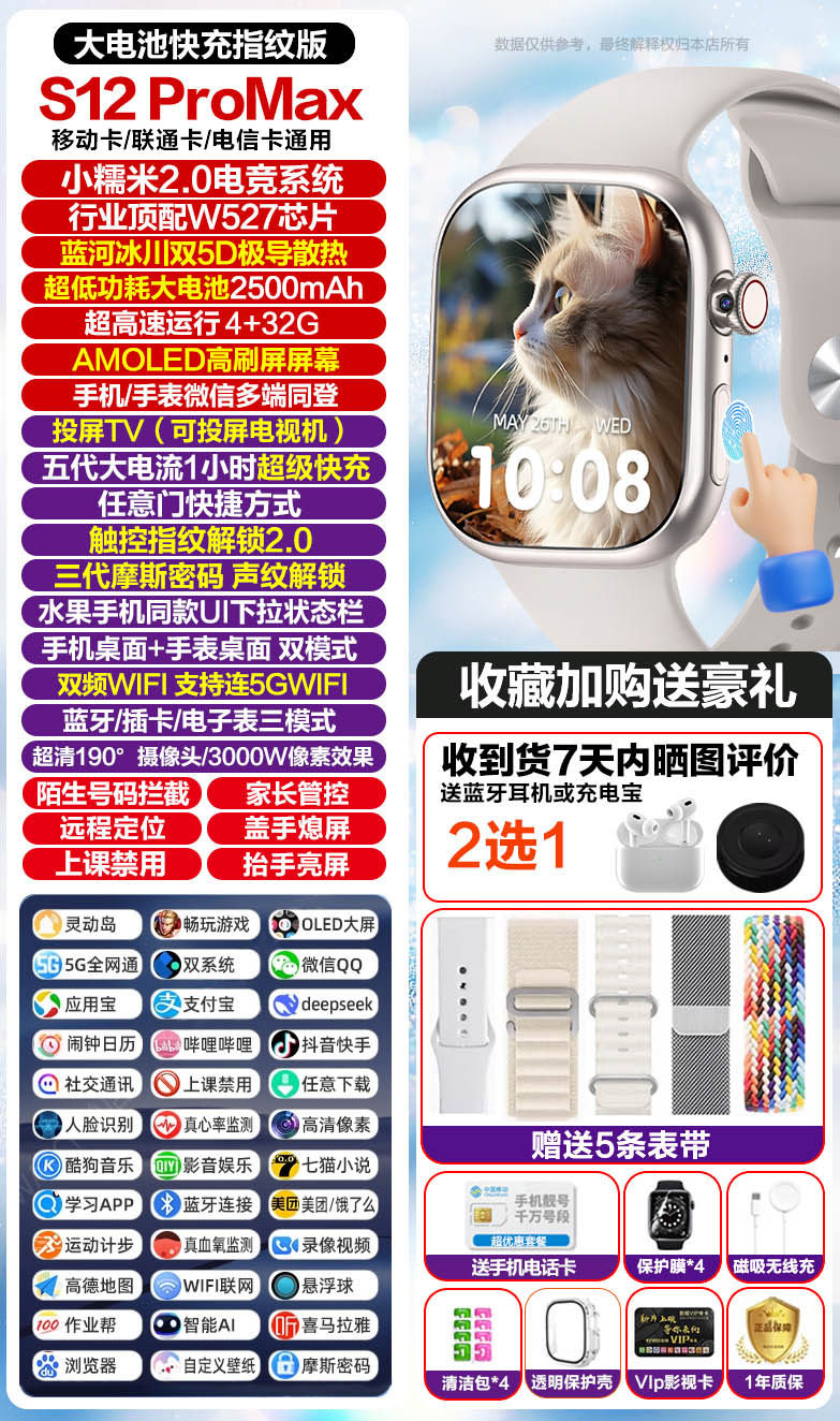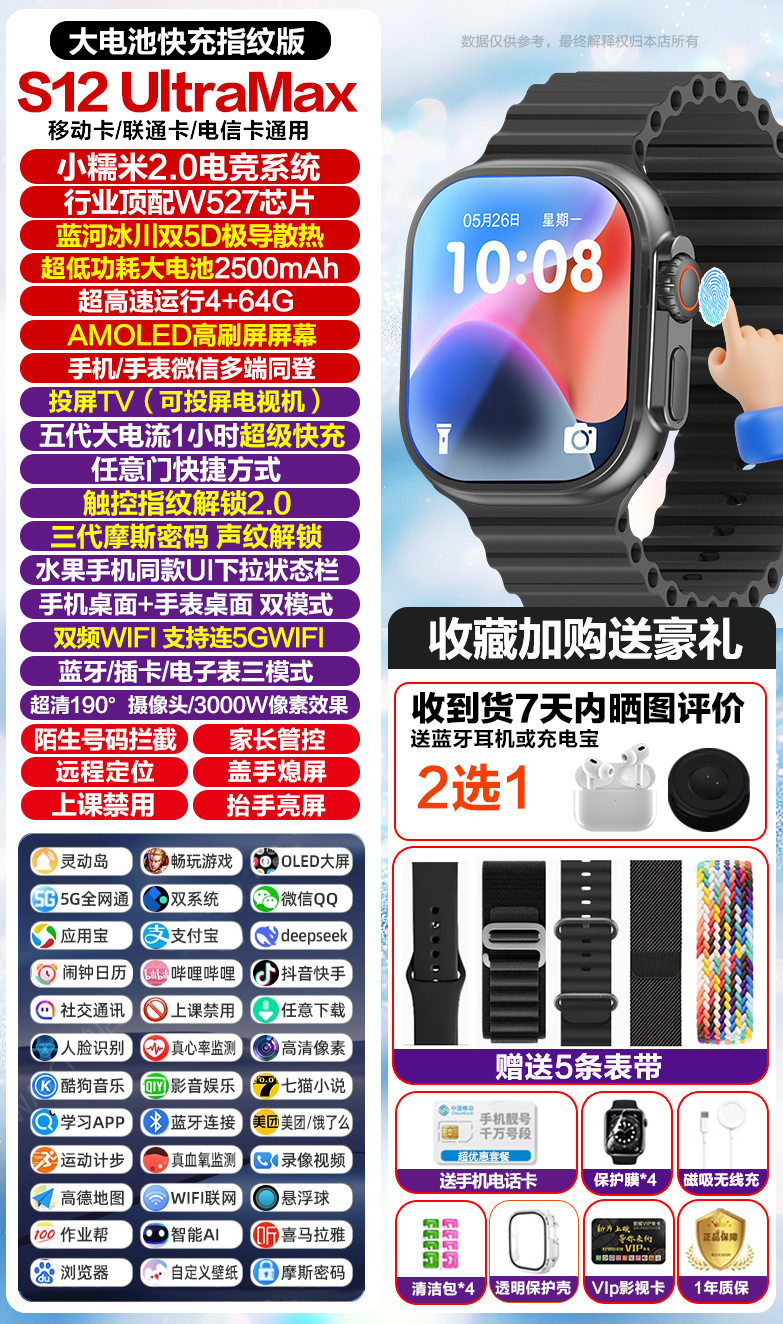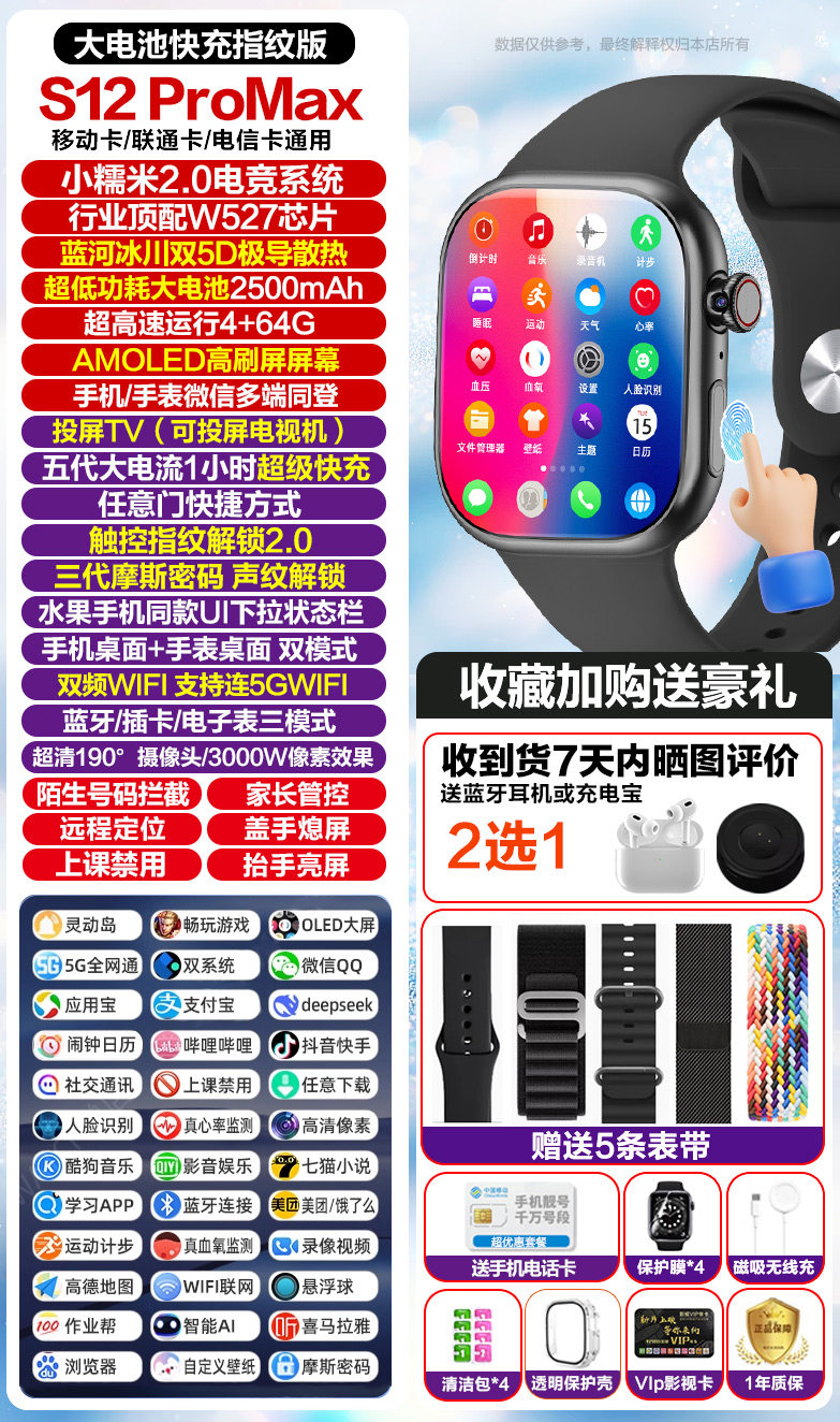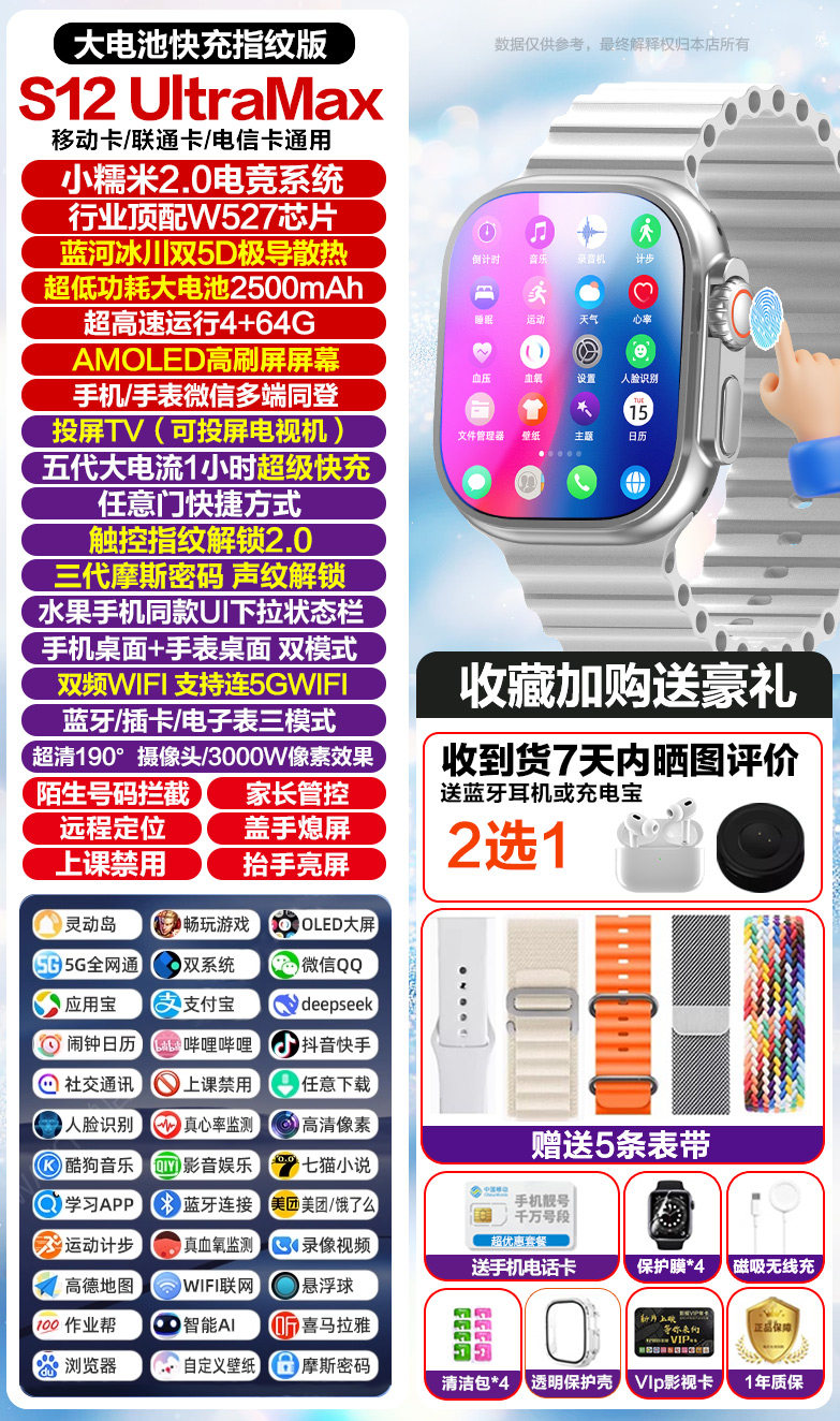 华强北s12ultra顶配版续航王cd12max智能手表W527可插卡电话手表