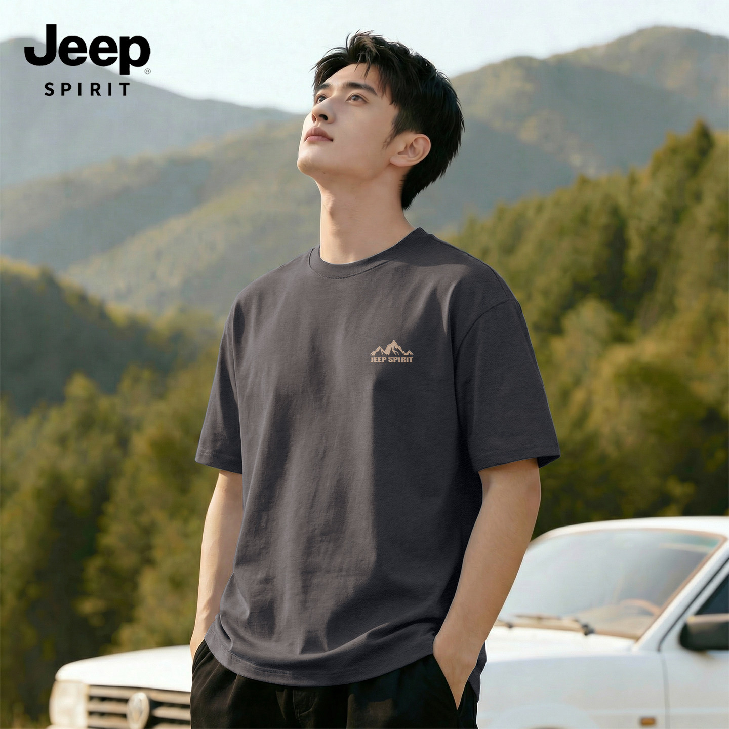 JEEP吉普夏季男士t恤2026新款纯棉潮牌半袖男款透气男生夏日短袖C