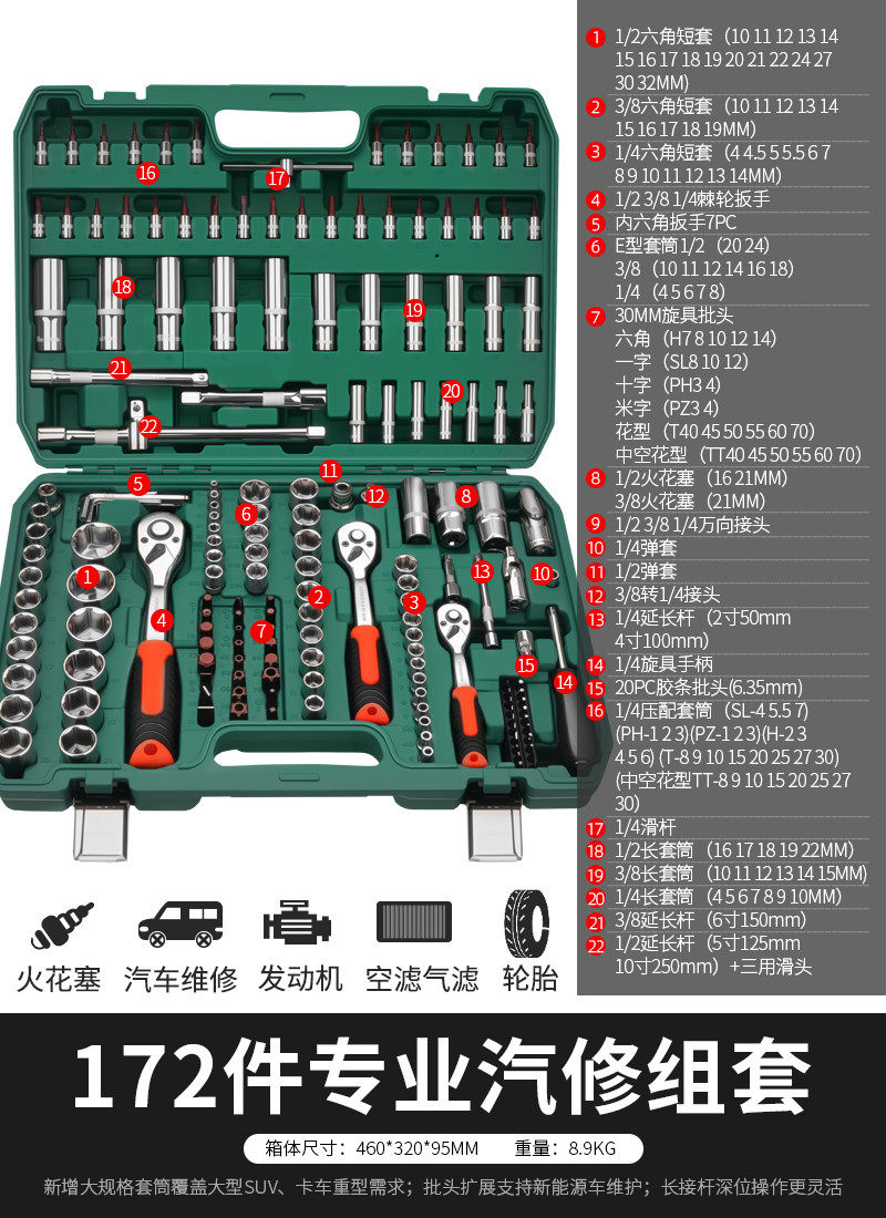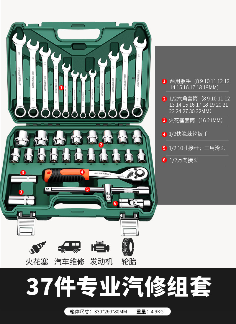 加强款直柄汽修46件套