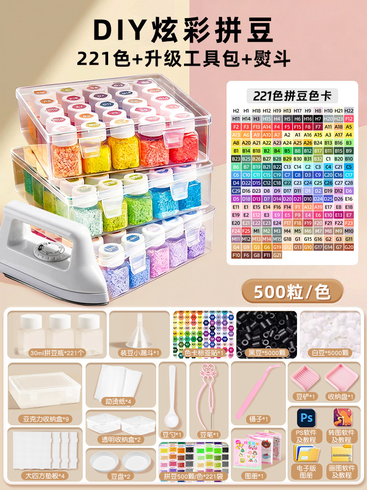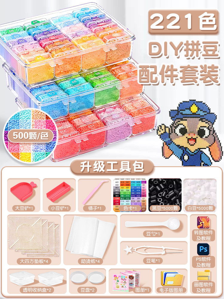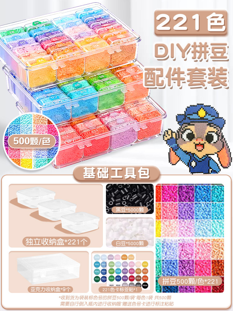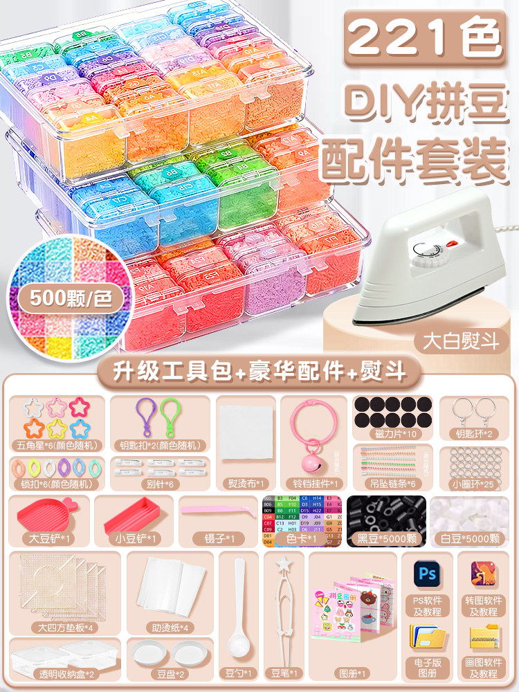 HomeProducts拼豆豆221色全套工具材料包小手工diy玩具套装熨斗正版融合豆礼品