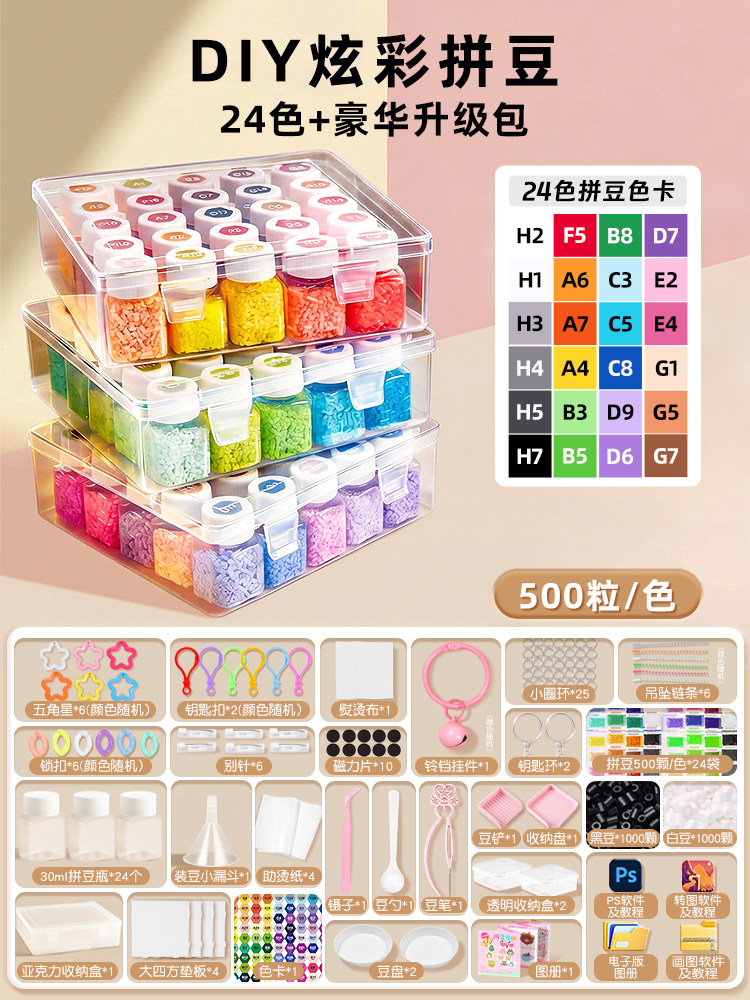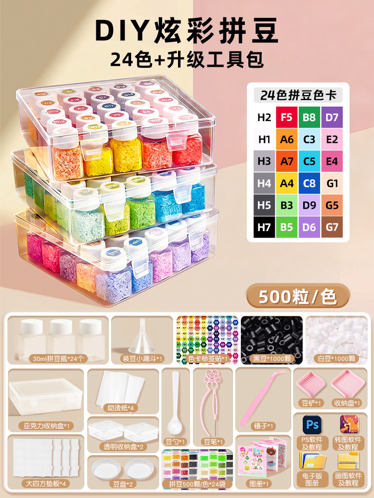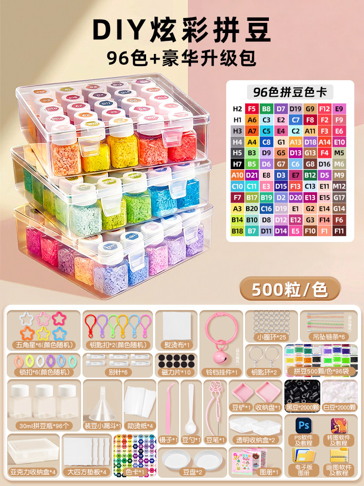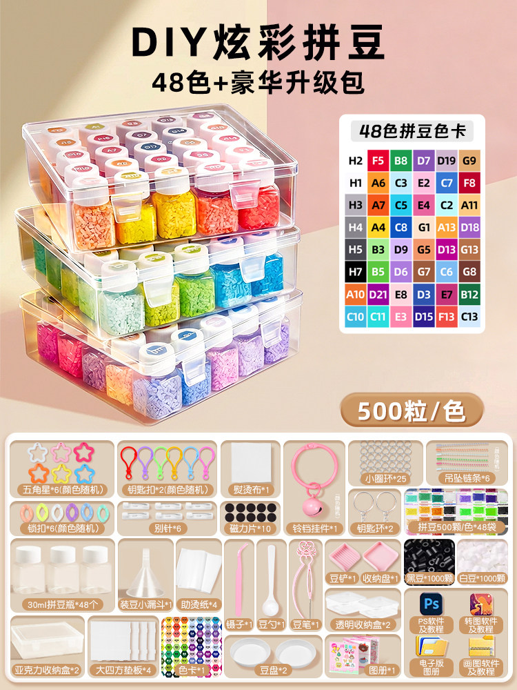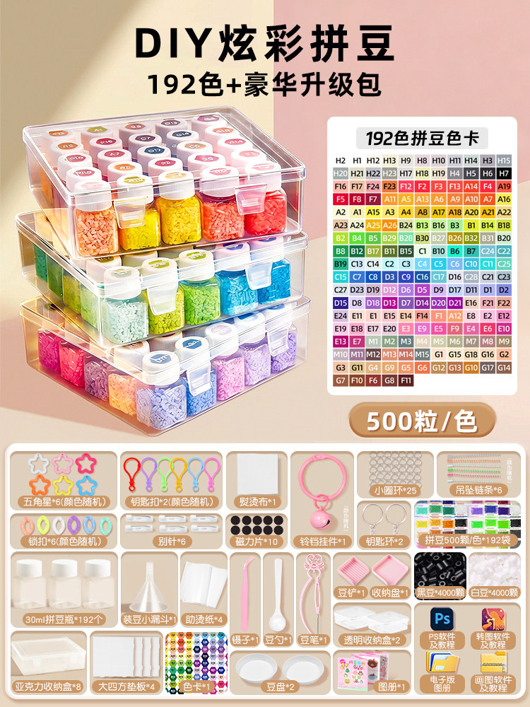 HomeProducts拼豆豆221色全套工具材料包小手工diy玩具套装熨斗正版融合豆礼品