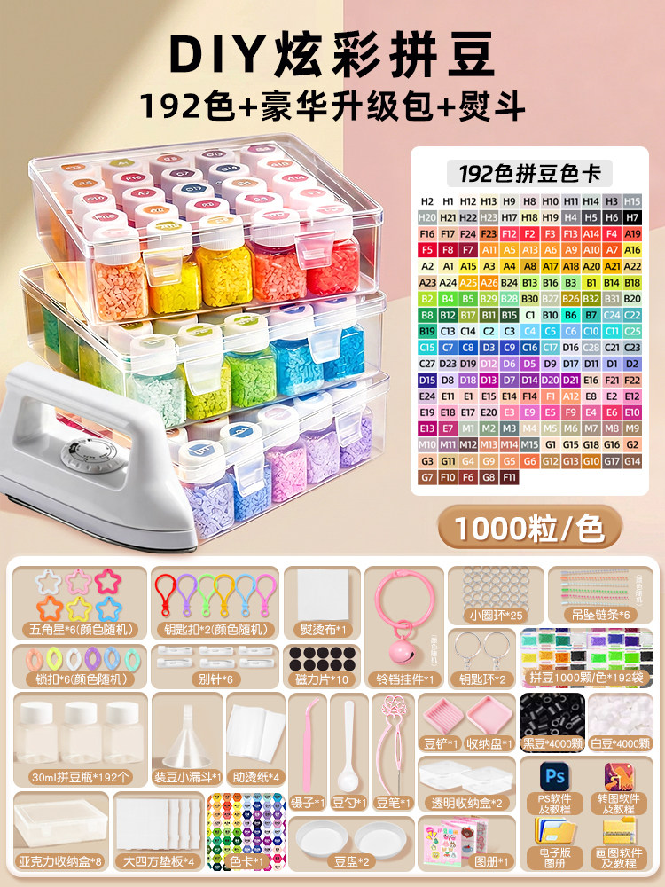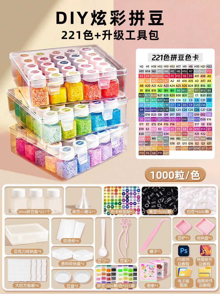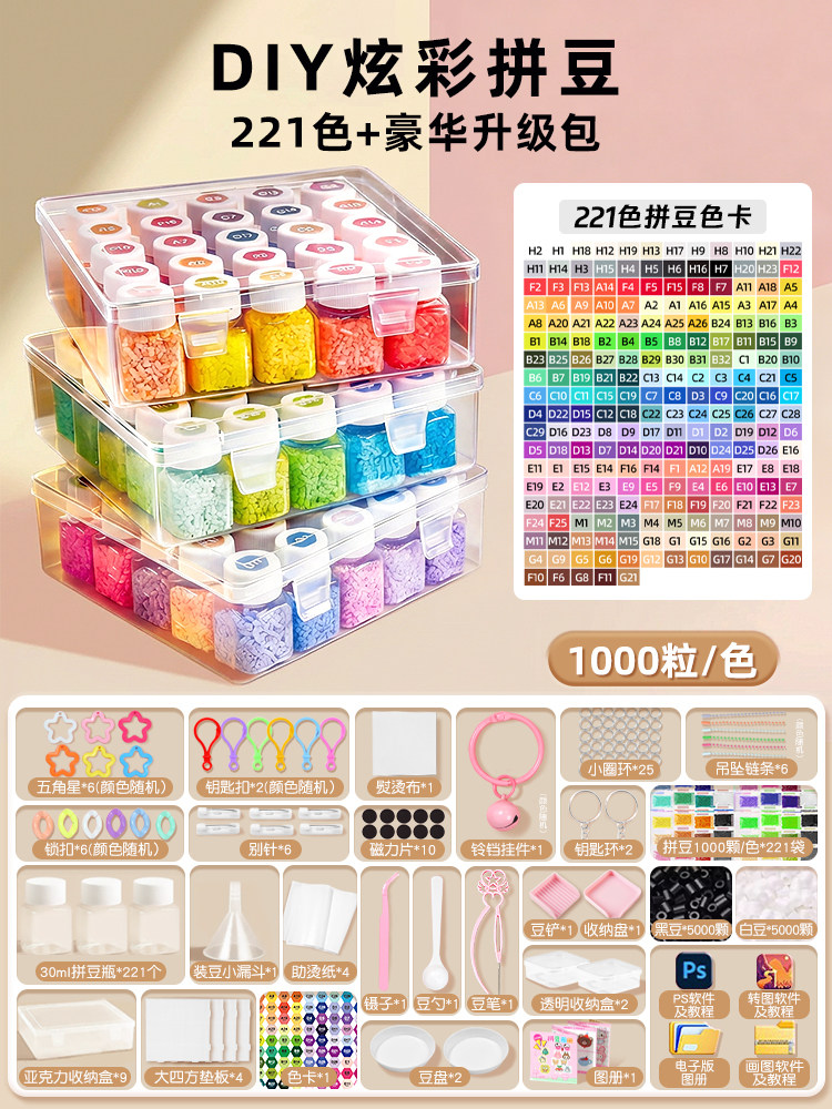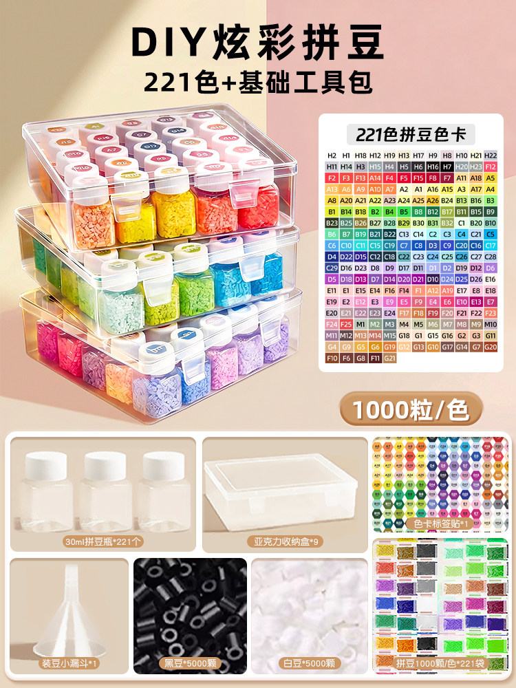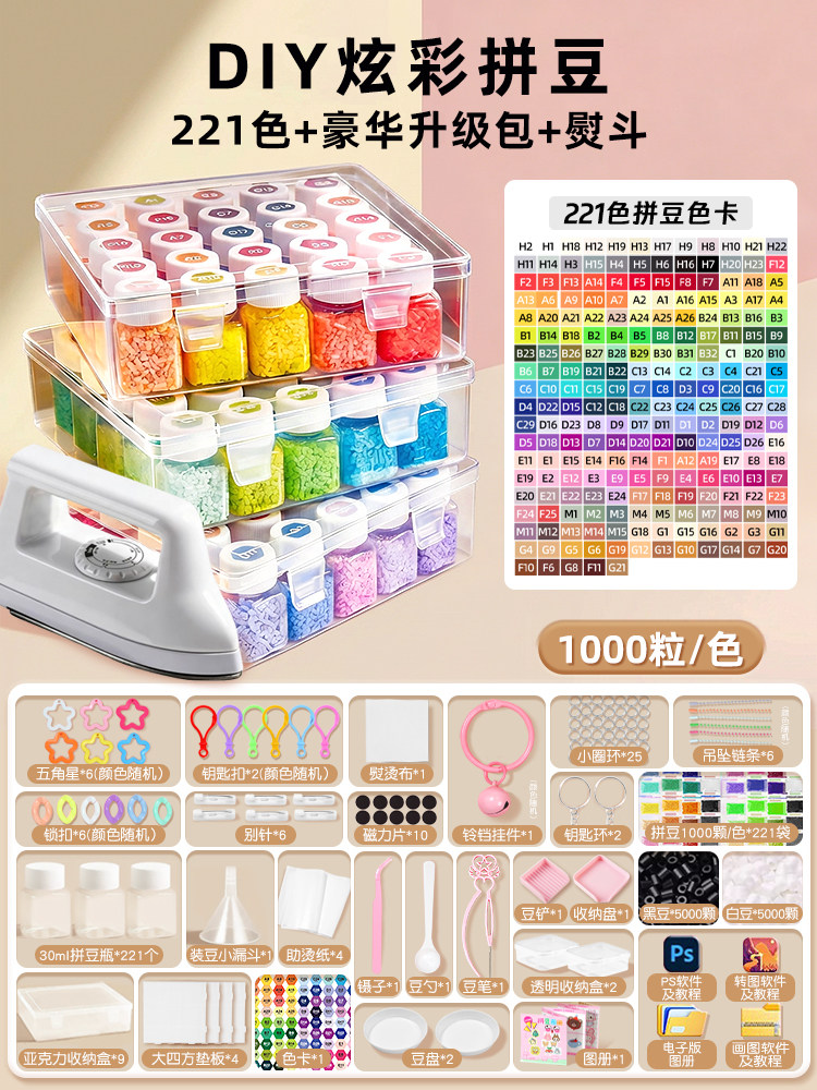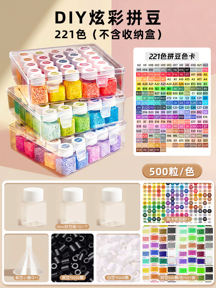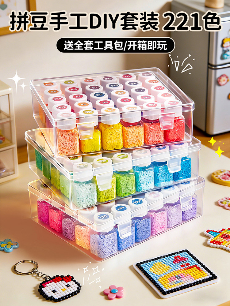 拼豆豆221色全套工具材料包小手工diy玩具套装熨斗正版融合豆礼品