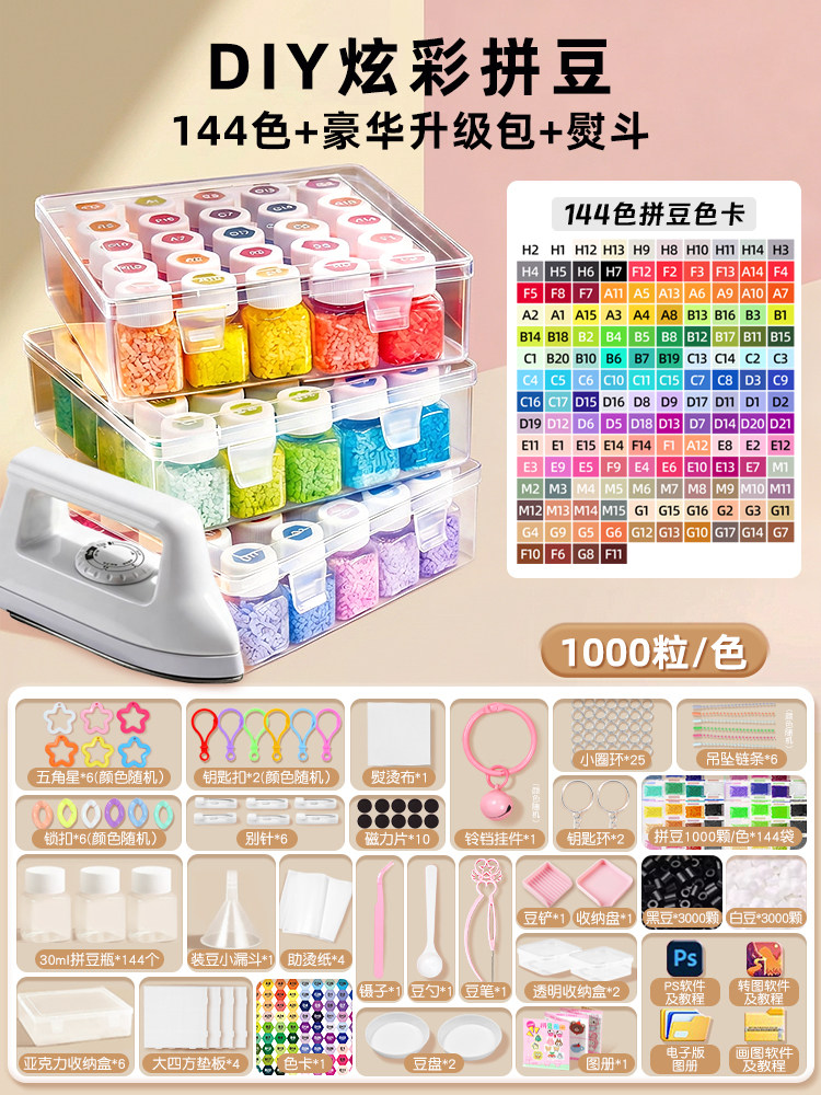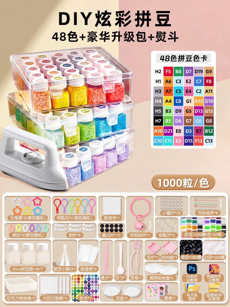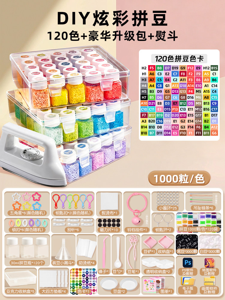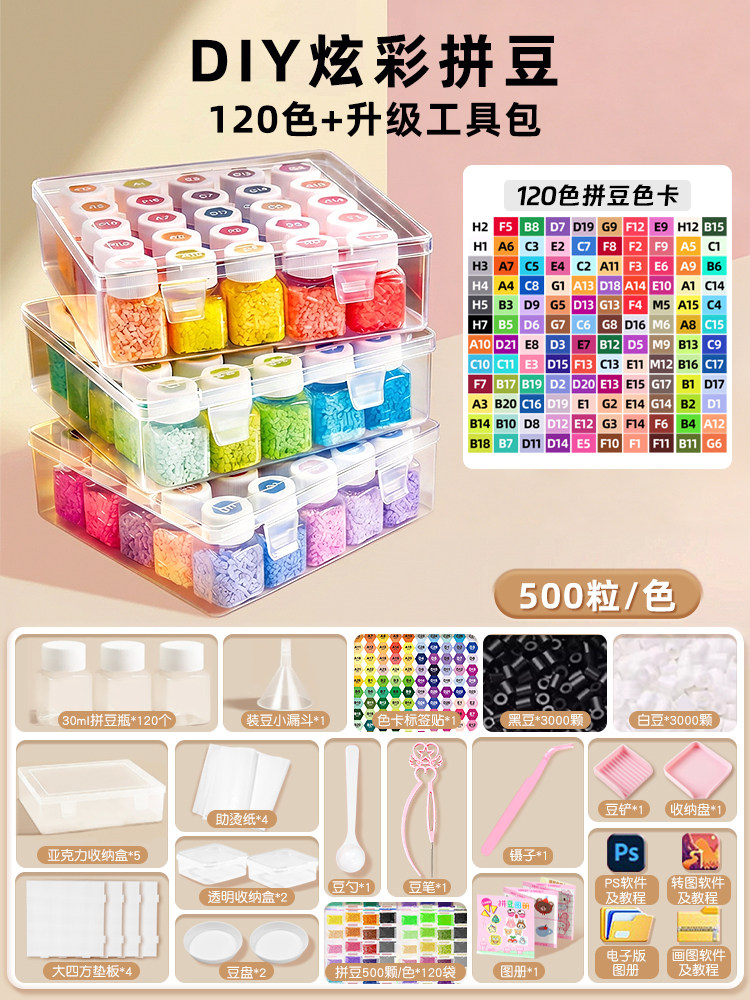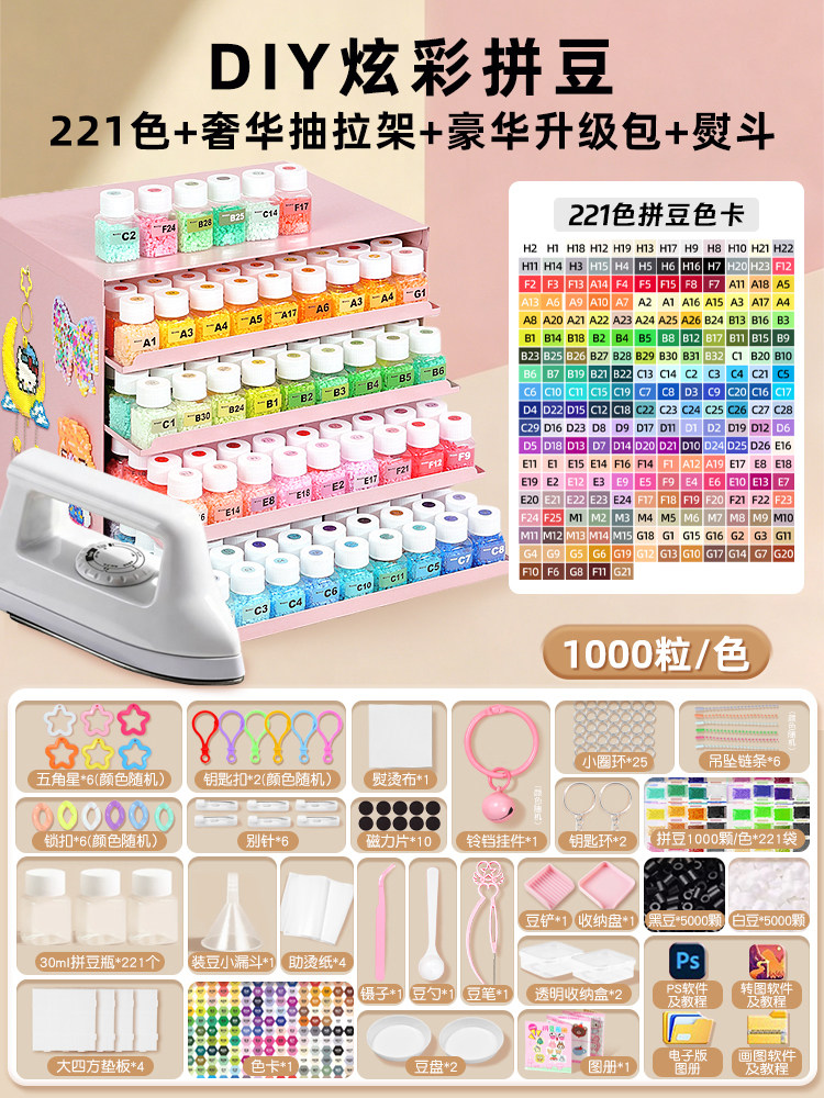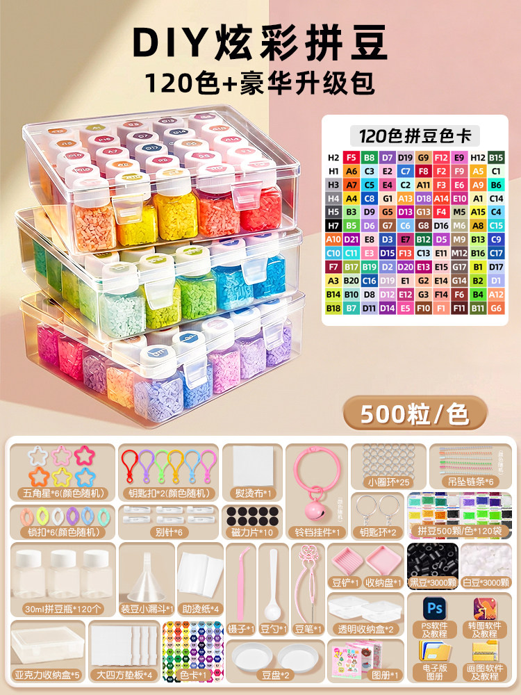 拼豆豆221色全套工具材料包小手工diy玩具套装熨斗正版融合豆礼品
