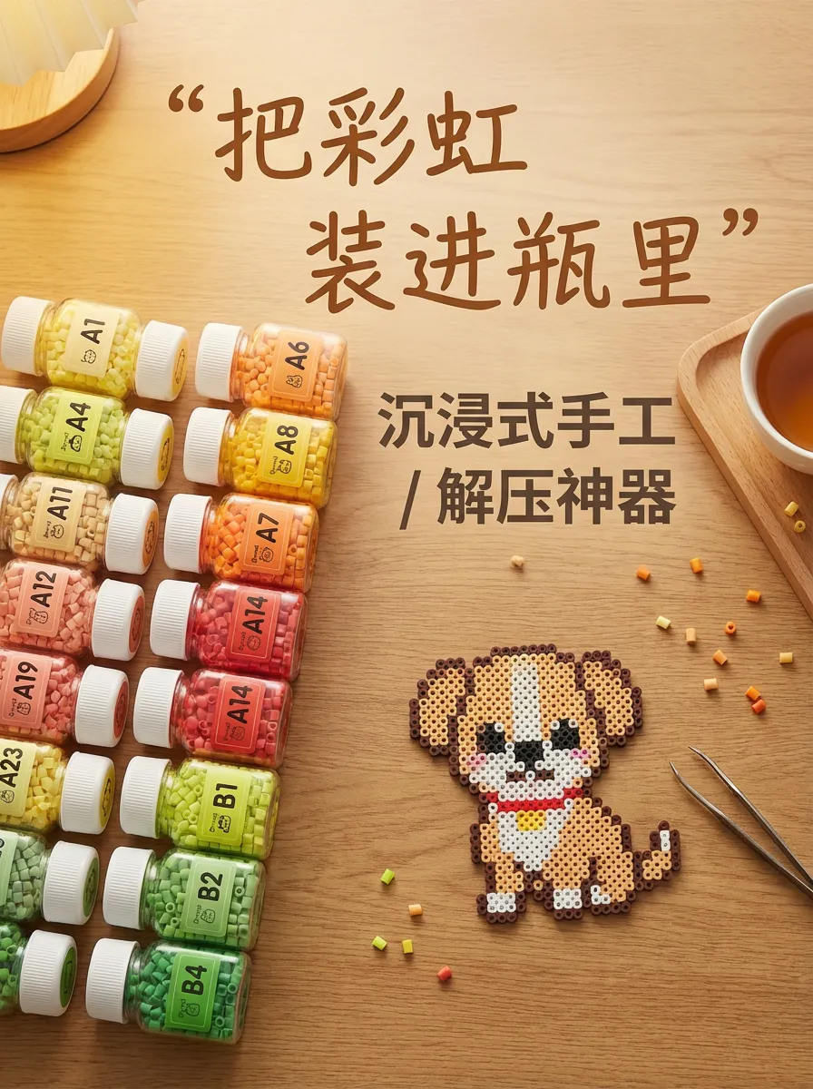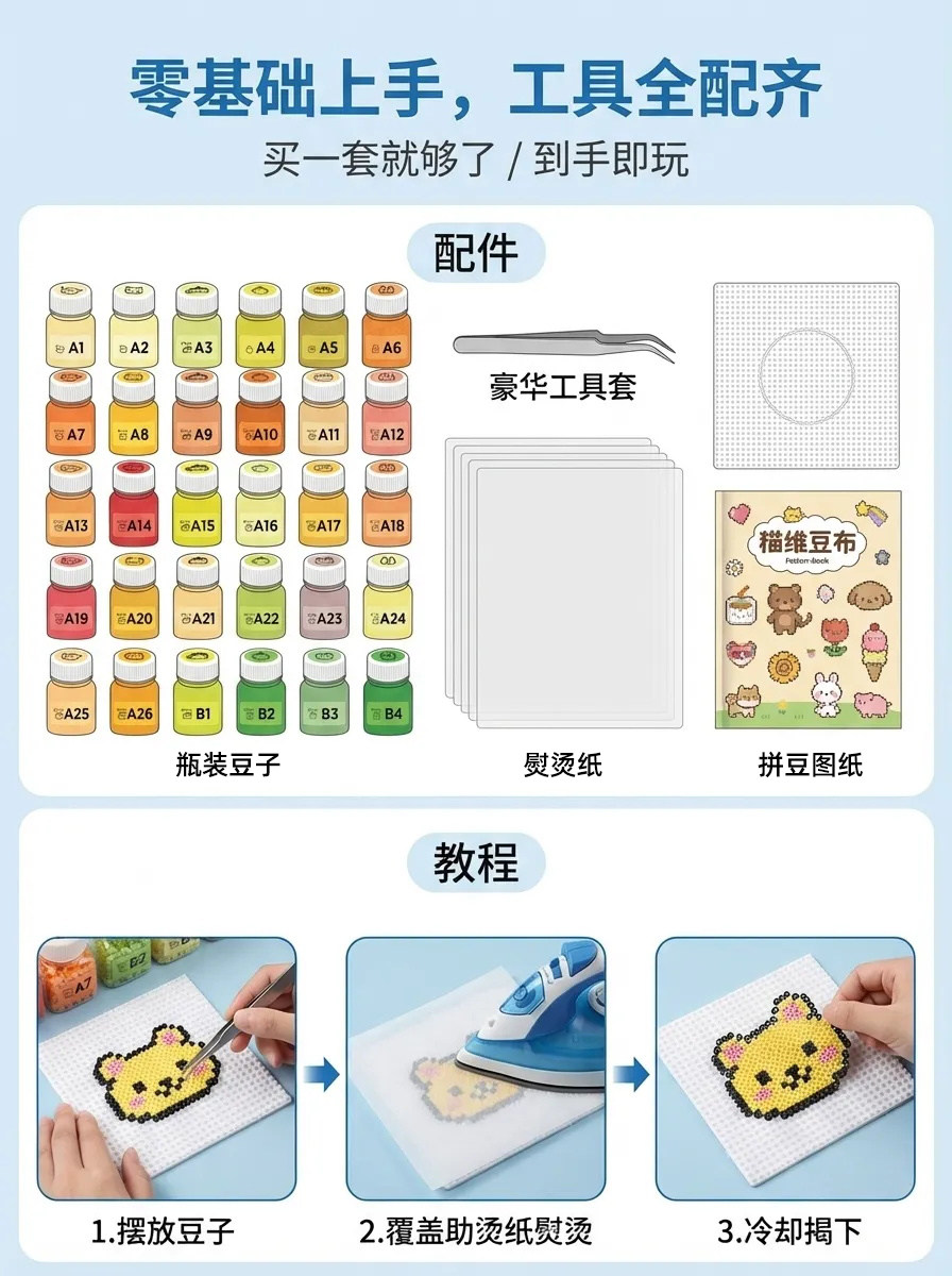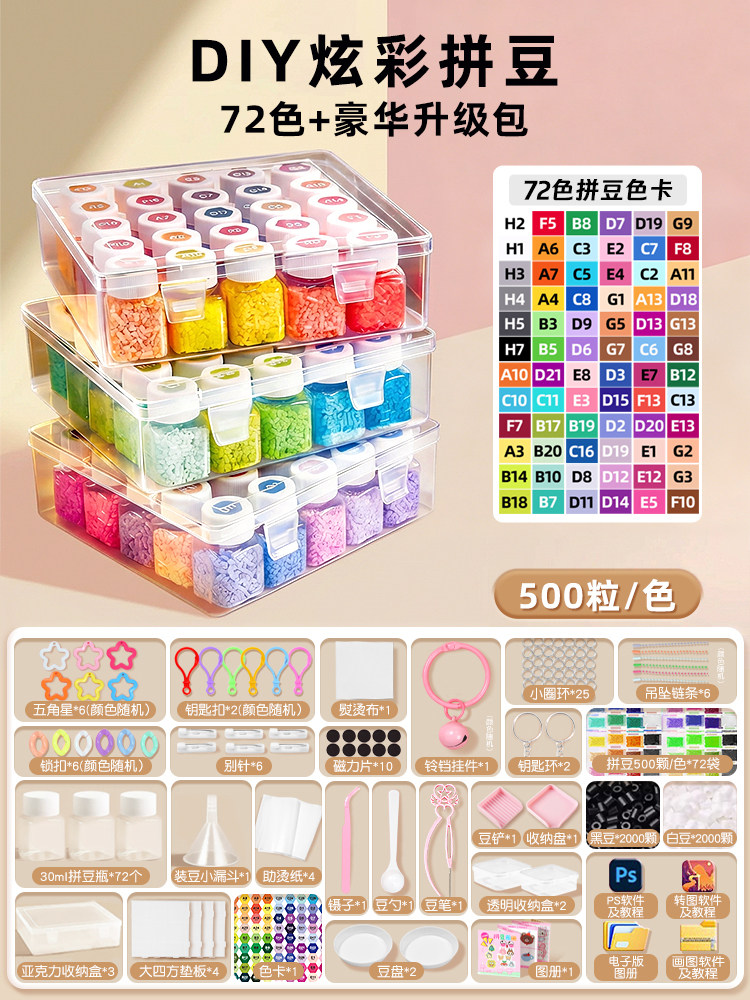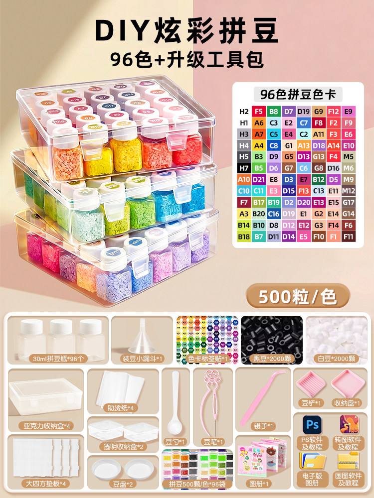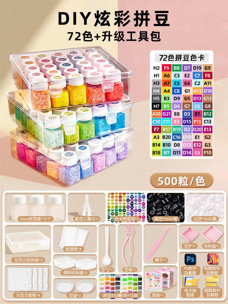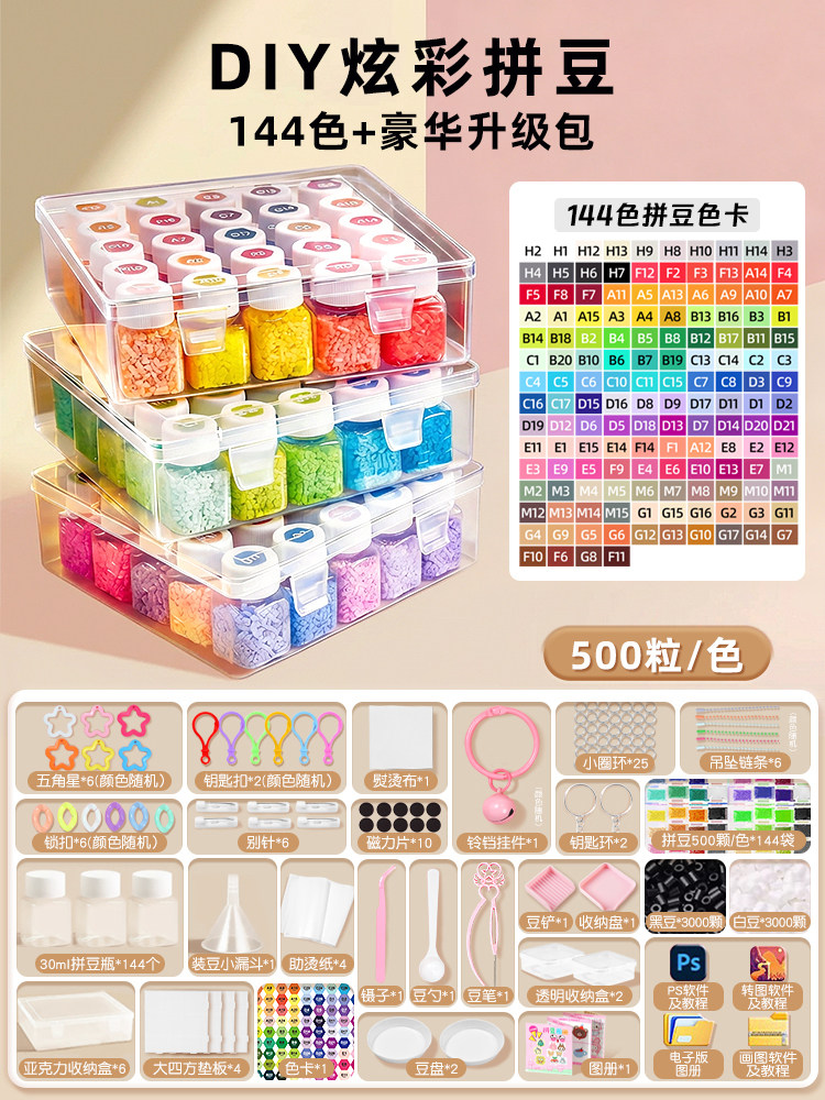 拼豆豆221色全套工具材料包小手工diy玩具套装熨斗正版融合豆礼品