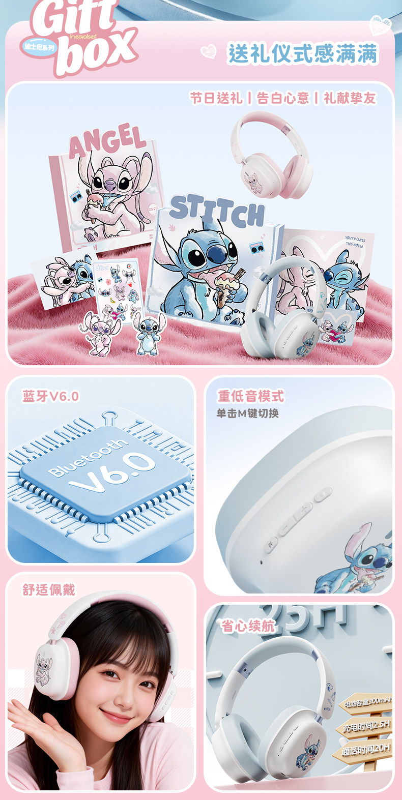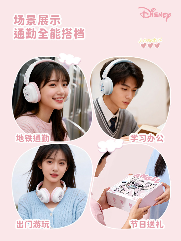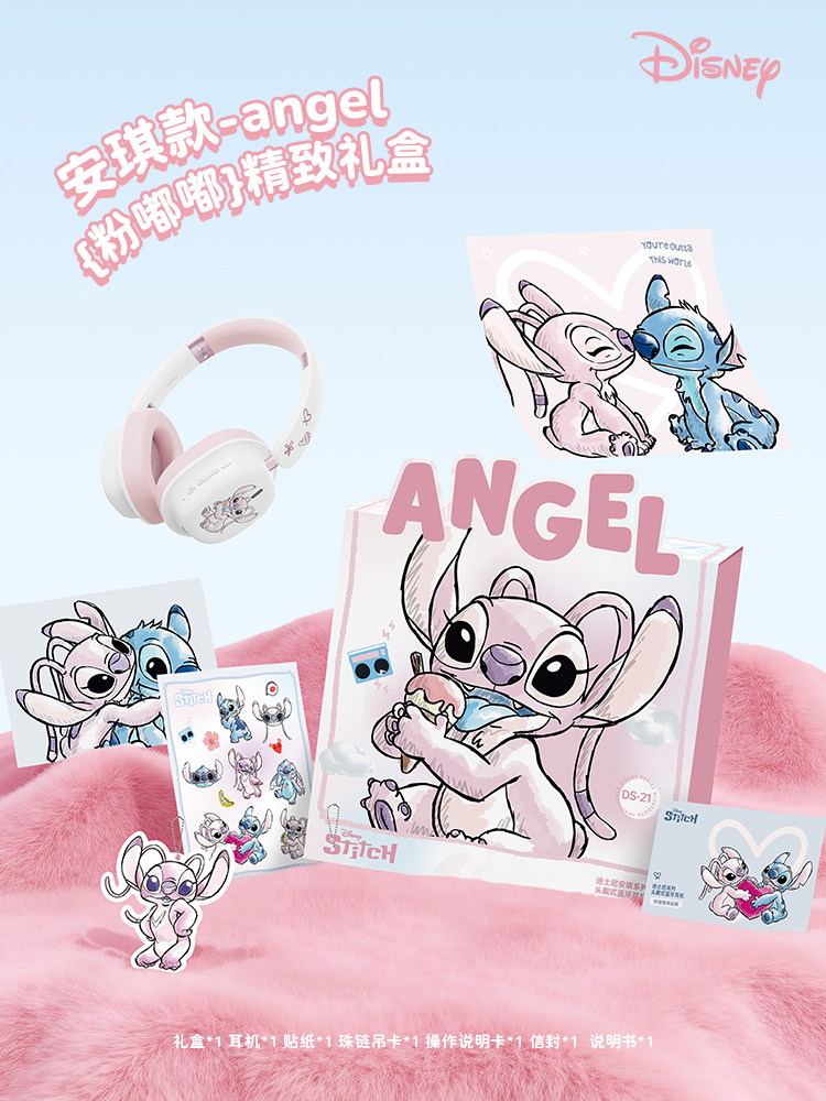 粉色-安琪【原装彩盒】【自用-送收纳袋】【蓝牙6.0-25小时超长续航-萌趣可爱ip形象】