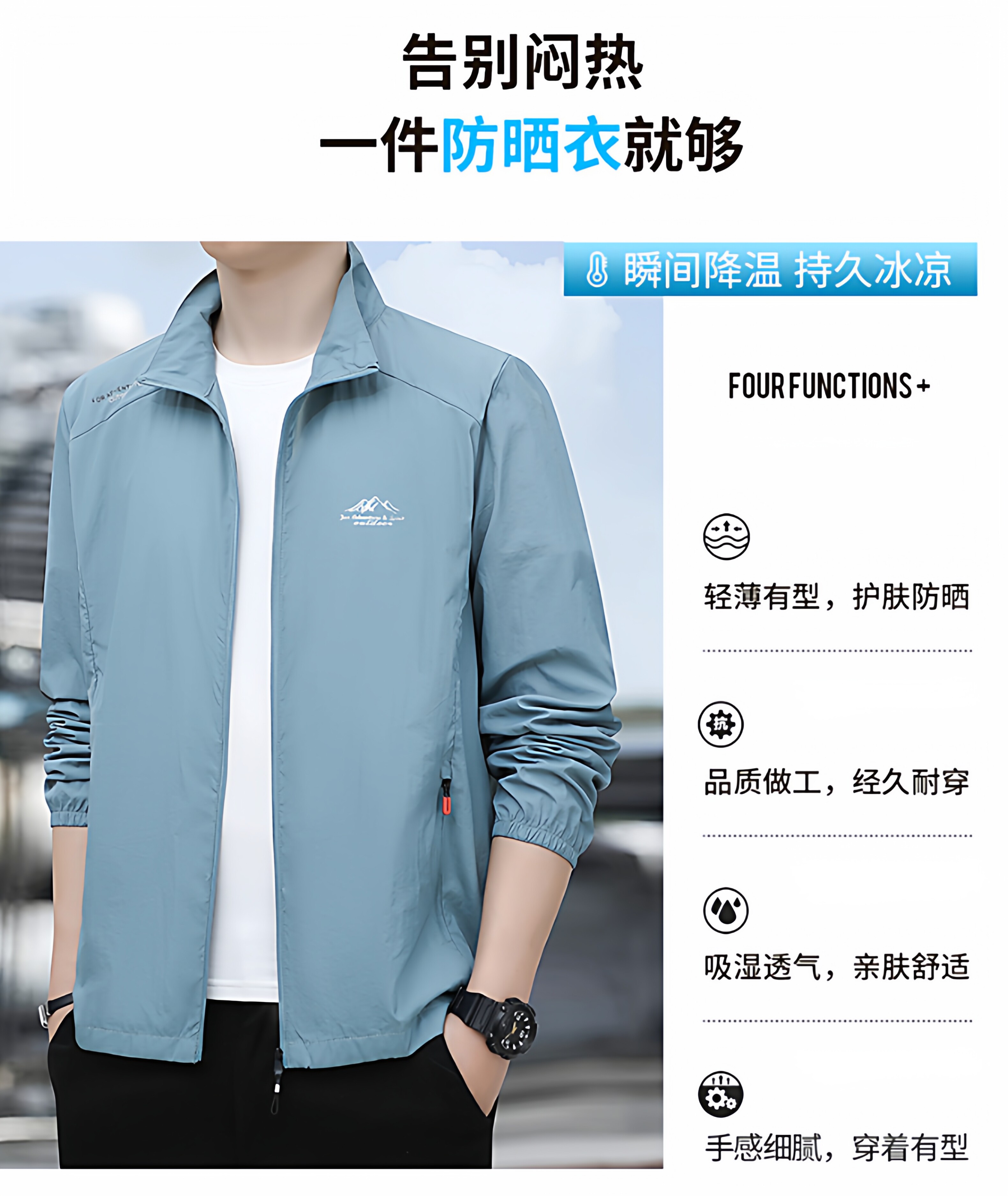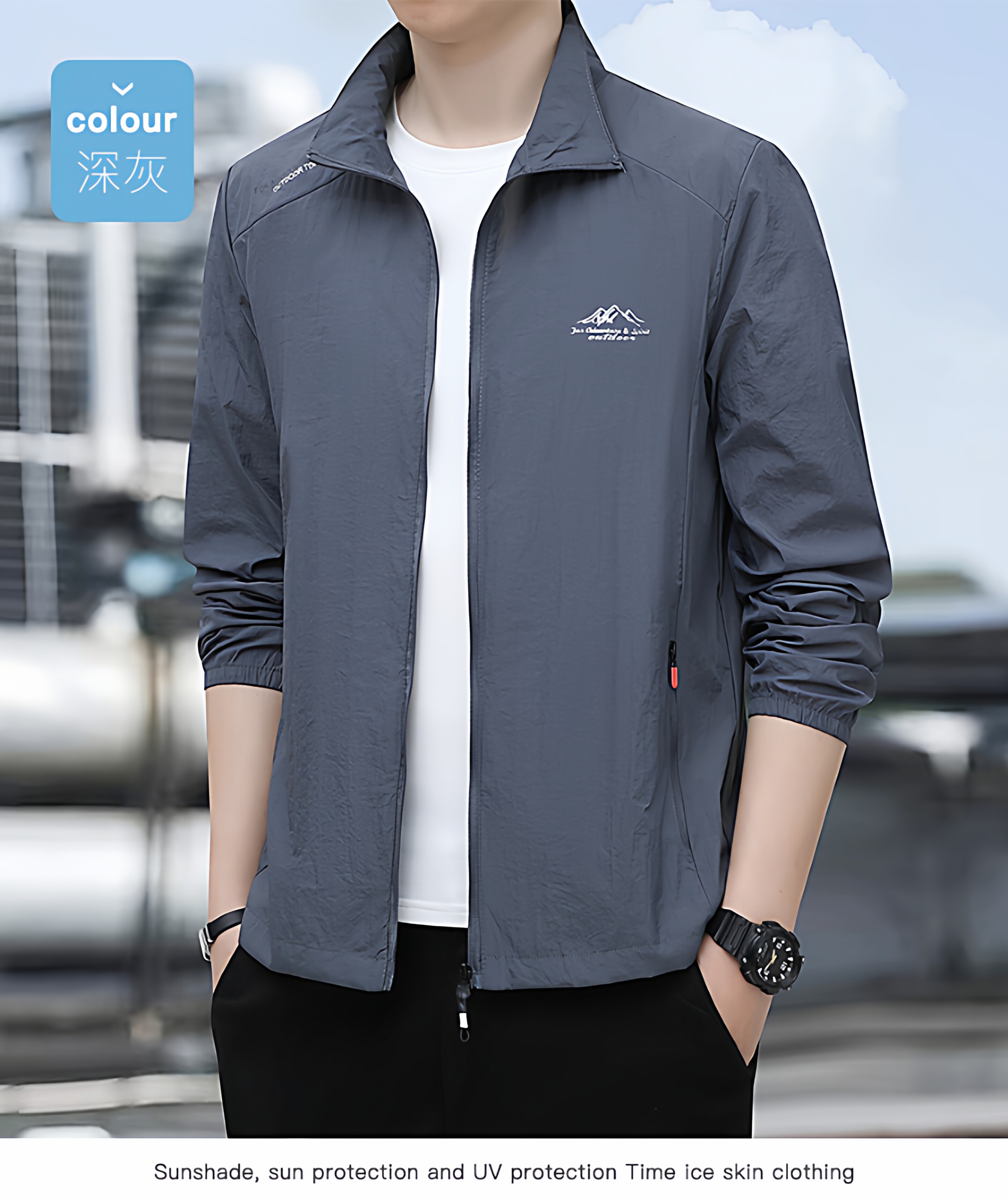 HomeProducts夏季防晒衣男士薄款风衣速干透气风衣宽松大码立领钓鱼防晒服外套