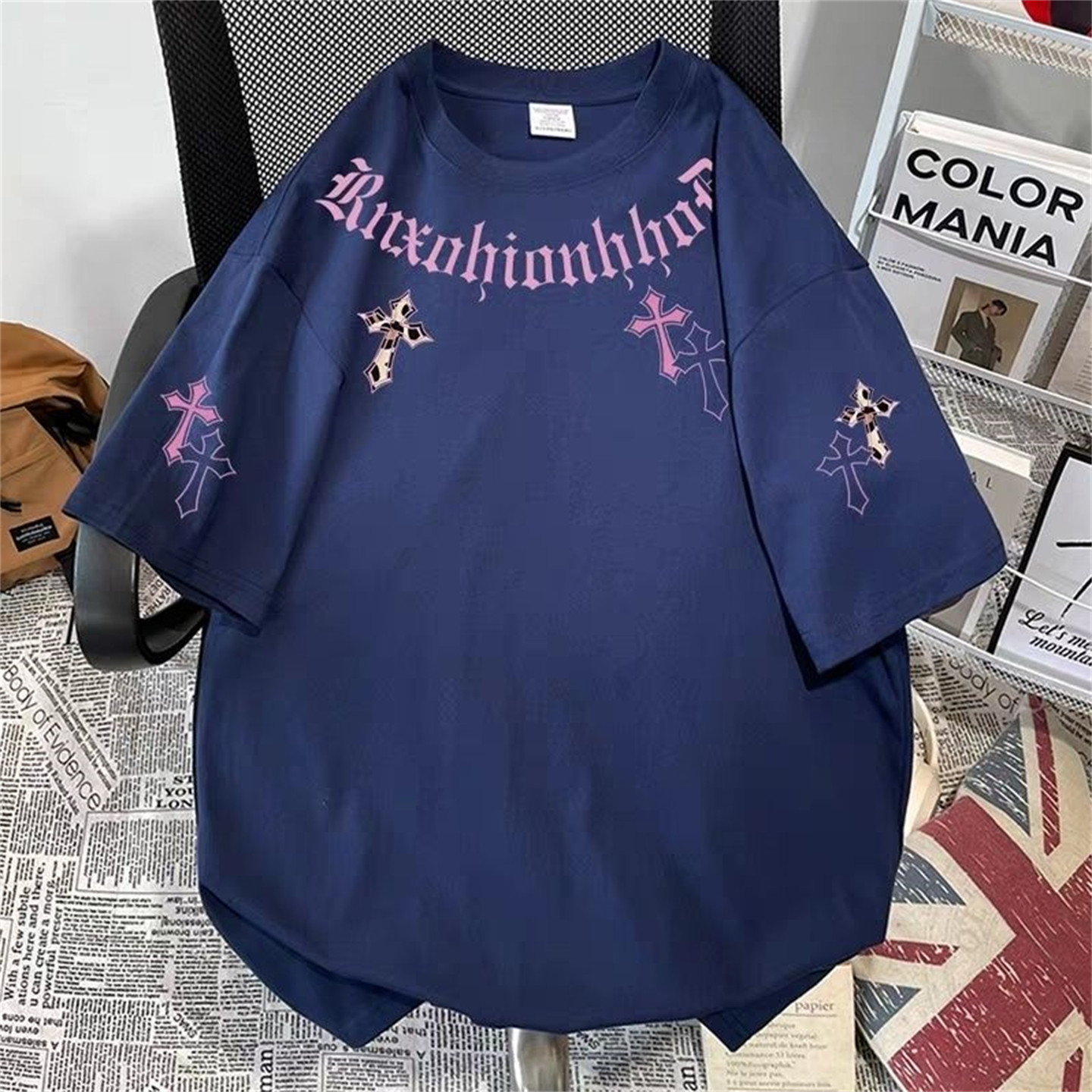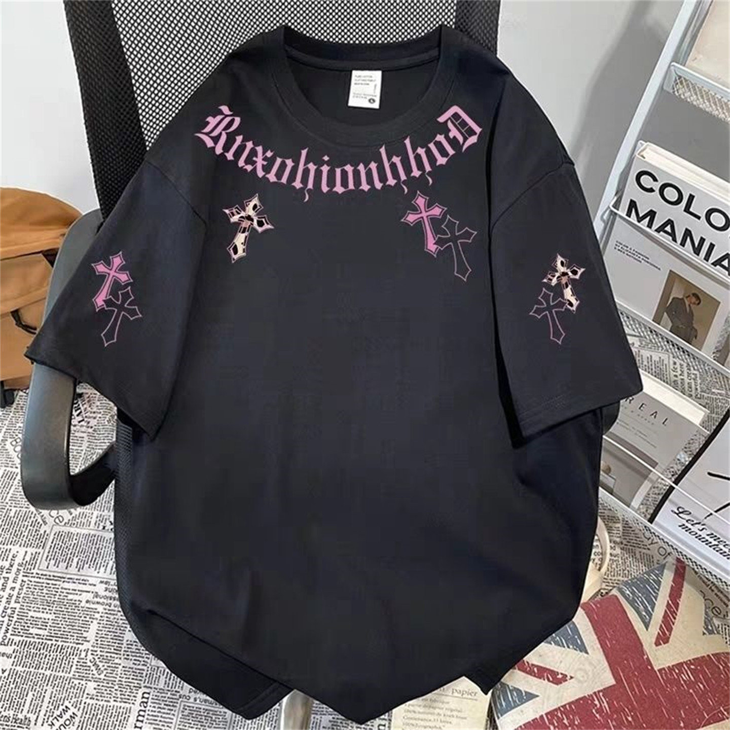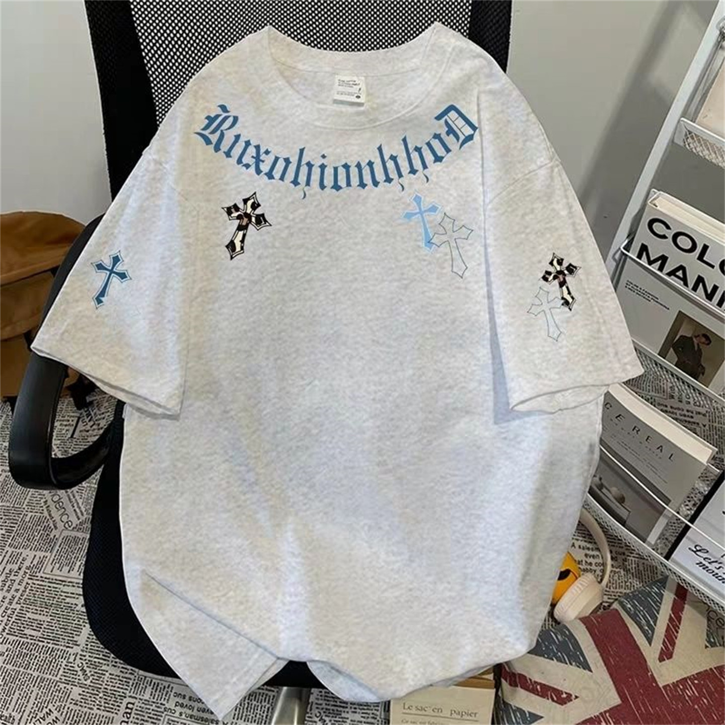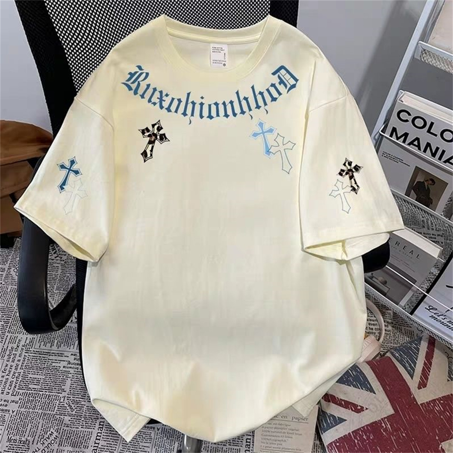 美式高街十字架字母印花短袖T恤男女夏季潮牌设计感宽松纯棉上衣