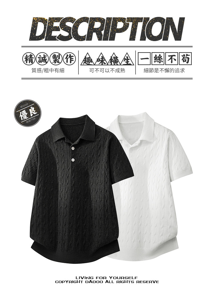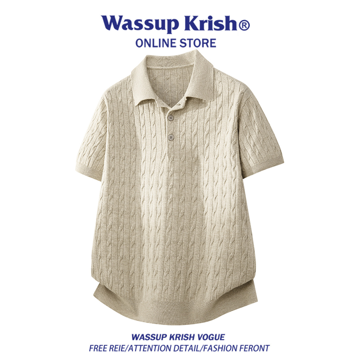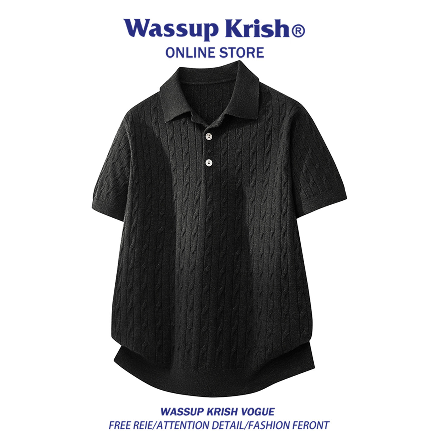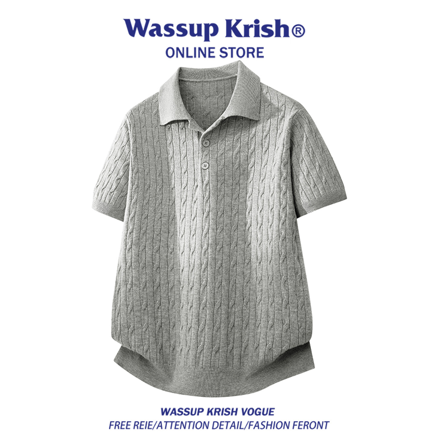WASSUP KRISH老钱风休闲套装男夏季新款针织麻花短袖polo衫一整套
