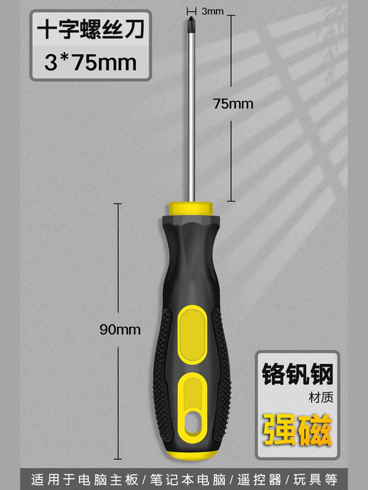 工业铬钒钢螺丝刀Φ3*75mm【十字】